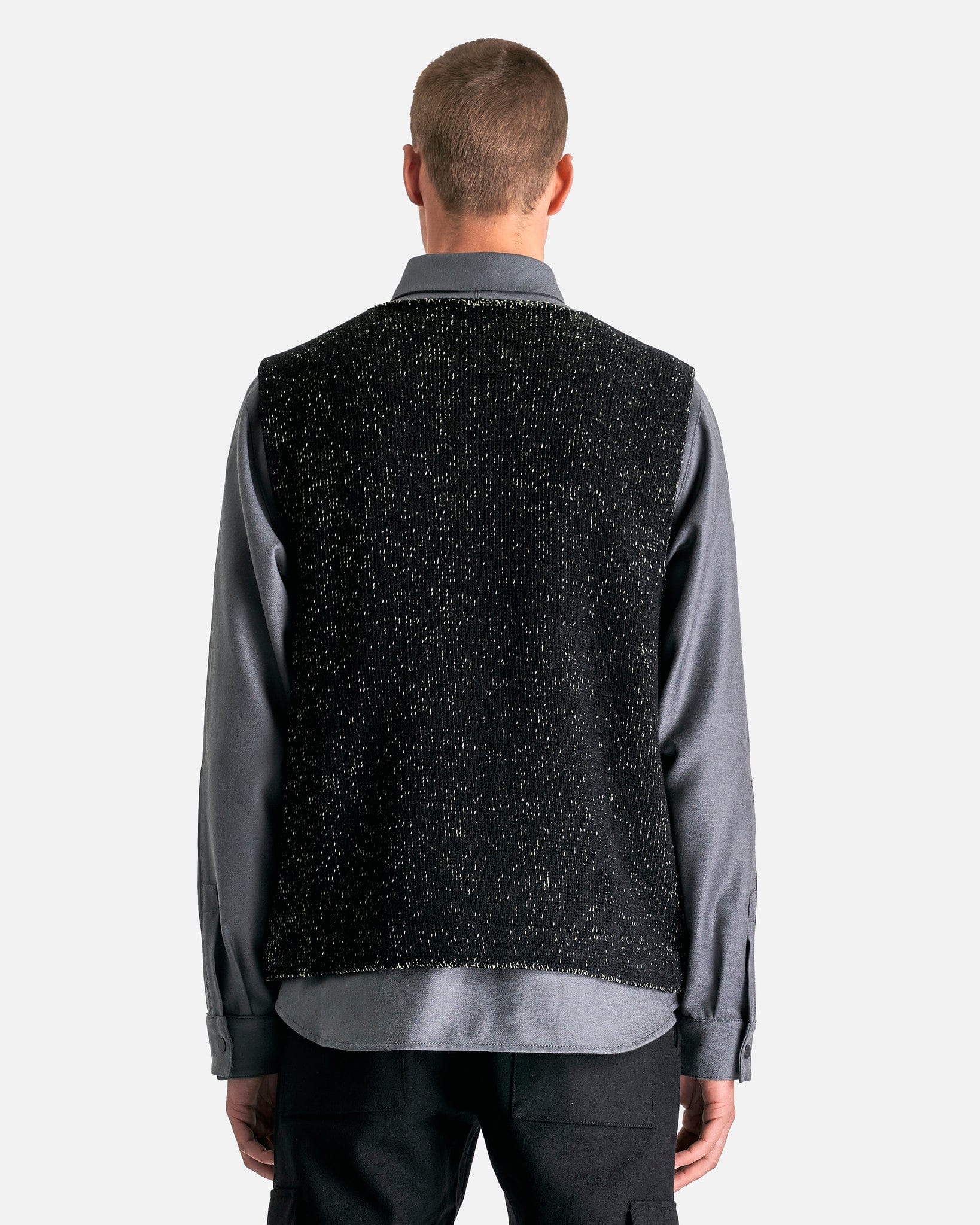 GR10K Aimless Aramid Vest in Black Aramidic. This vest features a technical weave of regenerated aramid yarn, dismantled from bullet proof vests and fireproof materials. This heavyweight vest features a round neck, sleeveless design and integrated bungee-style adjustment at the hem.
