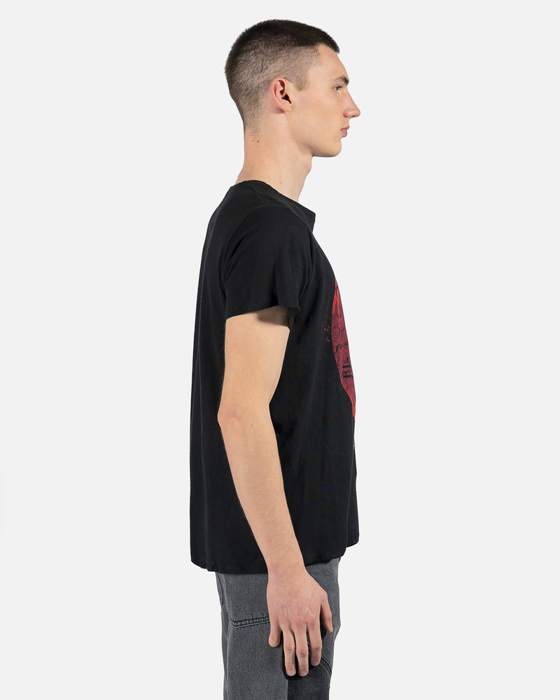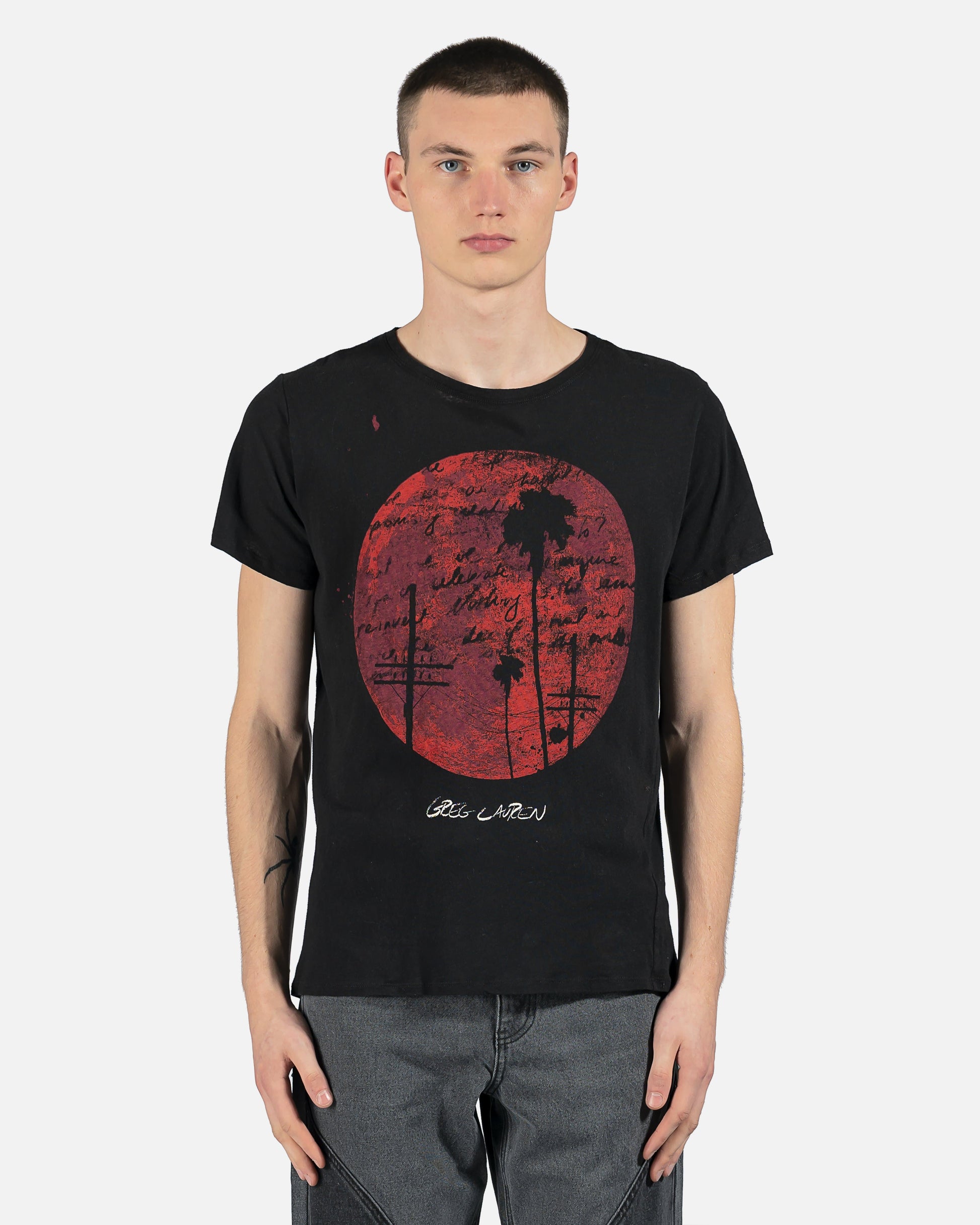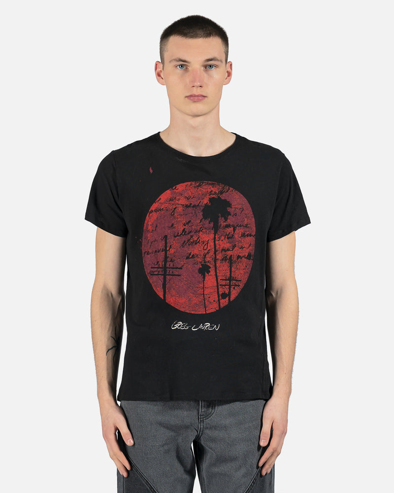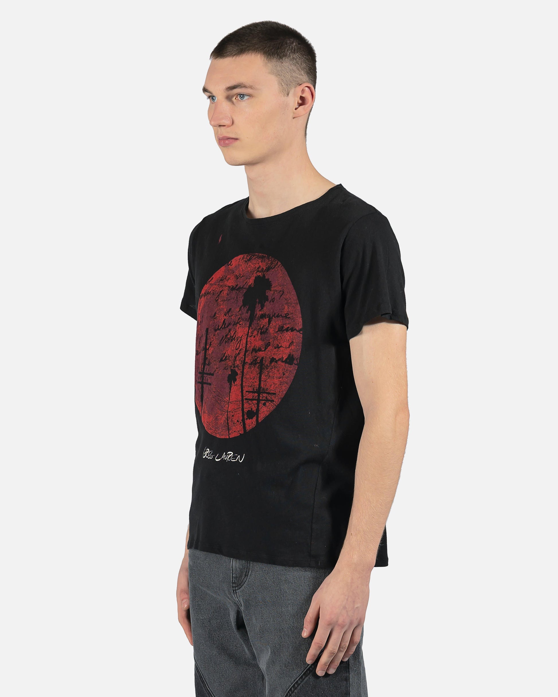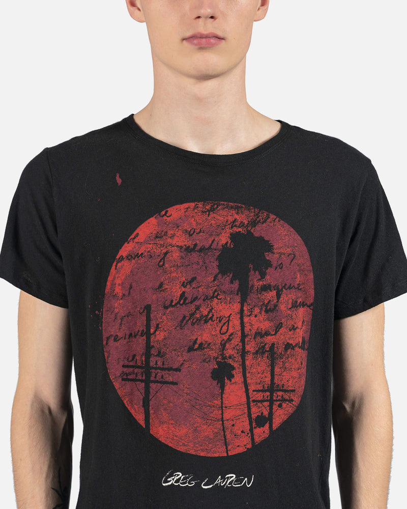 Unisex fit tee in knit cotton. Red distressed moon graphic at front.