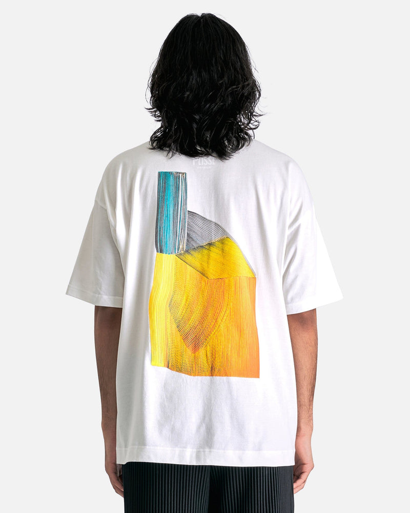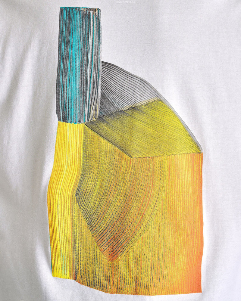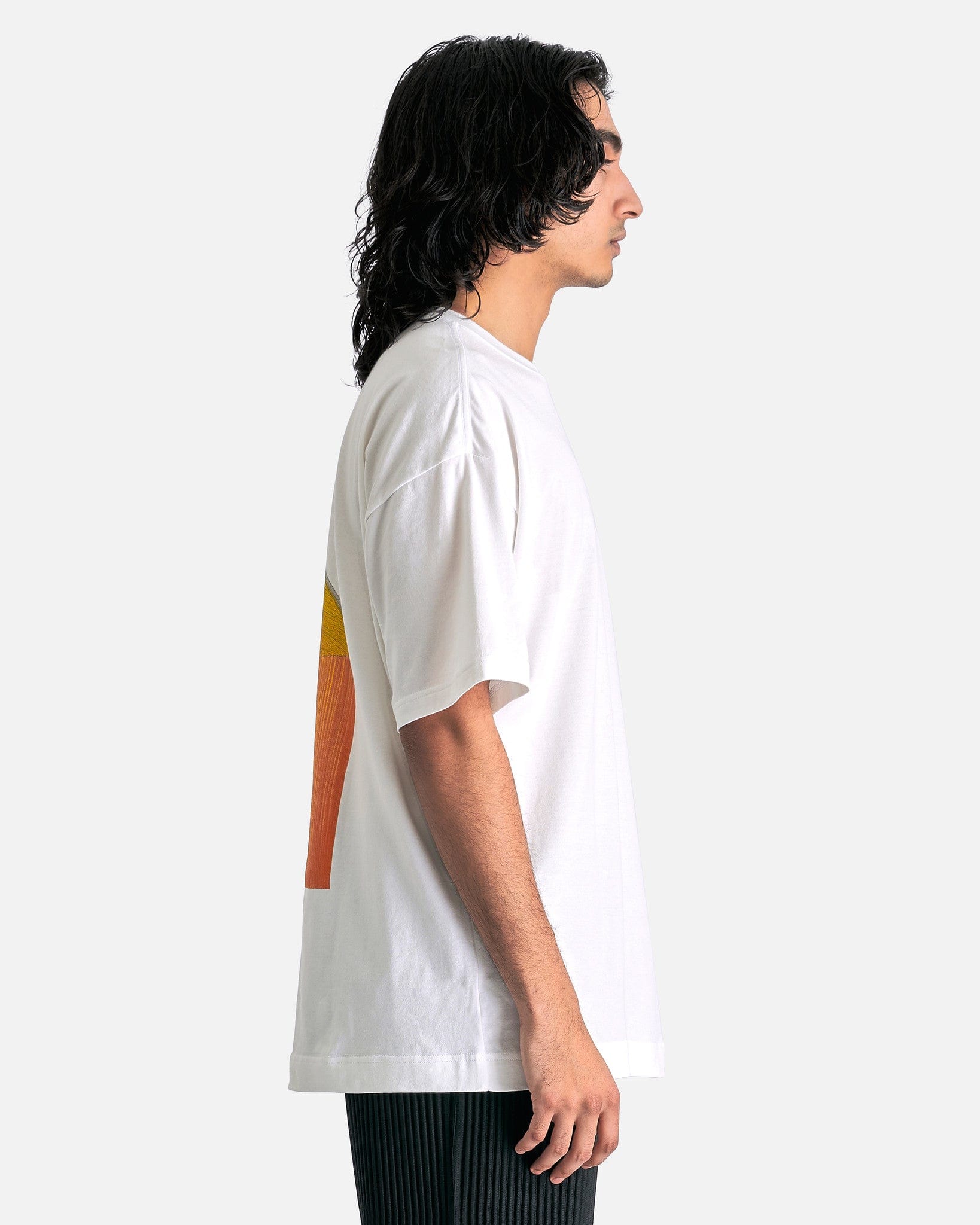 Homme Plissé Issey Miyake RB T-Shirt in Pink/Gray. This t-shirt features a printed graphic at the back, logo printed at back collar and dropped shoulder seams. Artwork by Ronan Bouroullec.