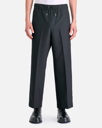 Jacquemus Le Chiquito Homme in Black. This leather handbag features a reinforced handle, magnetic flap closure, a removable strap with leather accents and engraved lobster clips.