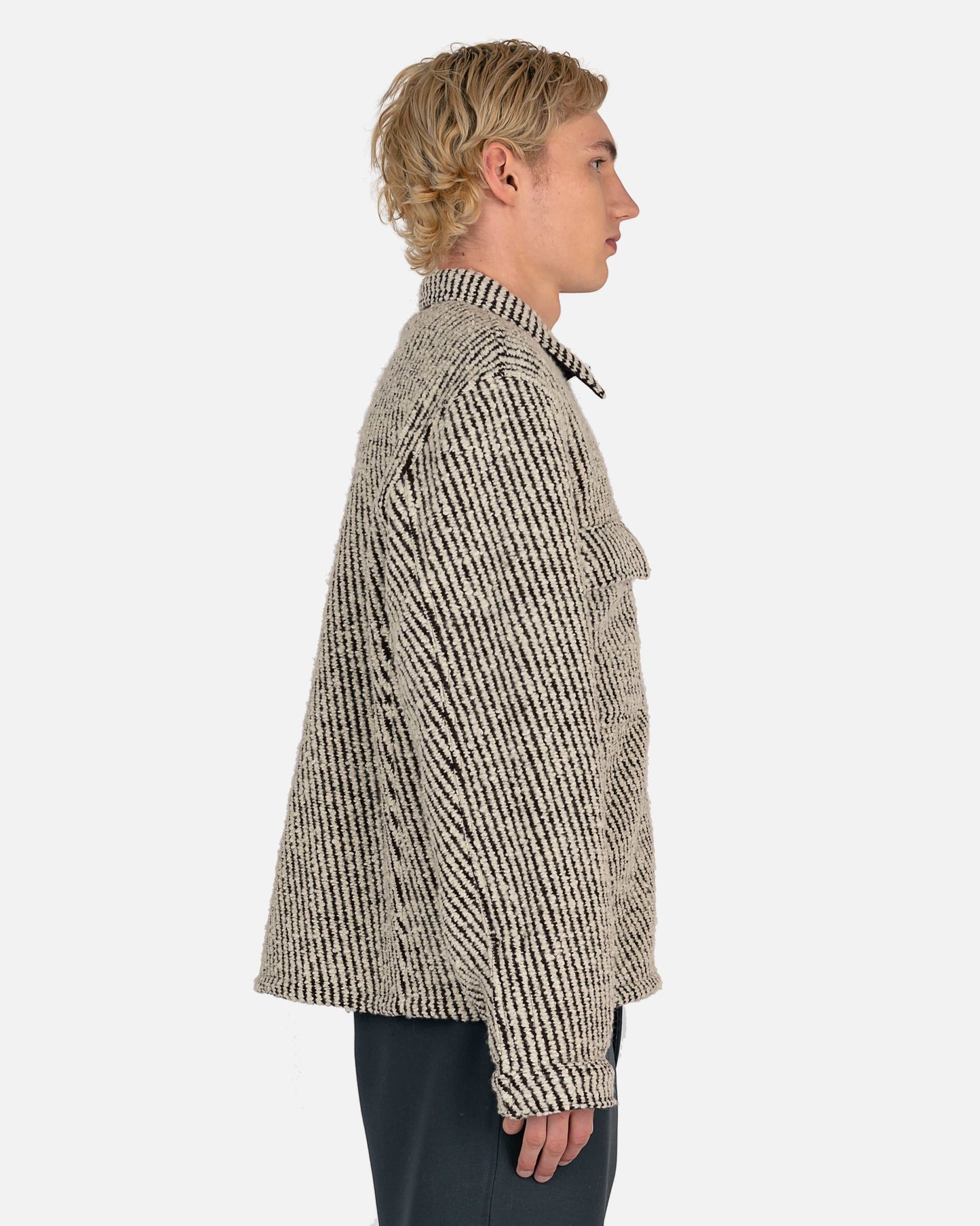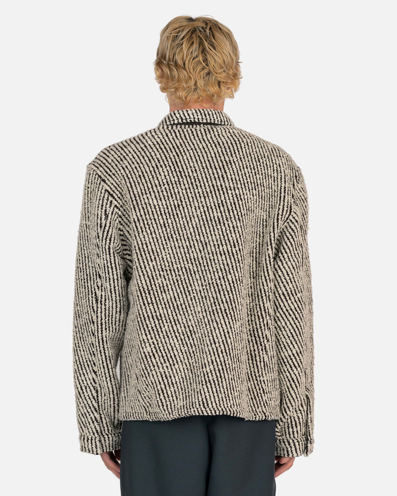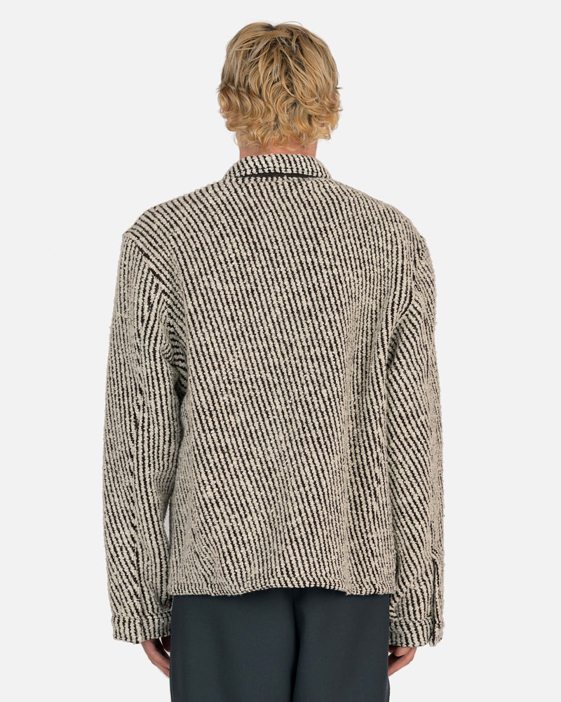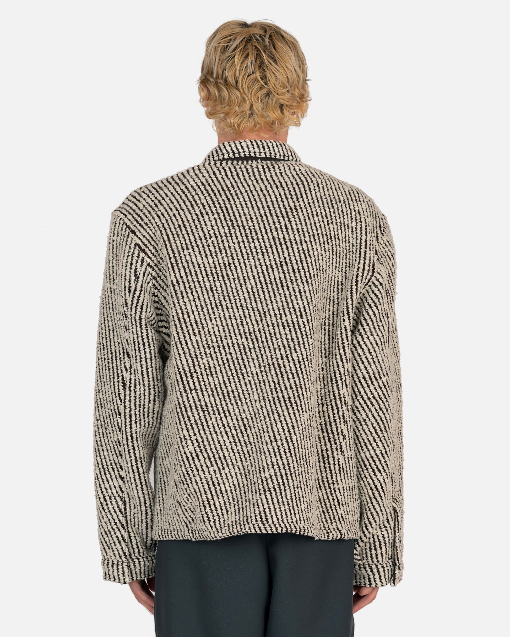 Jil Sander men's zip up jacket in off-white. This jacket features a spread collar and front zip closure with flap pockets on the chest.