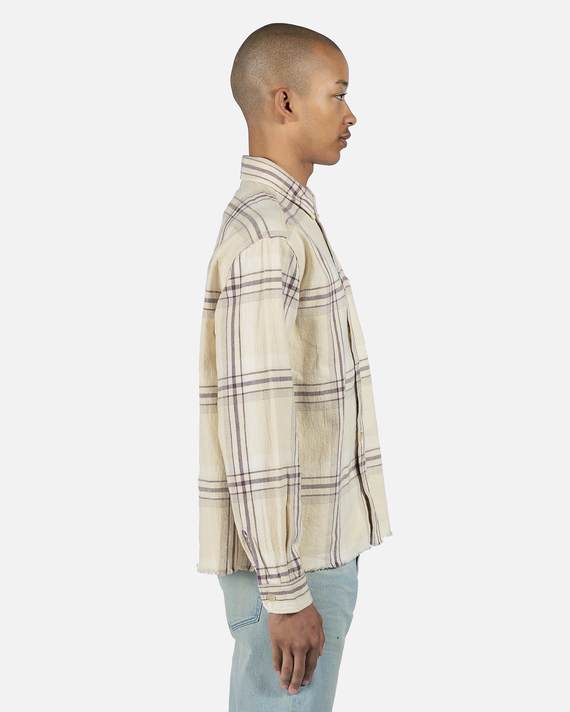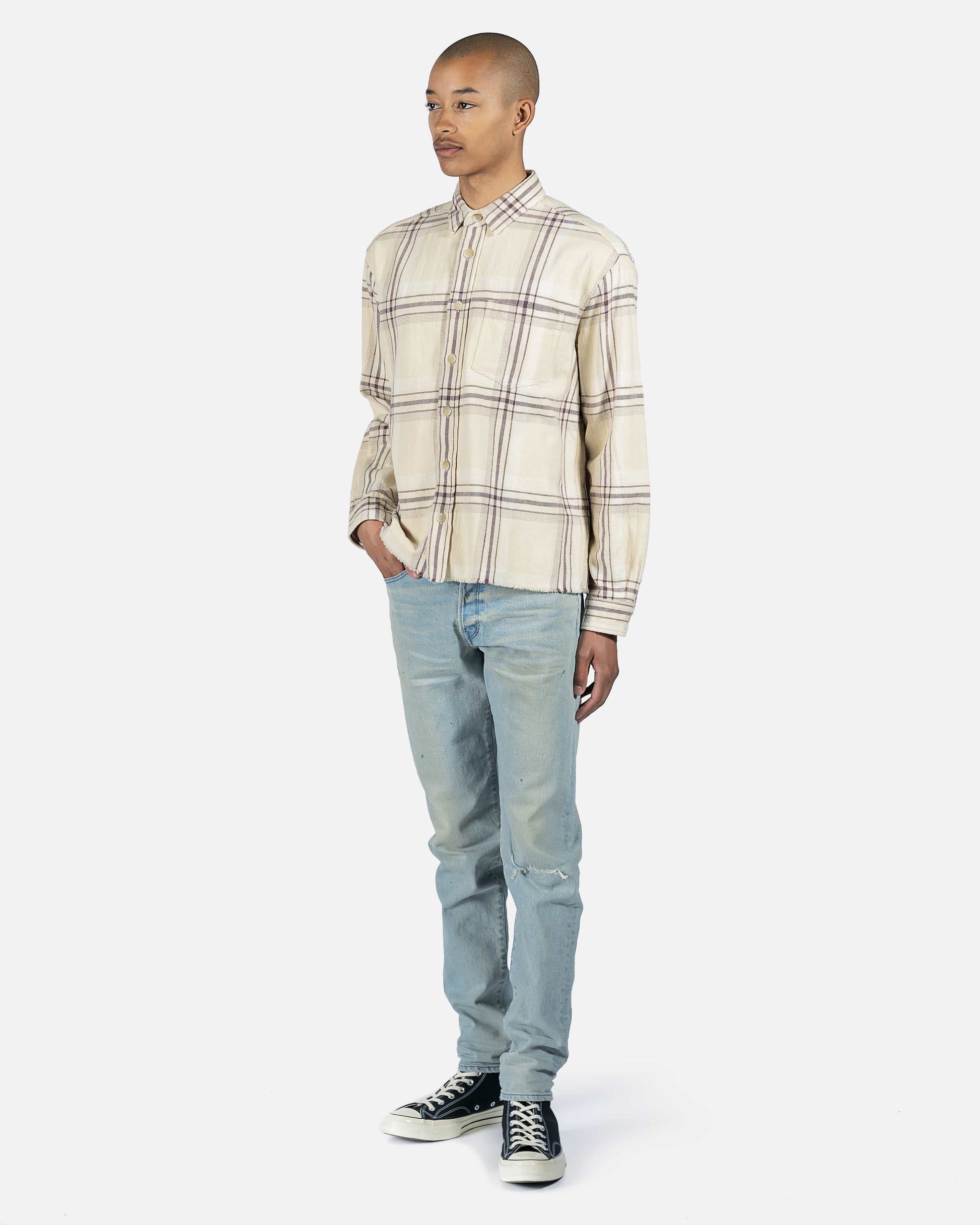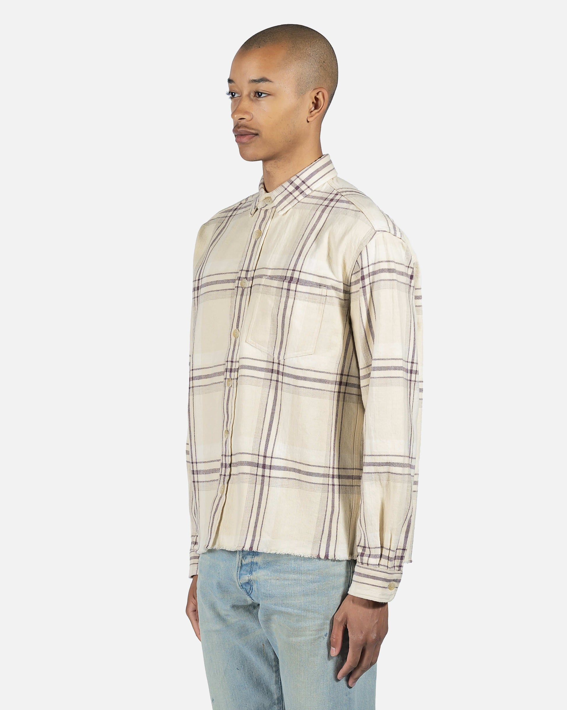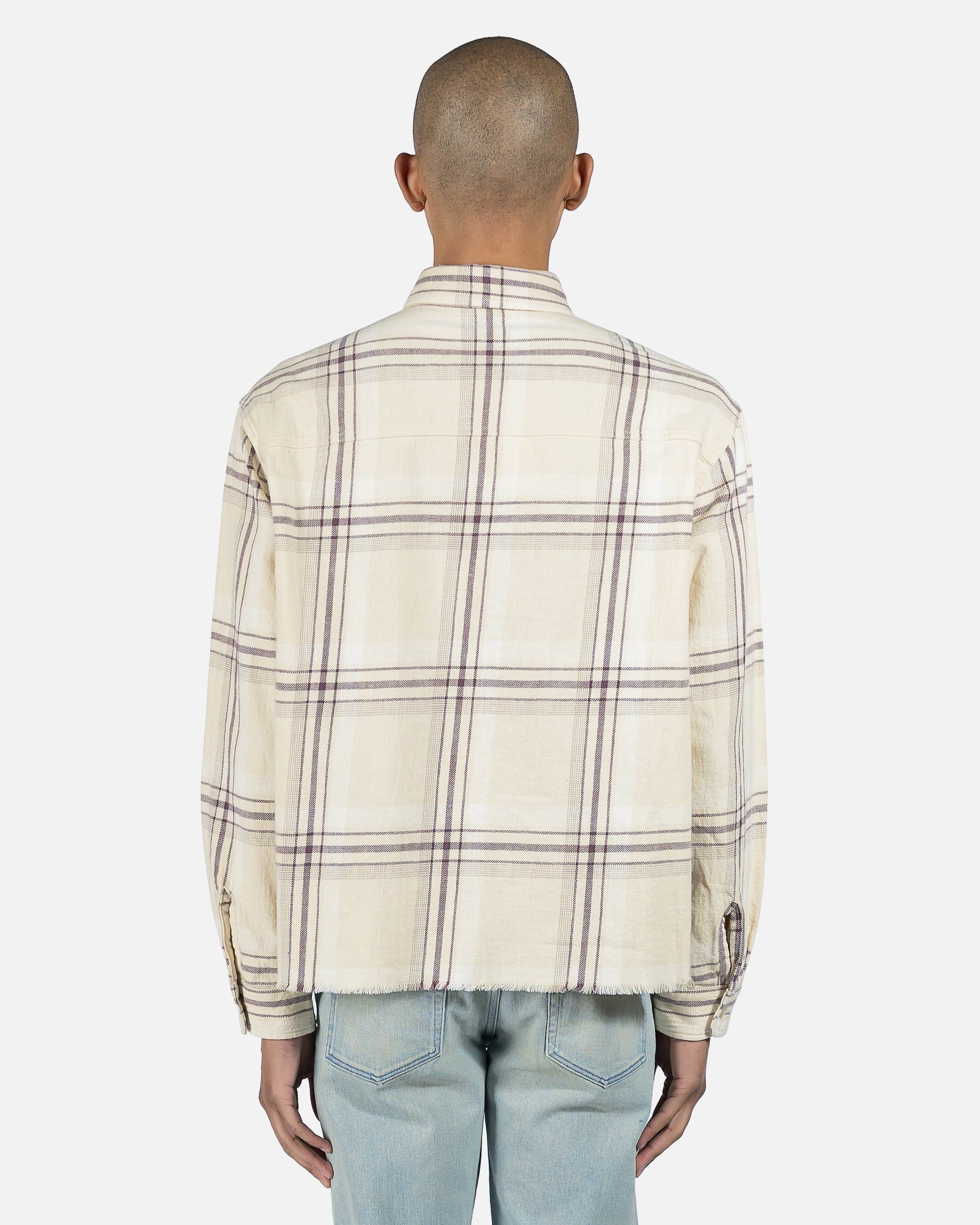 Relaxed fit overshirt in 'Gobi Check'. Crafted from mid-weight flannel combined with a raw hem. This shirt features a button placket, chest pocket, barrel cuffs, and a point collar.