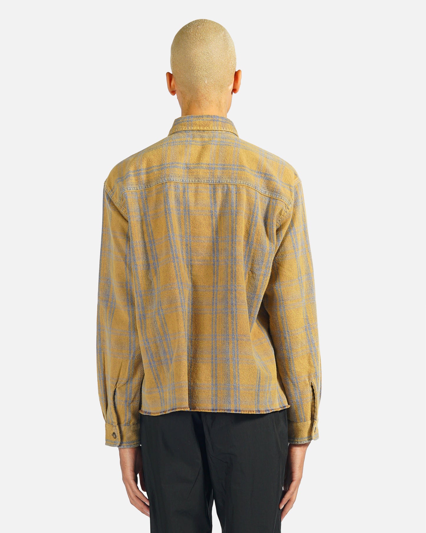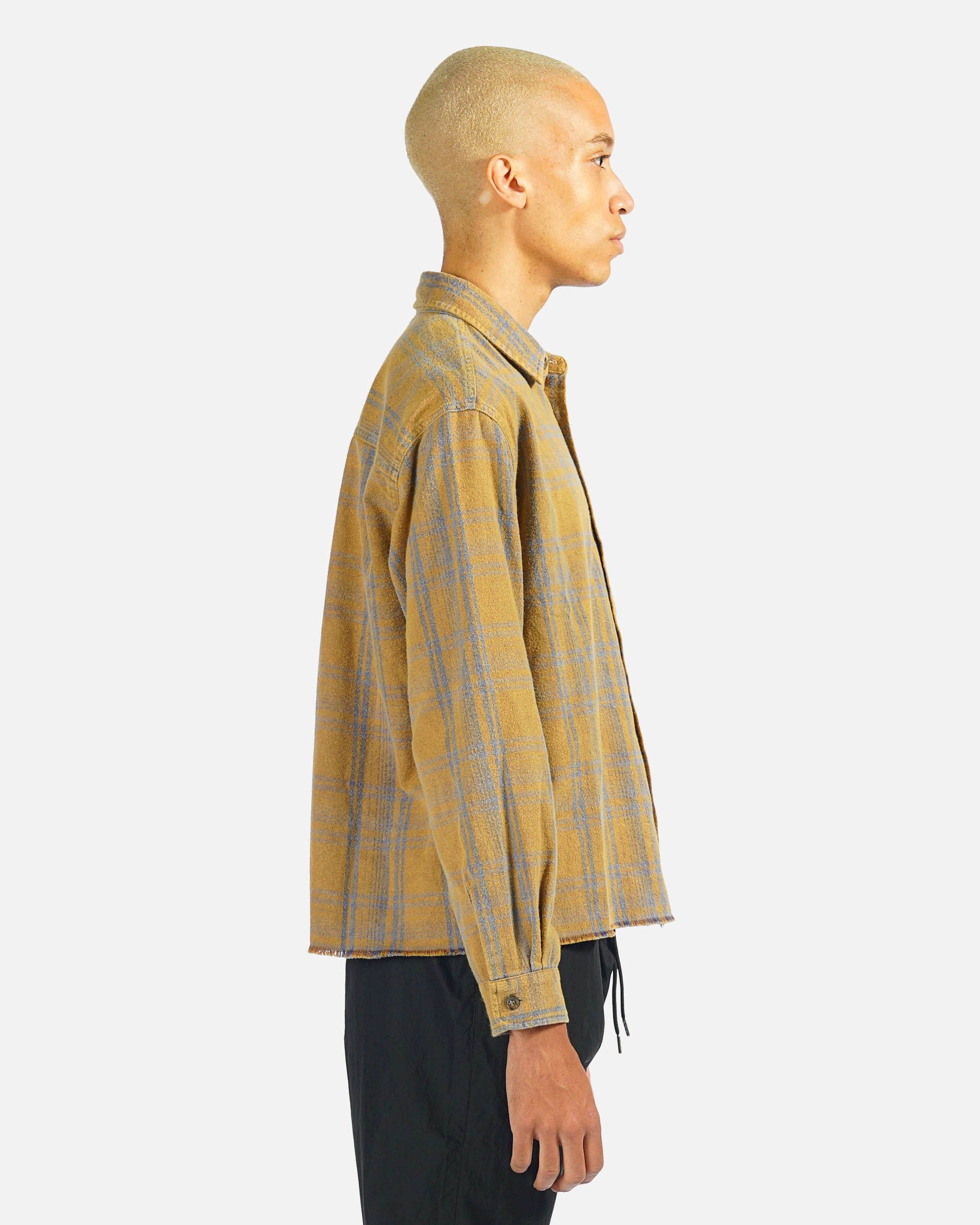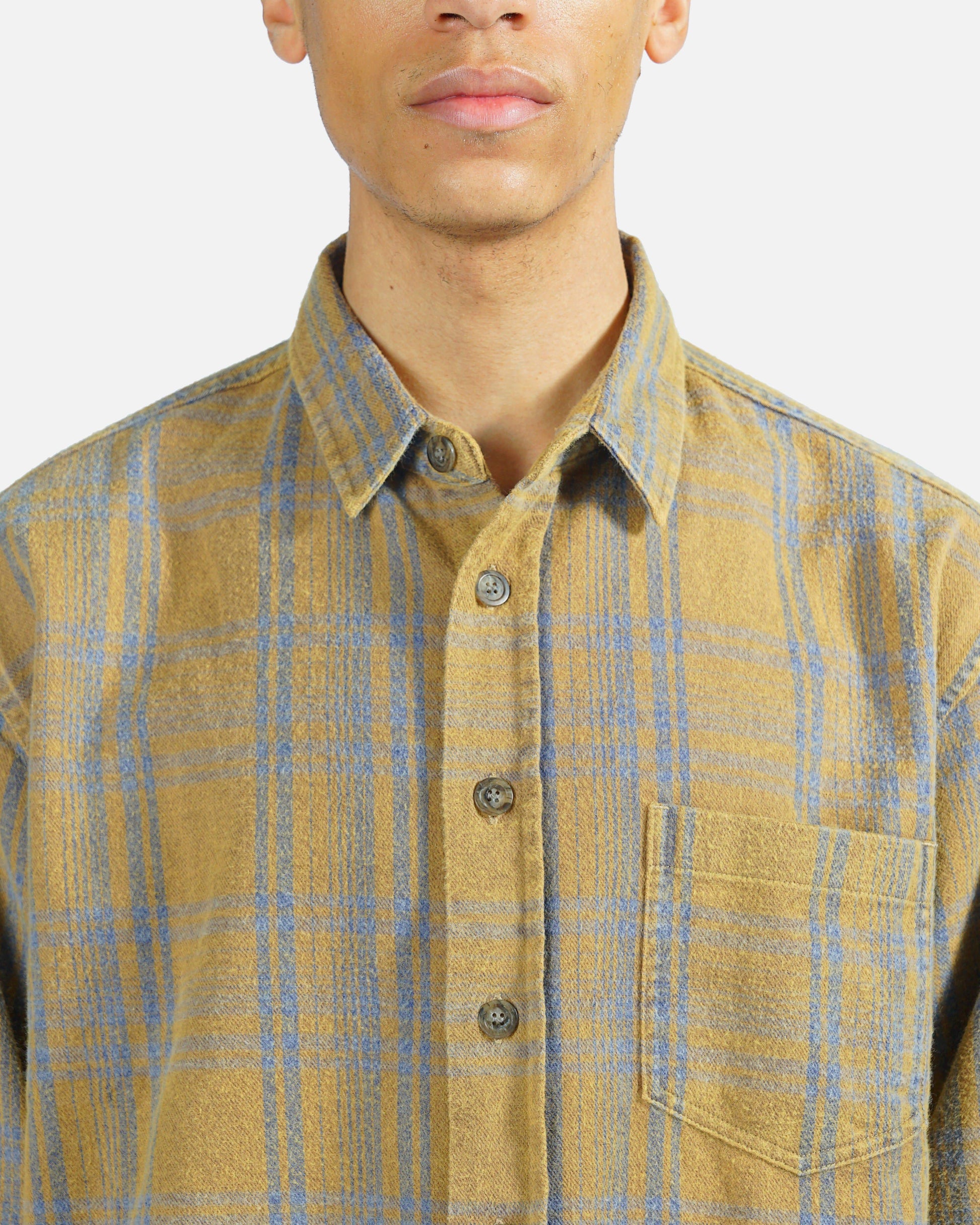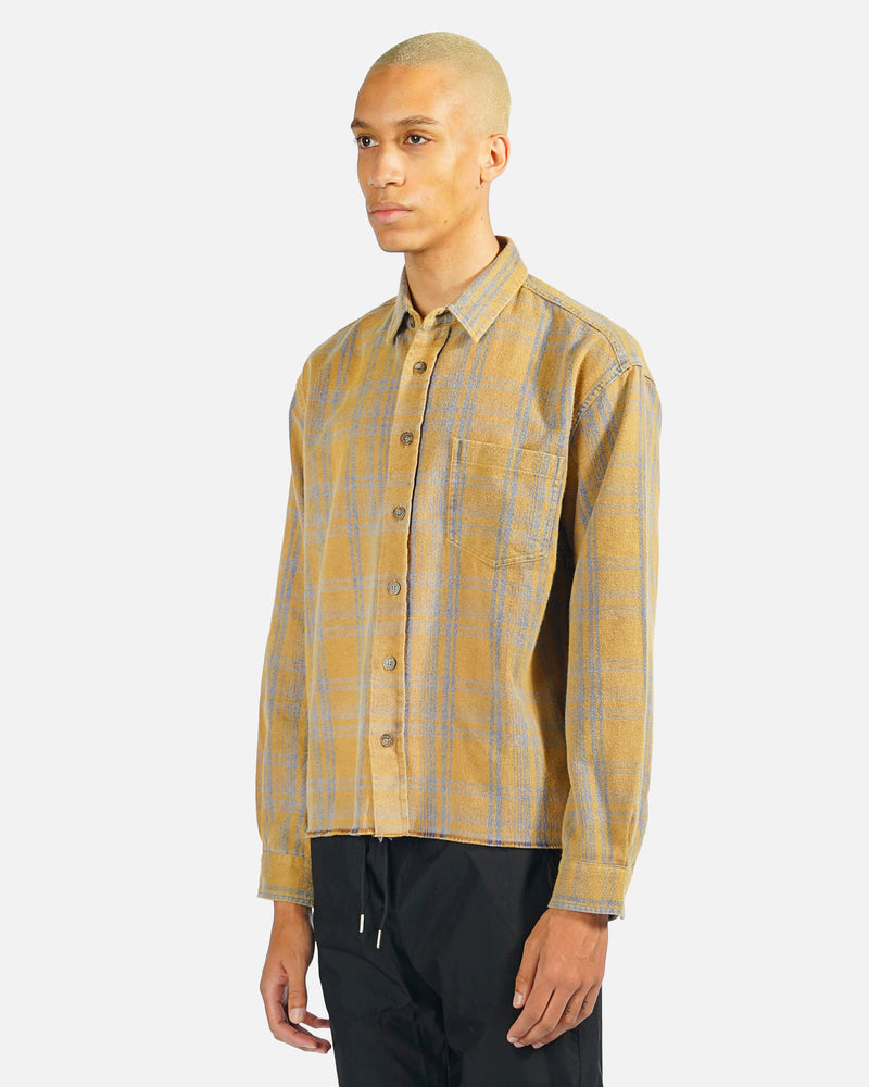 Relaxed fit overshirt in 'Honey' plaid. Crafted from mid-weight flannel combined with a super soft wash process for our version of the perfect vintage find. This shirt features a raw hem, button placket, chest pocket, barrel cuffs, and a point collar.