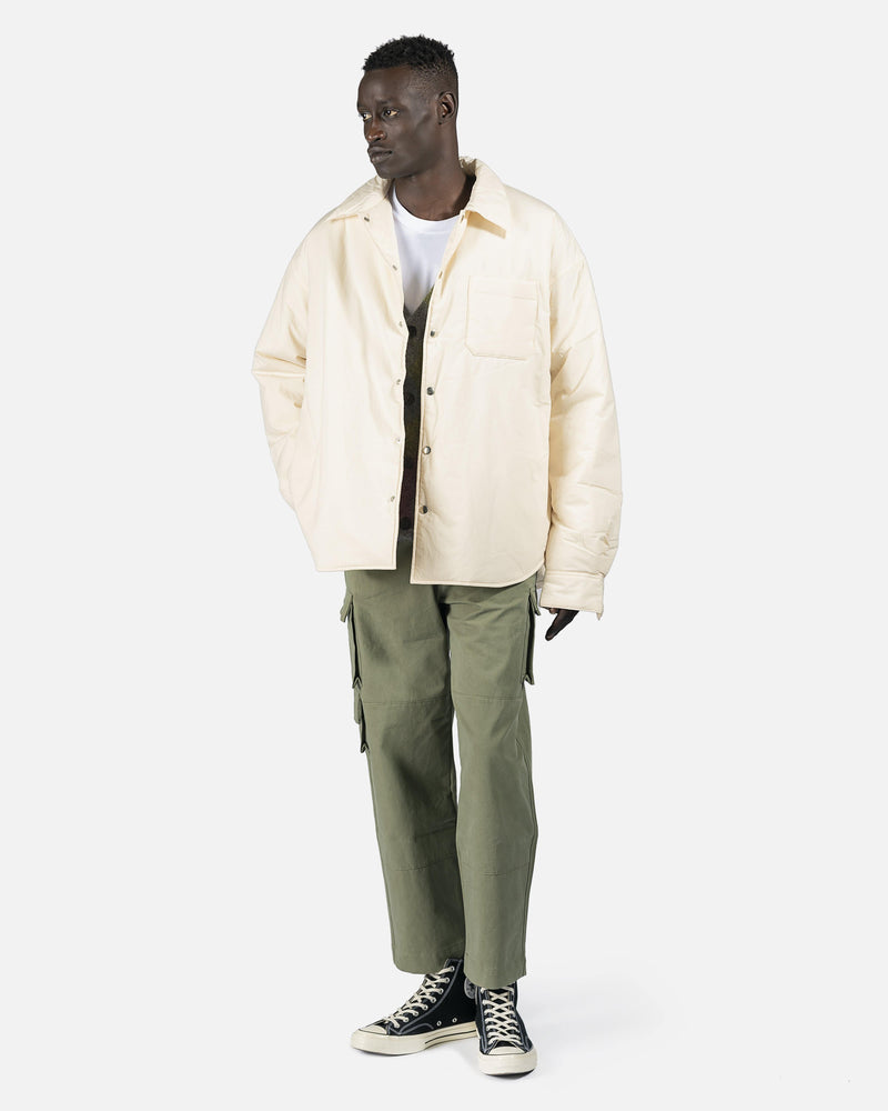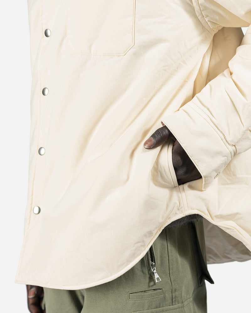 Boxy, vintage-inspired over-shirt with Thermolite lining for superior insulation. This style features a point collar, front snap closure, chest pocket, waist welt pockets, barrel cuffs, and a curved hem. Scout is constructed with Japanese cotton poplin fabric that's been treated with a unique process, giving the garment a crisp structured finish.