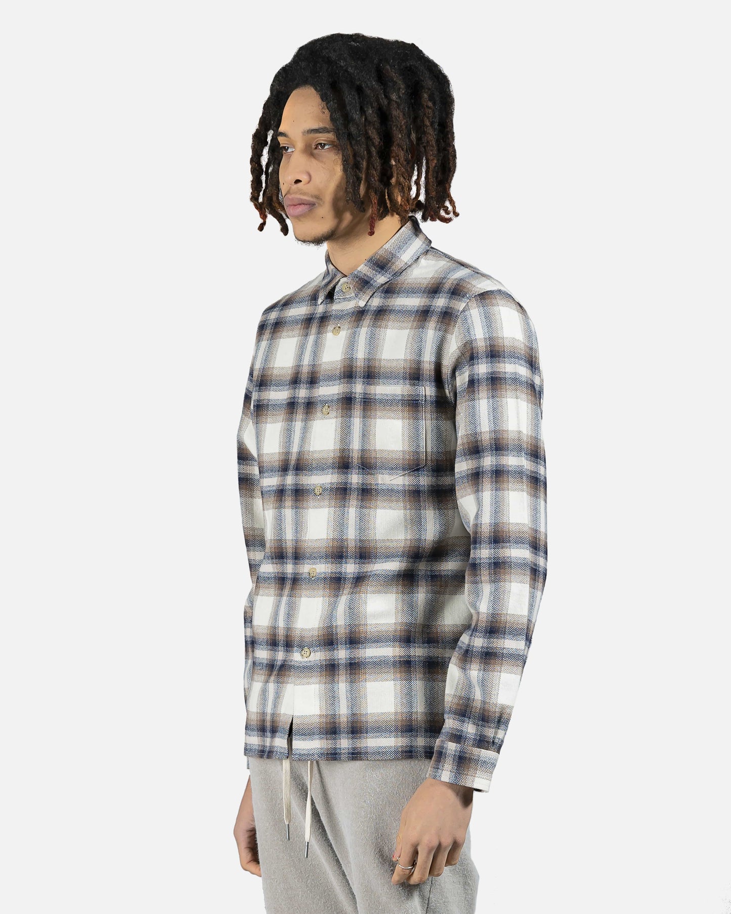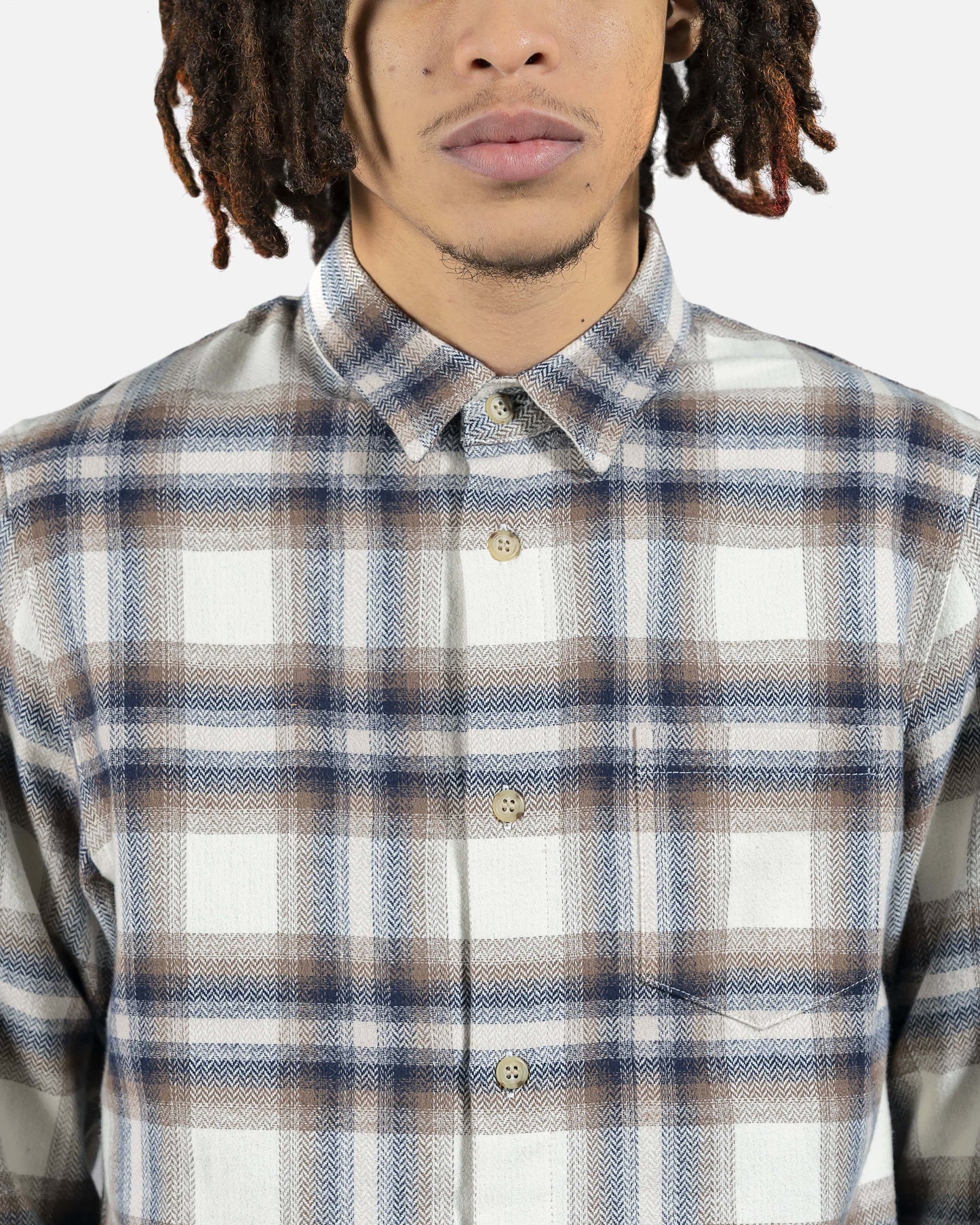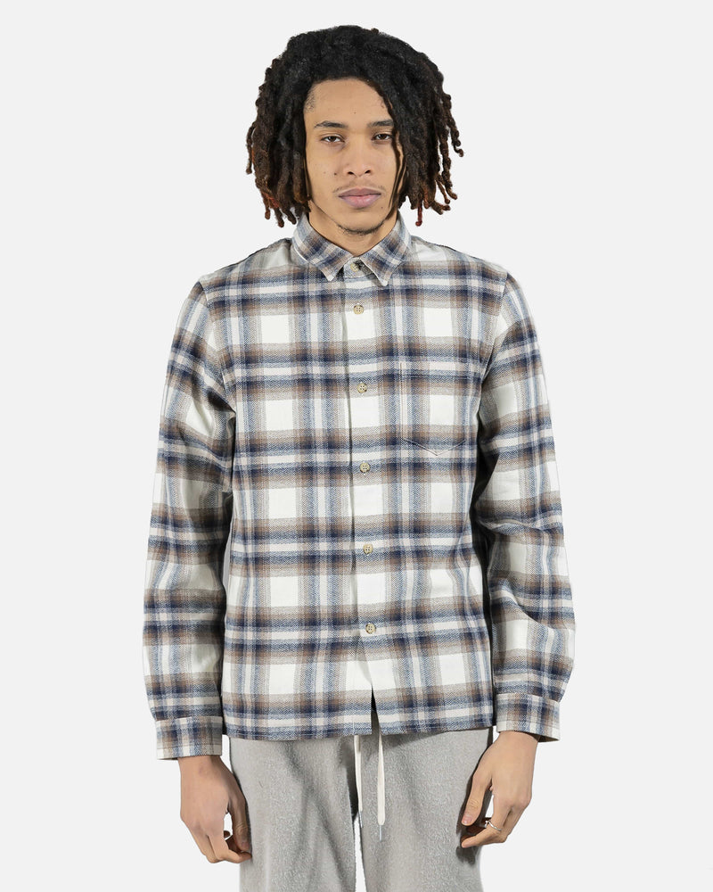 Slim-fit button up shirt in soft cotton flannel. This shirt features a straight hem, button placket, chest pocket, barrel cuffs, and a point collar.