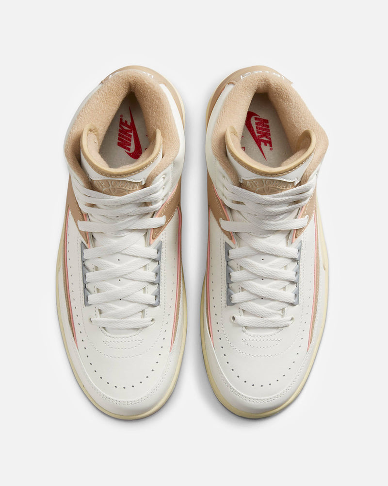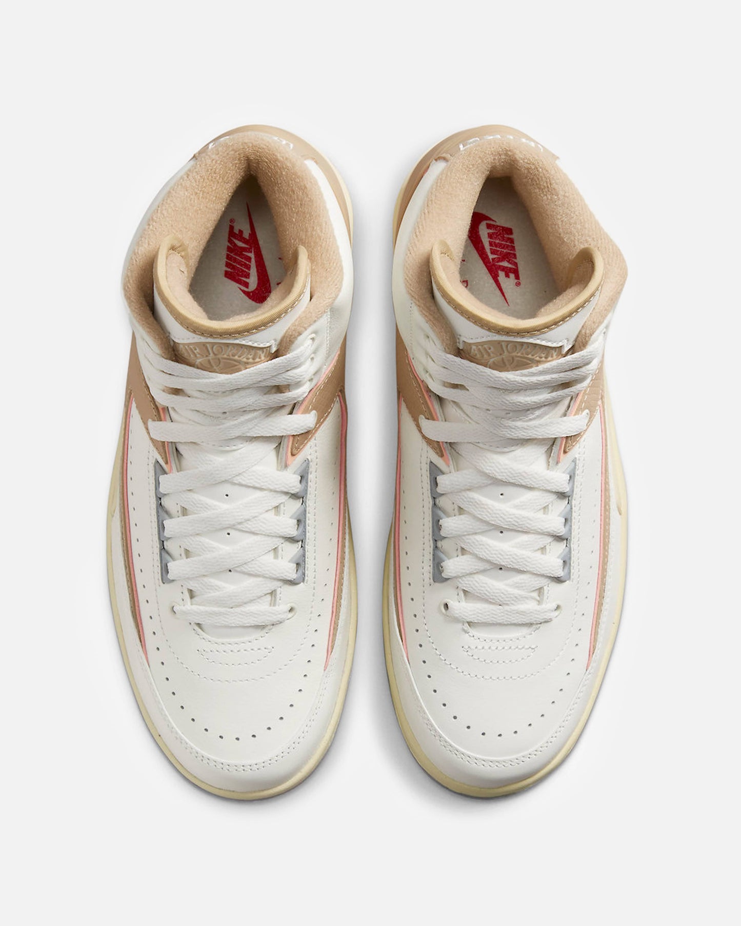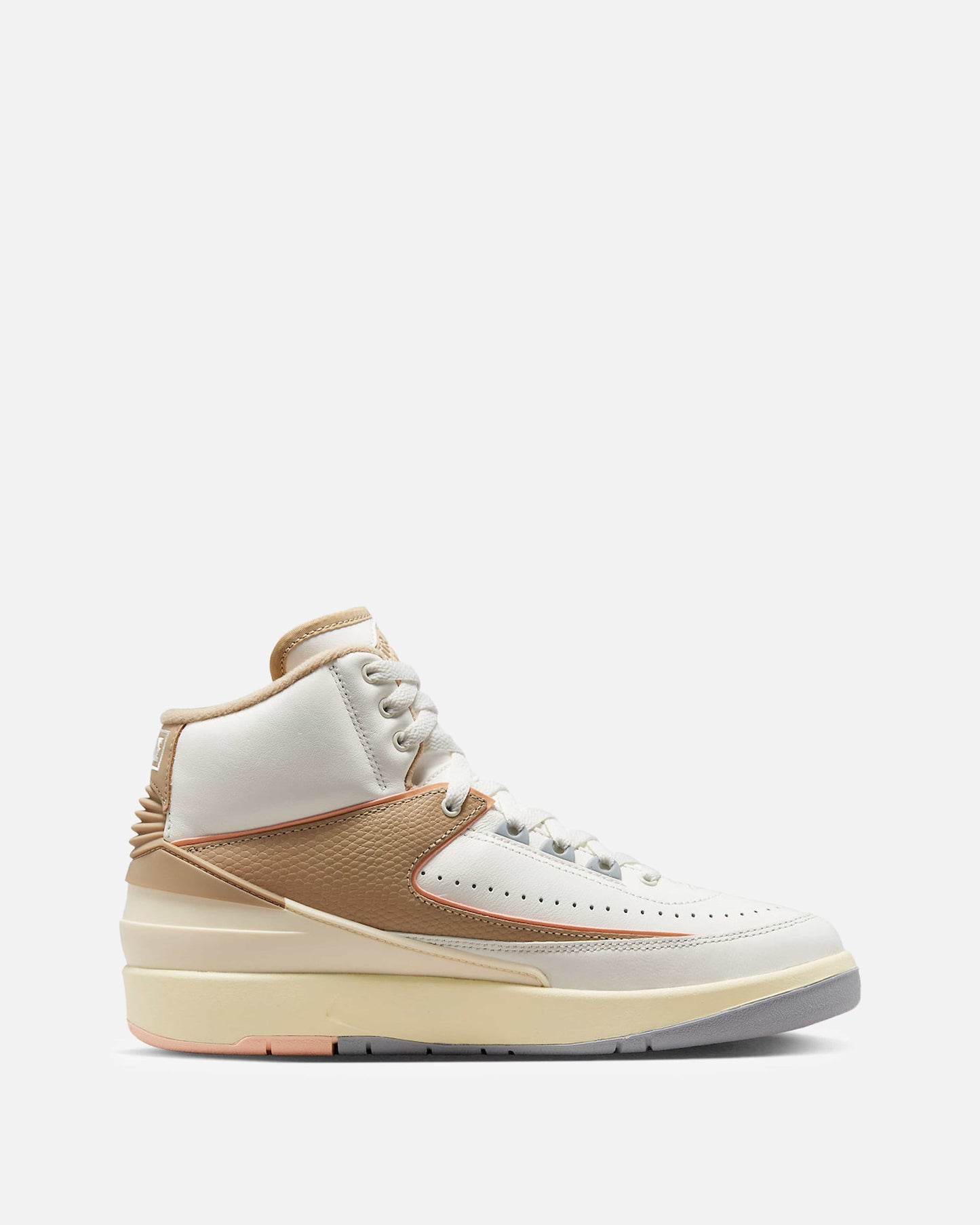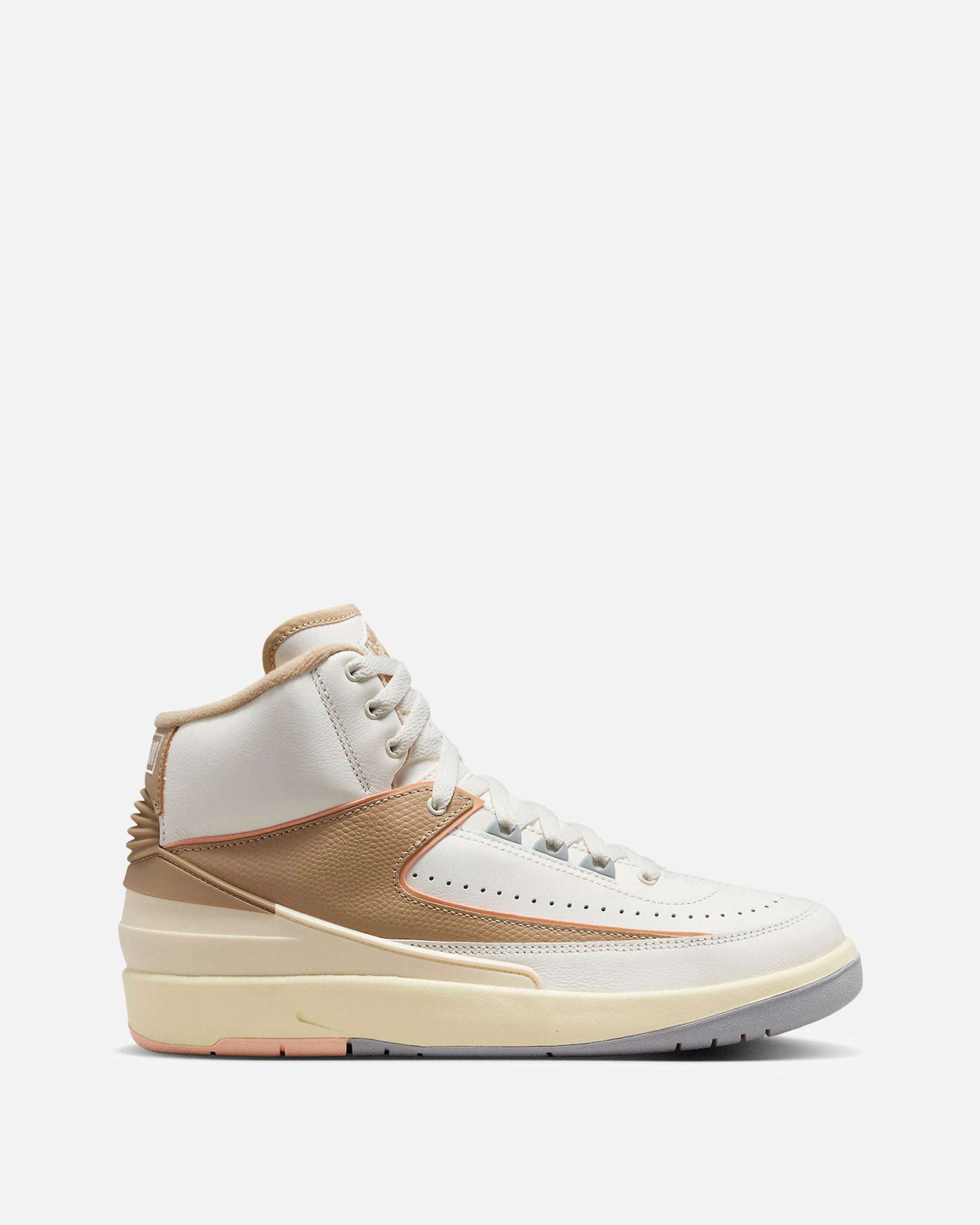 Women's Air Jordan 2 Craft in Muslin. Featuring a sail tumbled leather upper with textured leather panels in desert. This iteration of the Micheal Jordan's 2nd signature sneaker brings it into the luxury market.