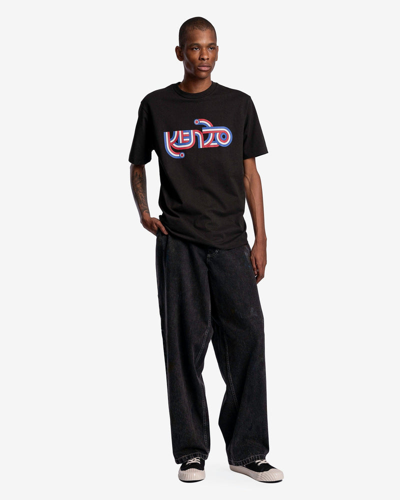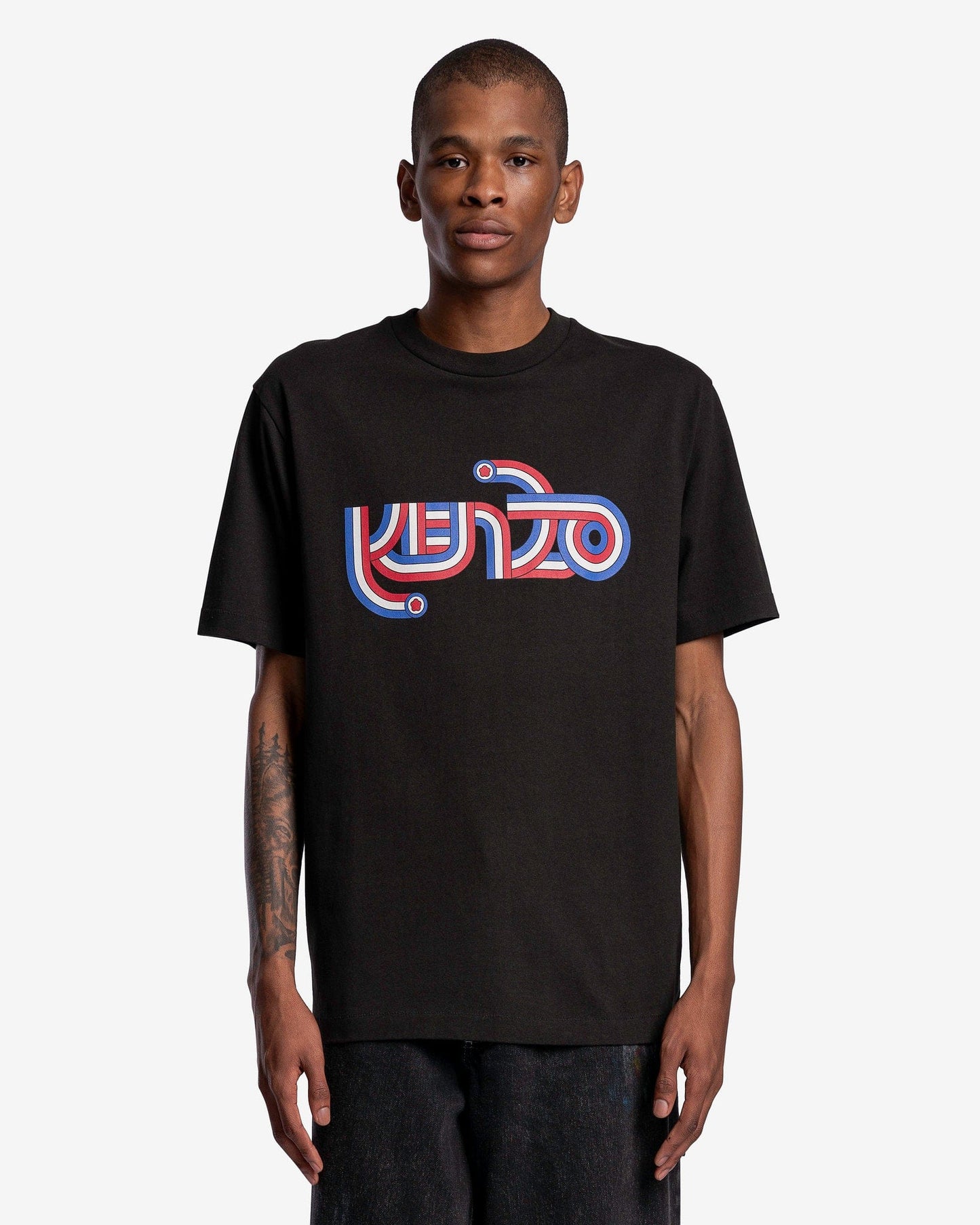 KENZO men's graphic t-shirt in black. This shirt features the Kenzo logo across the chest in target inspired lettering.