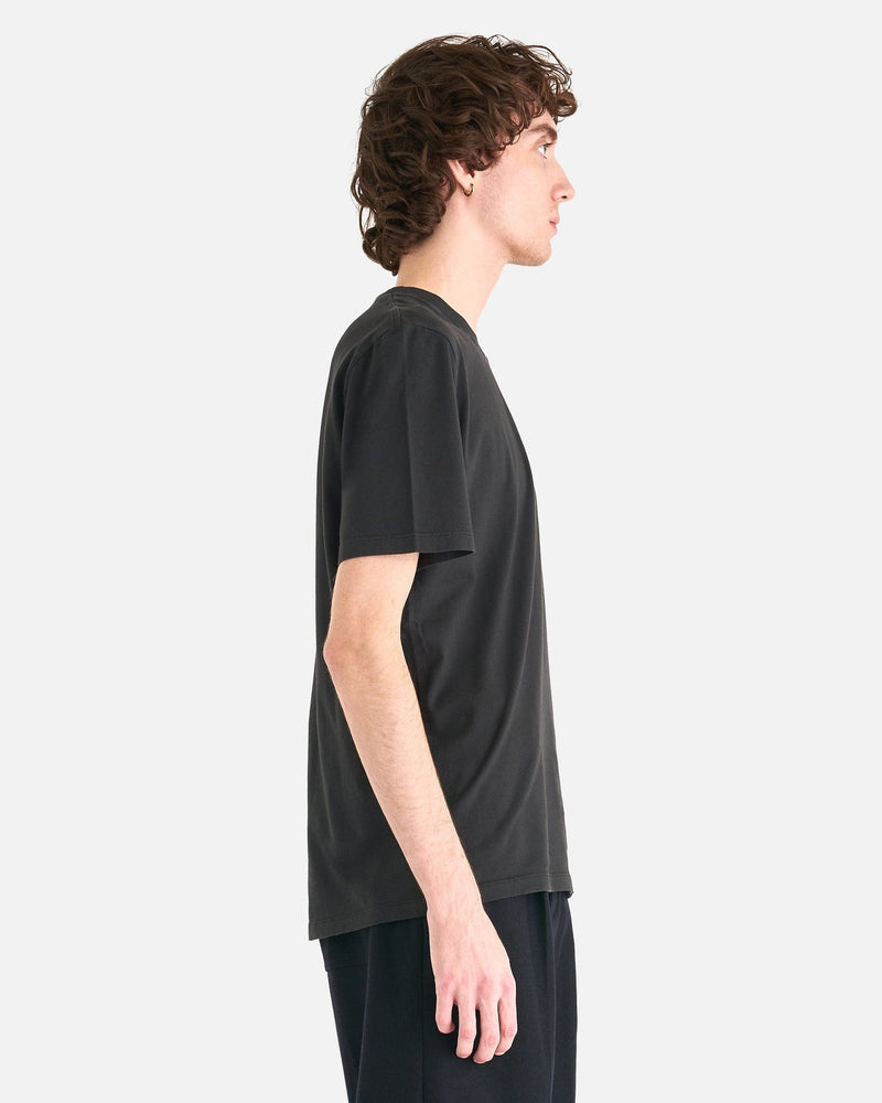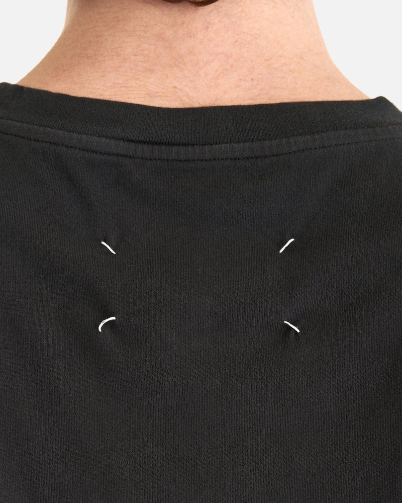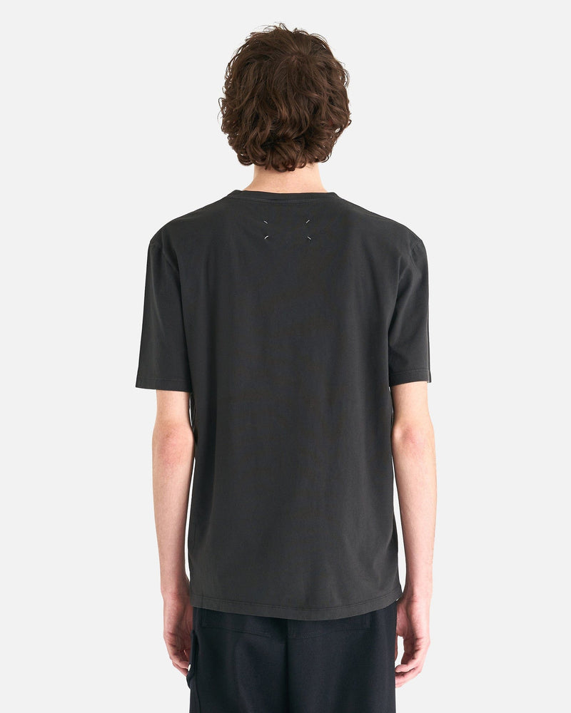 Maison Margiela men's Crew Neckline T-Shirt in Black. This shirt features a crew neckline, straight hem, and the 4-stitch signature on the back.