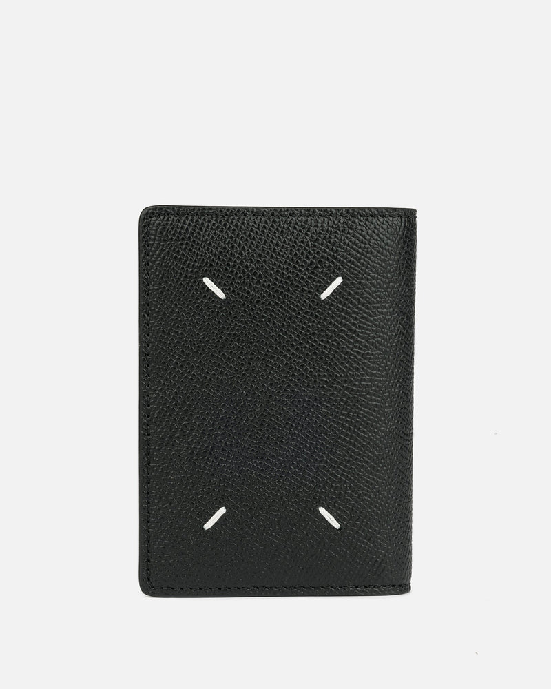 Maison Margiela leather folding card holder in black. This cardholder is made in Italy, using the finest calfskin leather. The front has the signature four white stitch moniker the house is known for.
