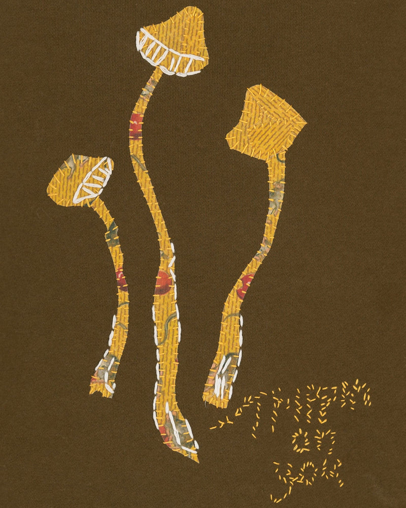 - Embroidered mushrooms and text