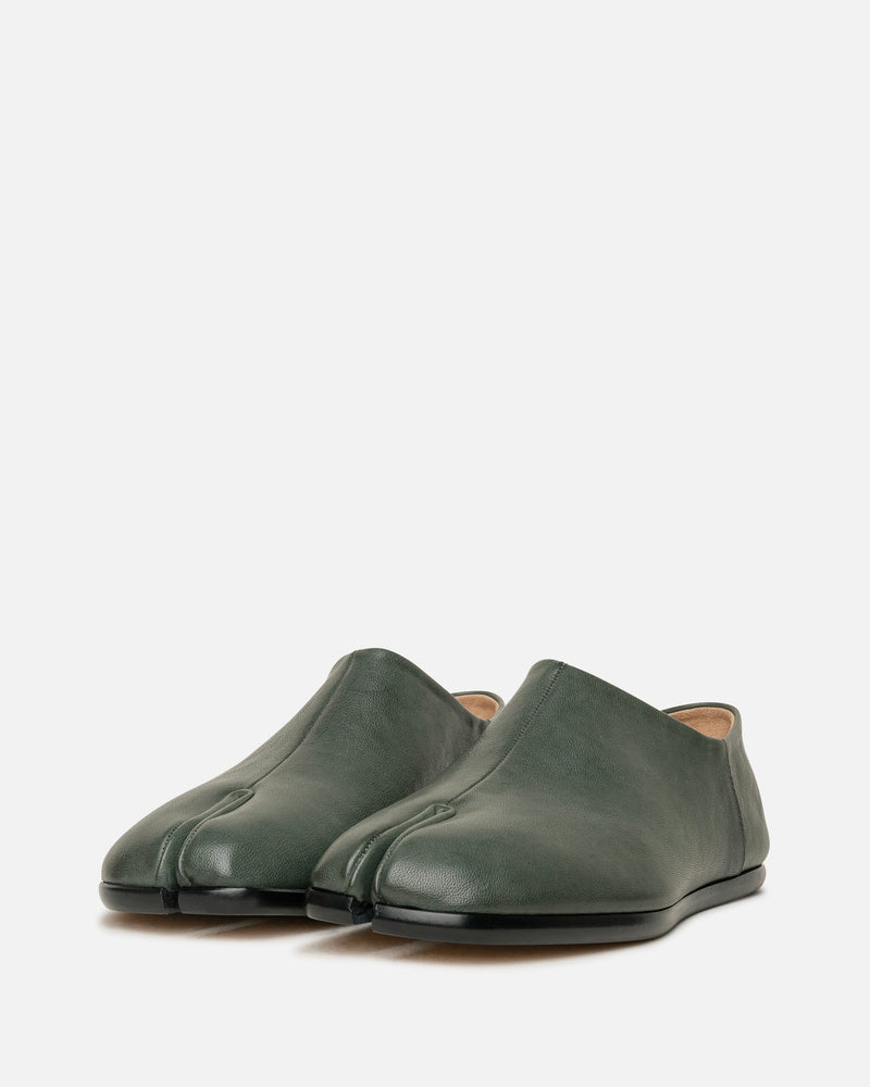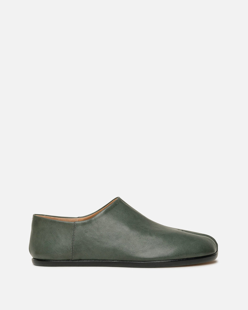 Maison Margiela men's tabi loafers in turquoise. These shoes have a flat sole and leather upper.