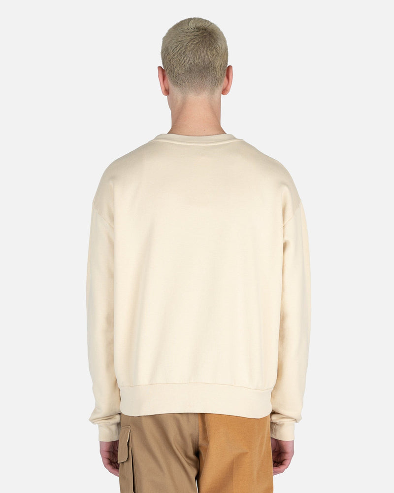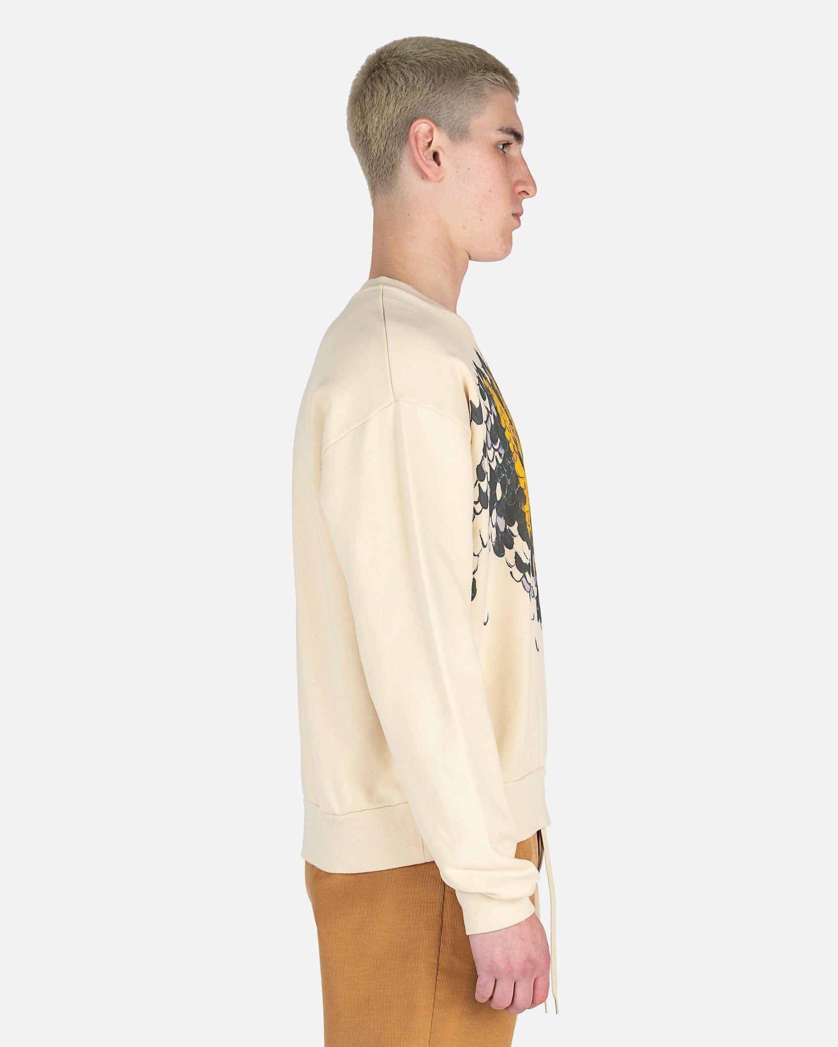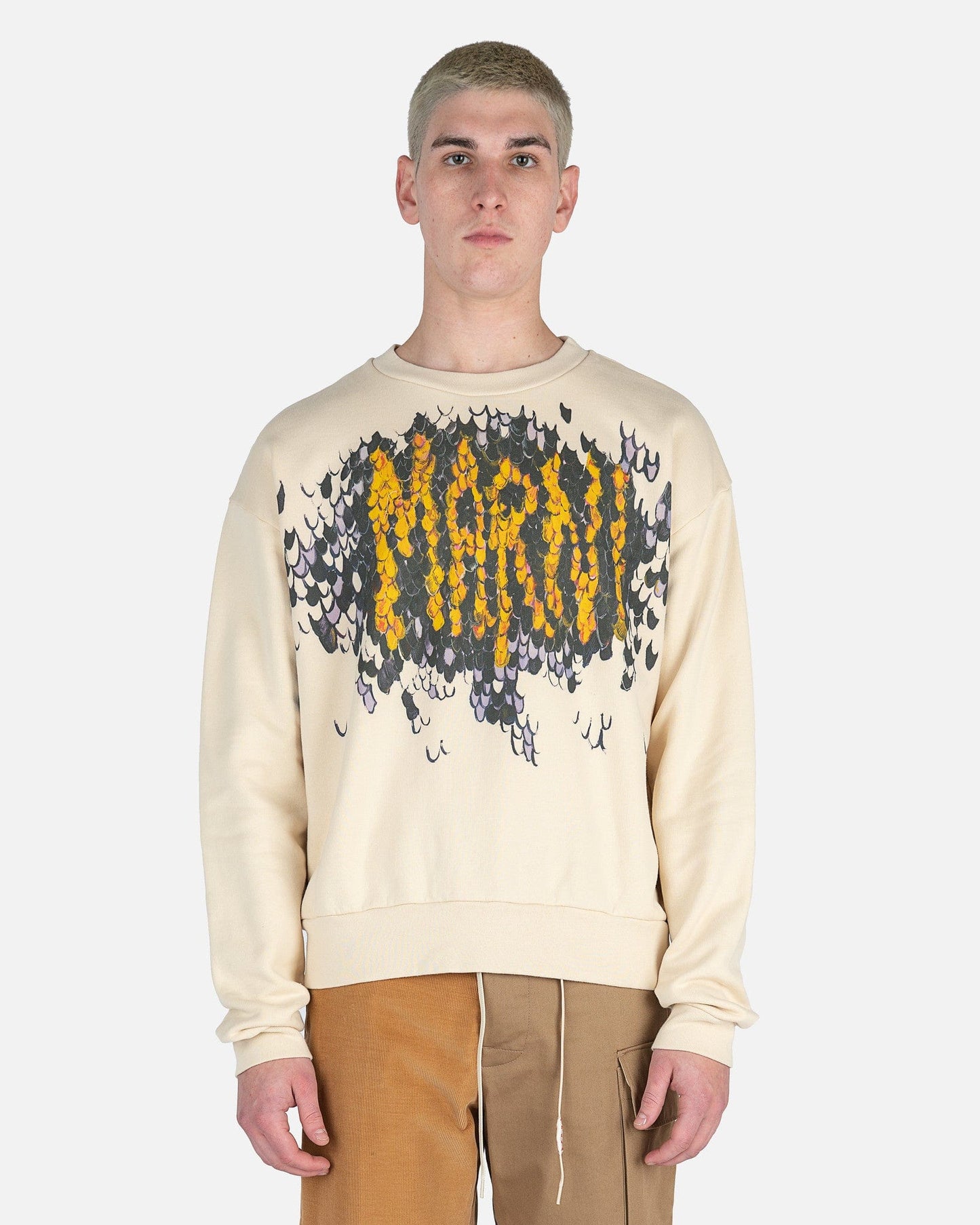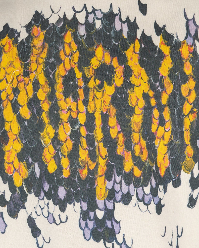 Marni men's graphic logo crewneck in creme. This crewneck features a print of the Marni logo in yellow with a snakeskin-like, impressionist pattern.