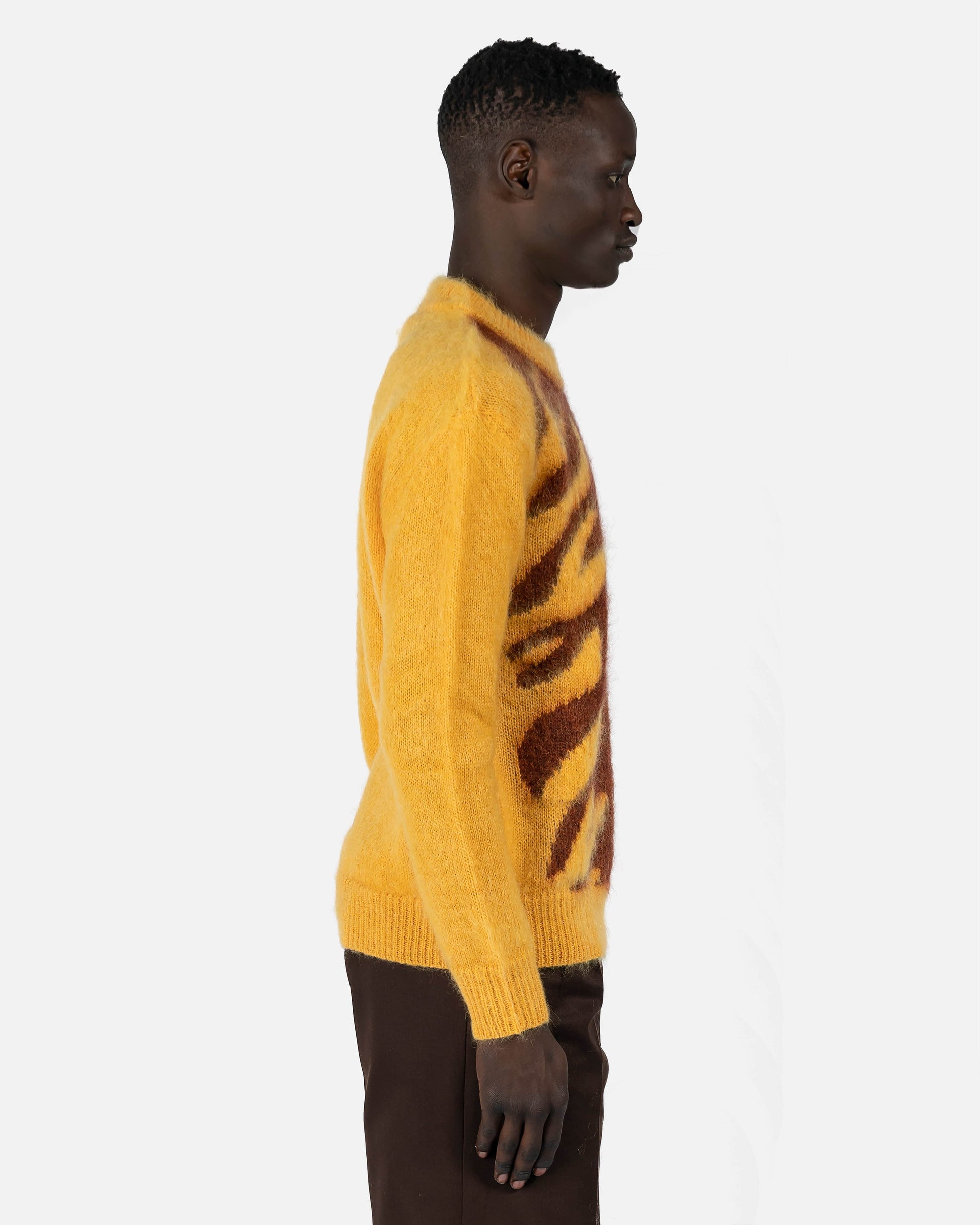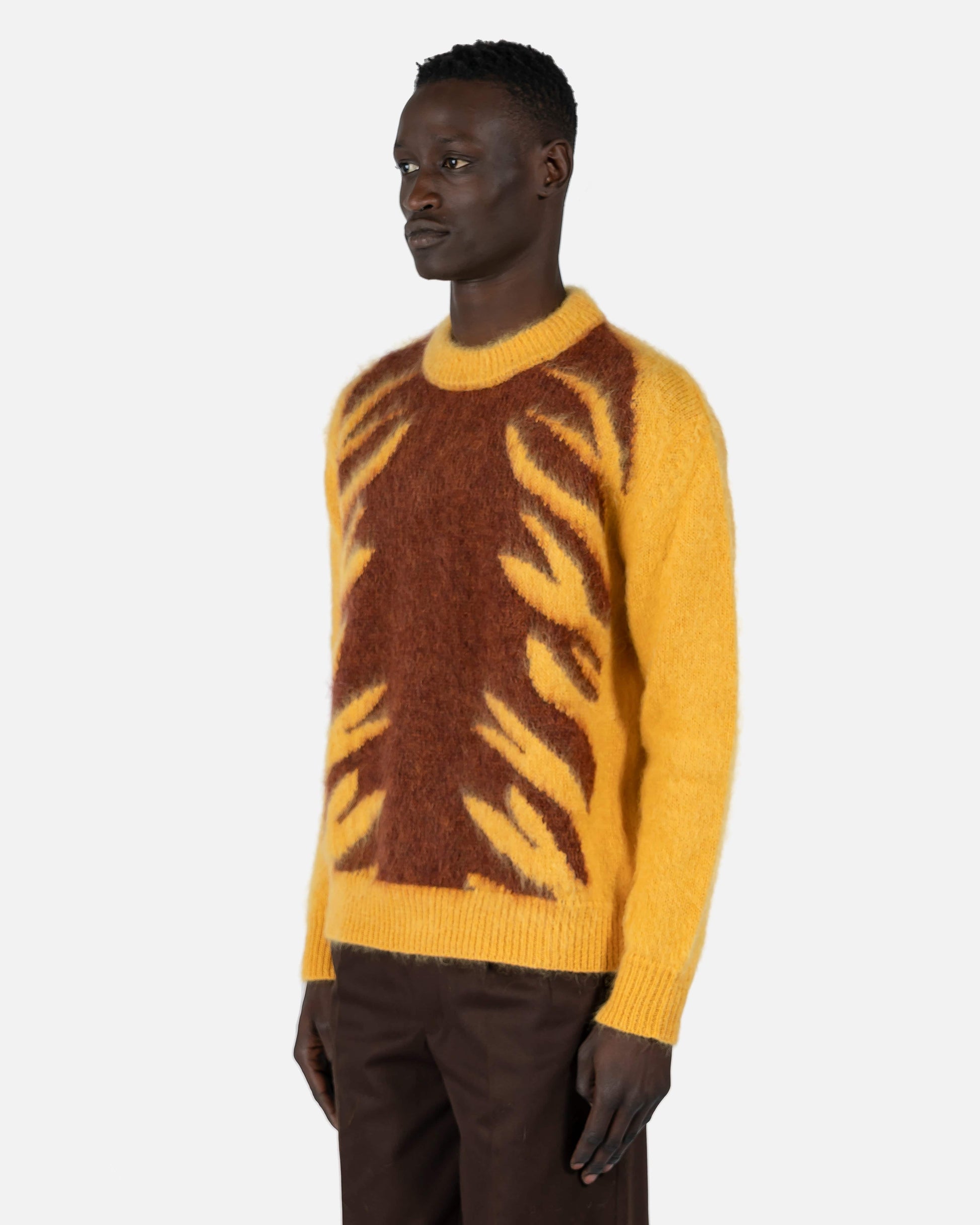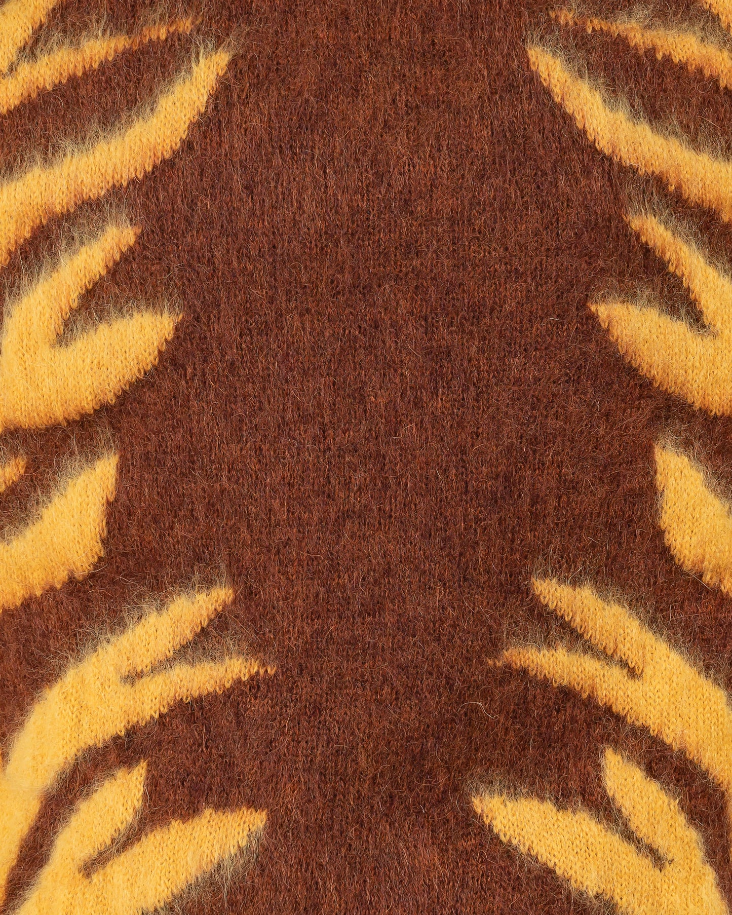 Long sleeve crew neck sweater with intarsia tiger stripes on the front, pattern exclusively designed by the artist Maria Magdalena Suarez. Regular fit, allover brushed wool blend, ribbed collar, cuffs and bottom. Dedicated inner label.