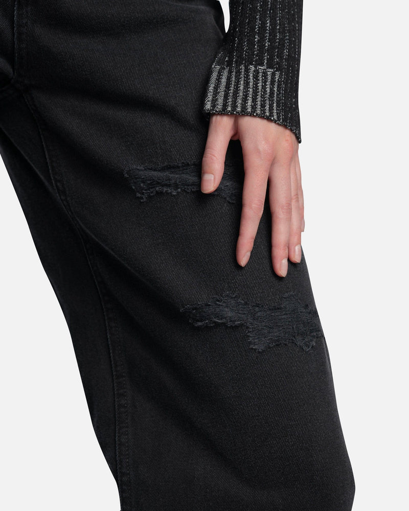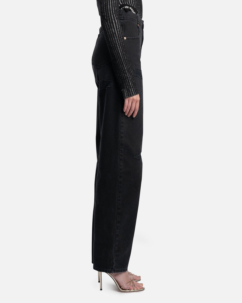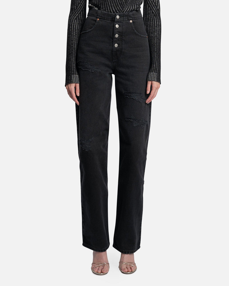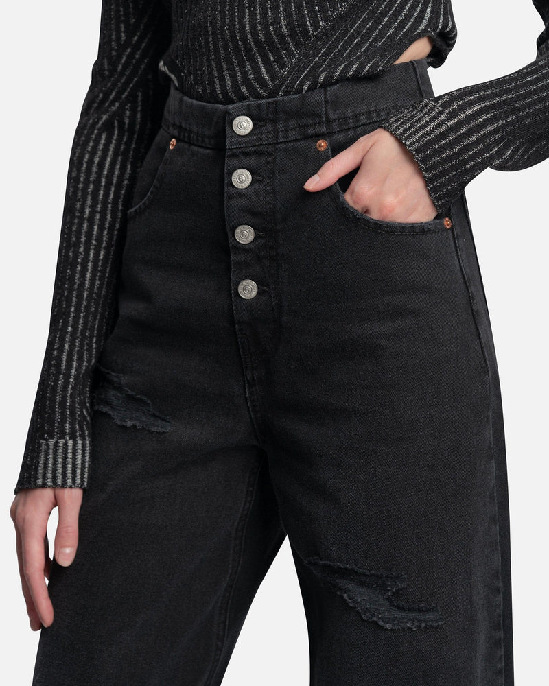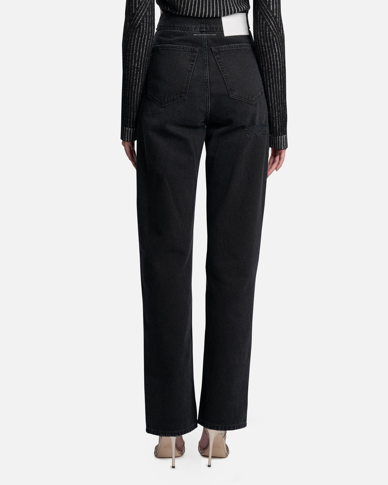 MM6 Maison Margiela high rise jeans in black. These pants feature five-pocket styling and have a straight leg silhouette.
