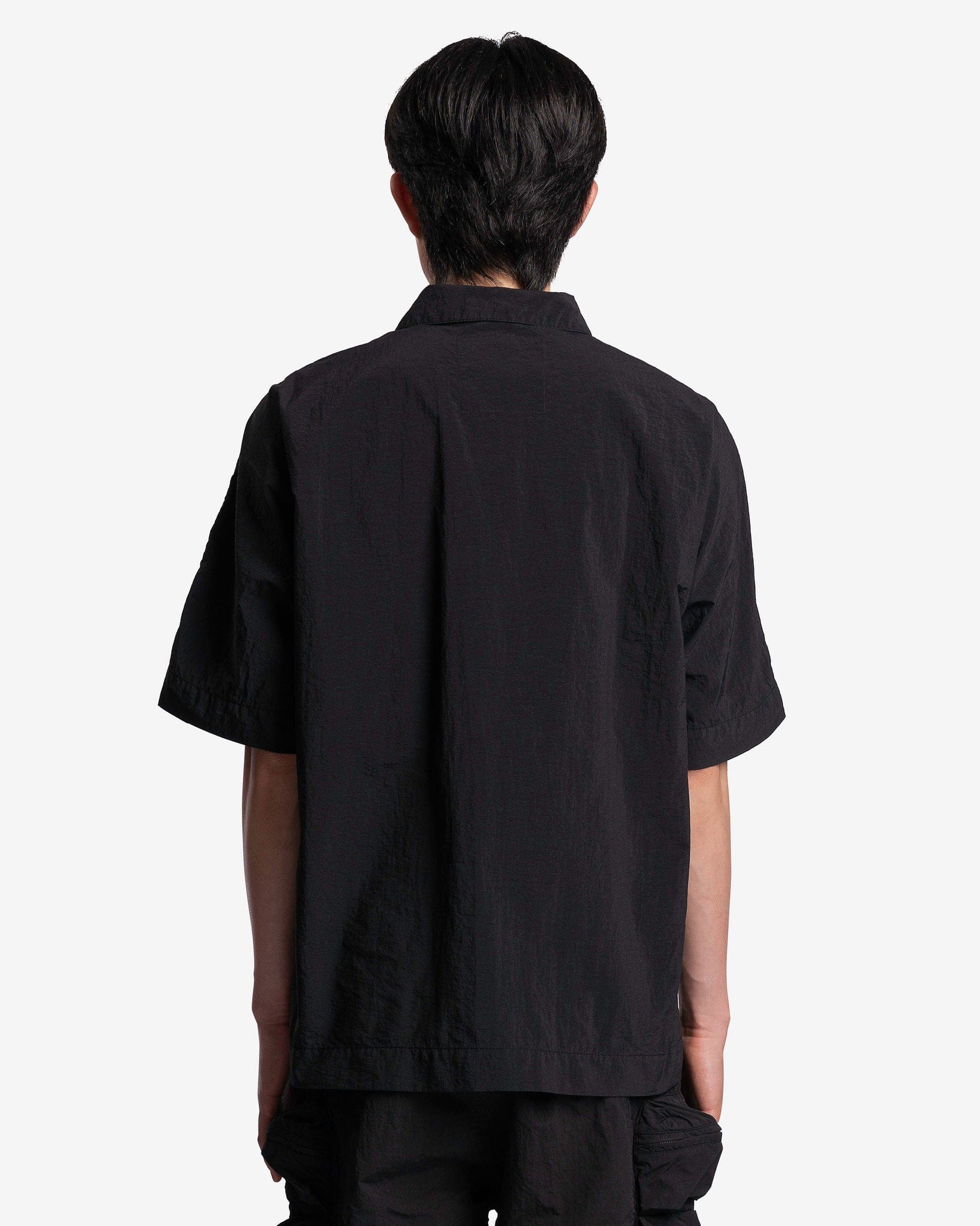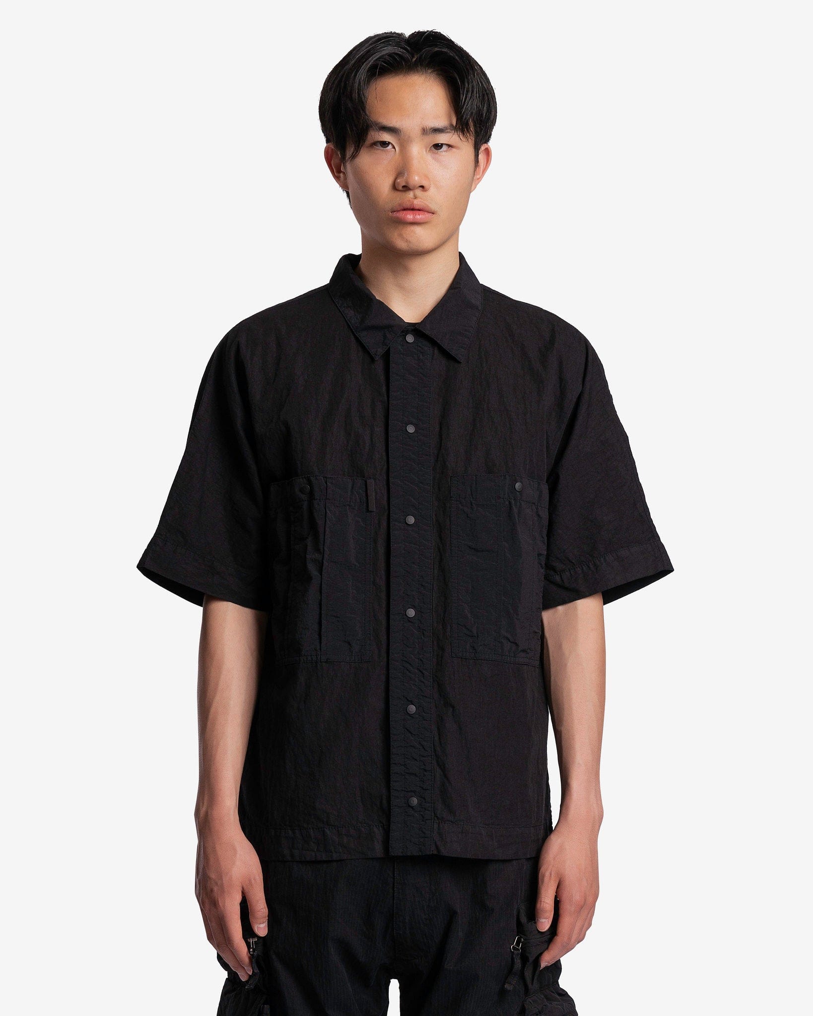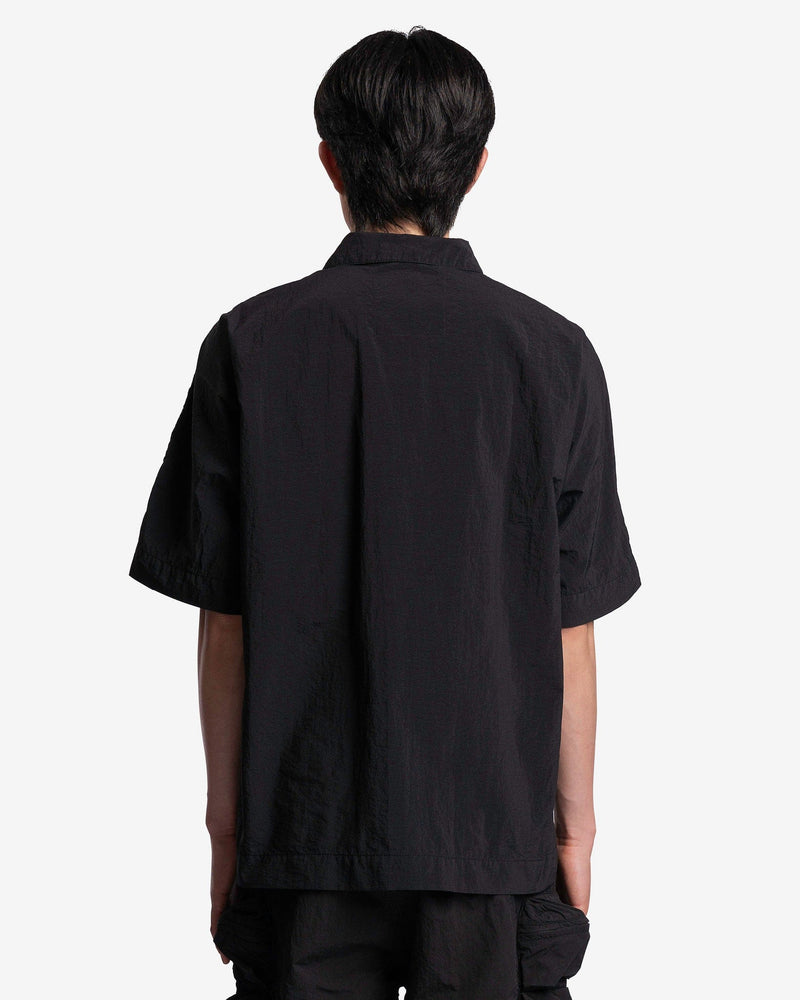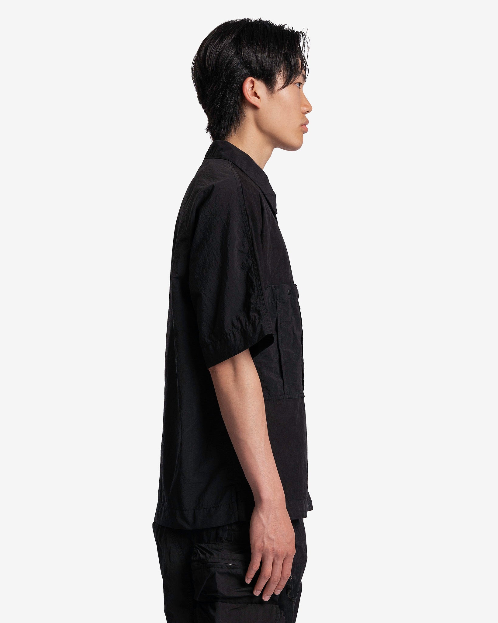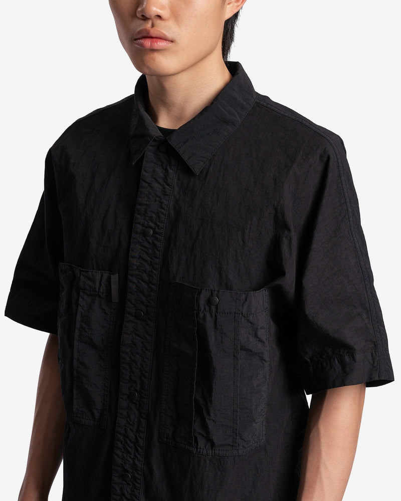 NEMEN men's collared shirt in black. This short sleeved shirt features two patch pockets at the chest and front button closure.