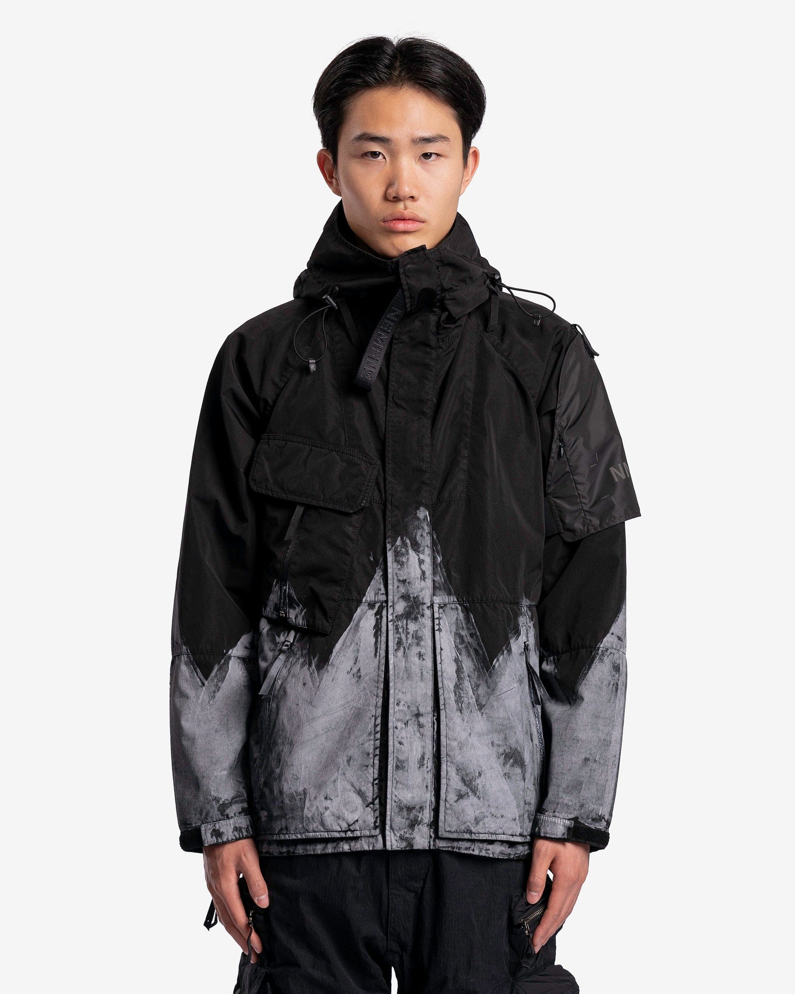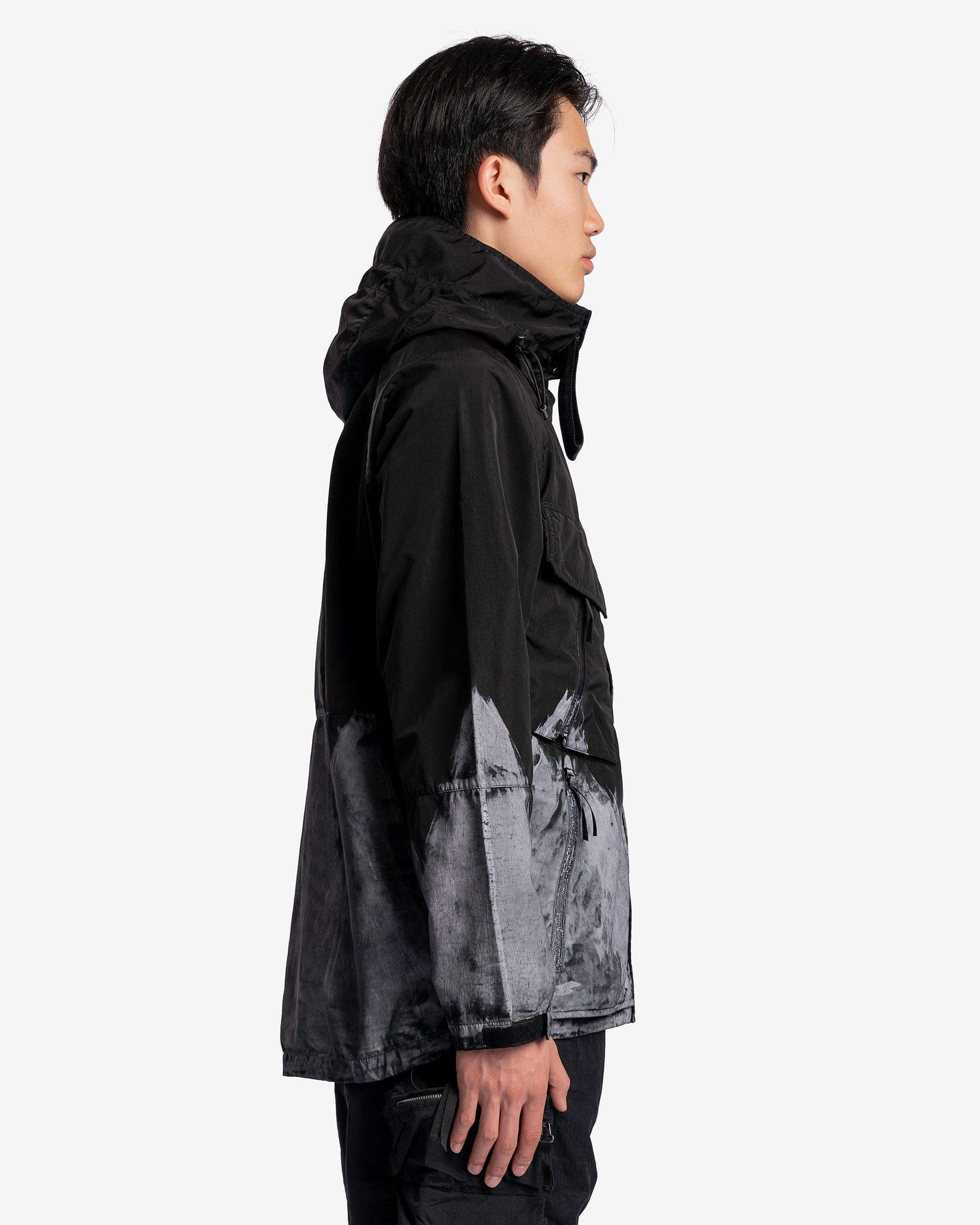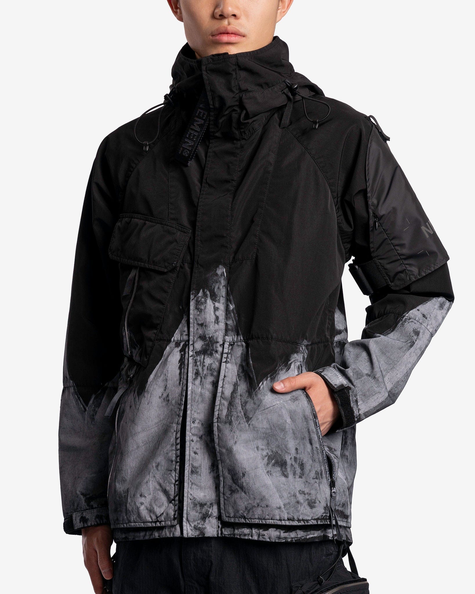 Nemen men's dyed jacket in black. This jacket features a unique pattern along the bottom and is water repellant.