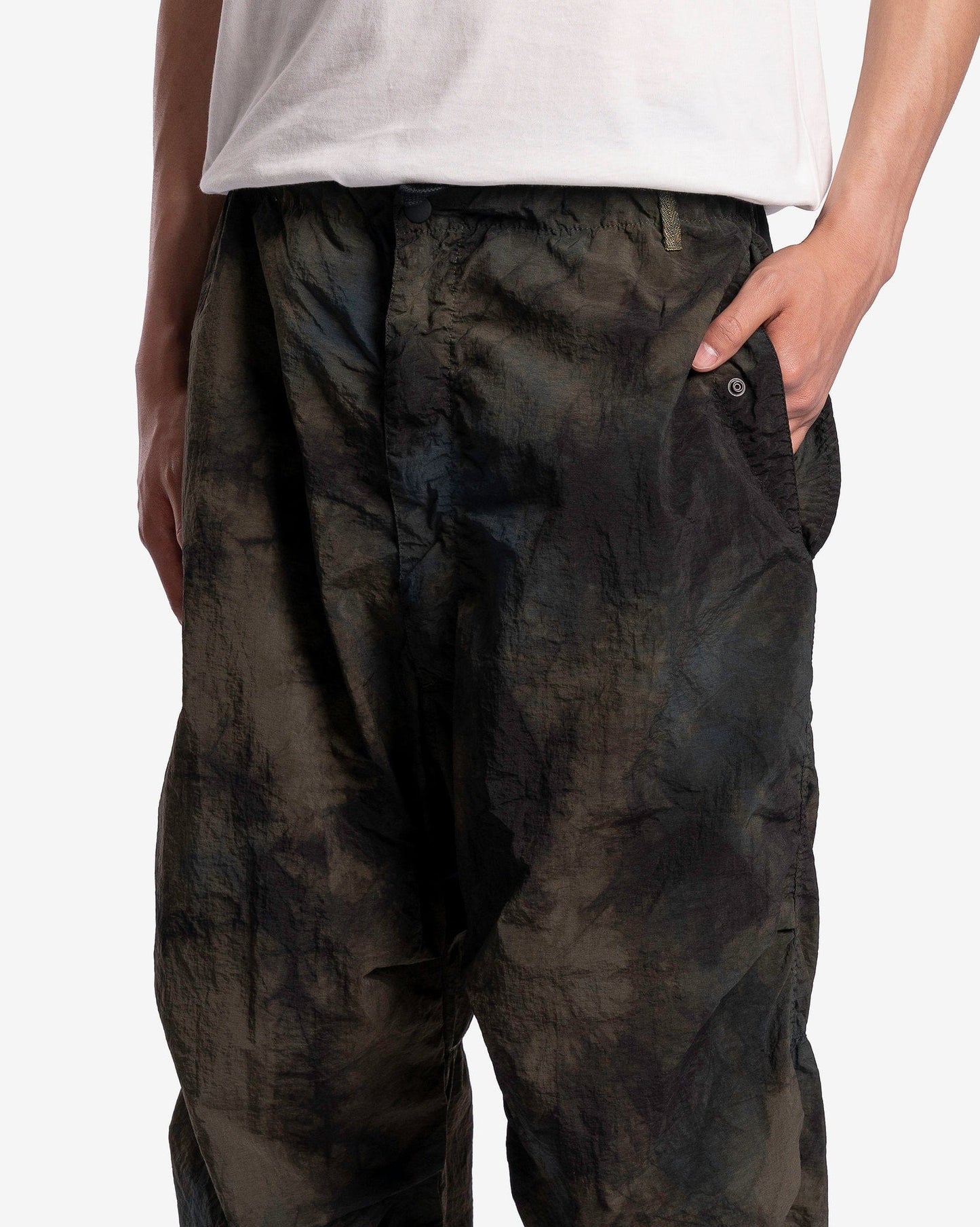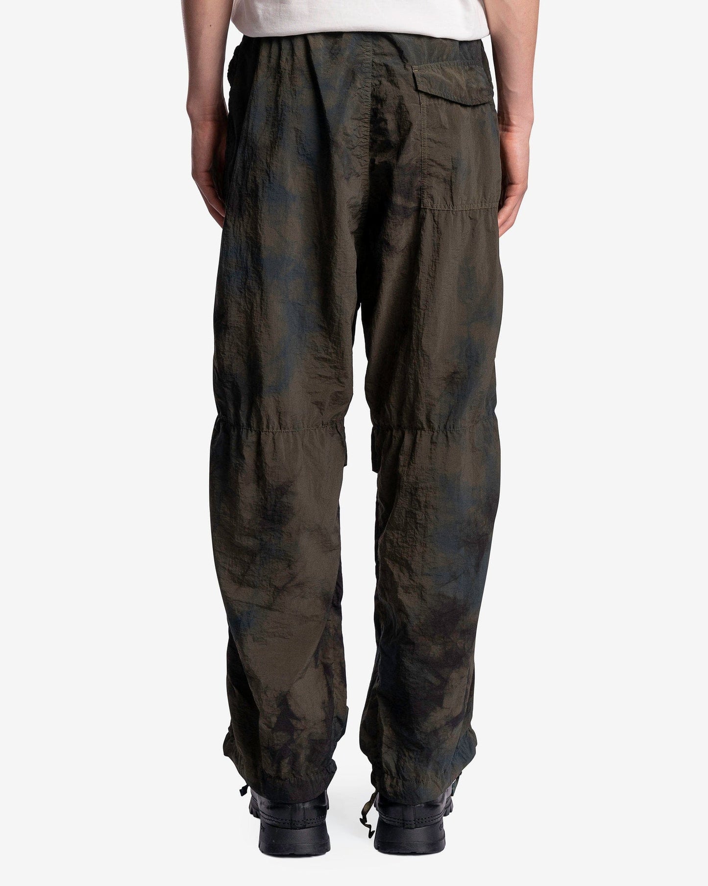 NEMEN men's tech pants in green. These pants feature a baggy silhouette and all allover tie-dye pattern.