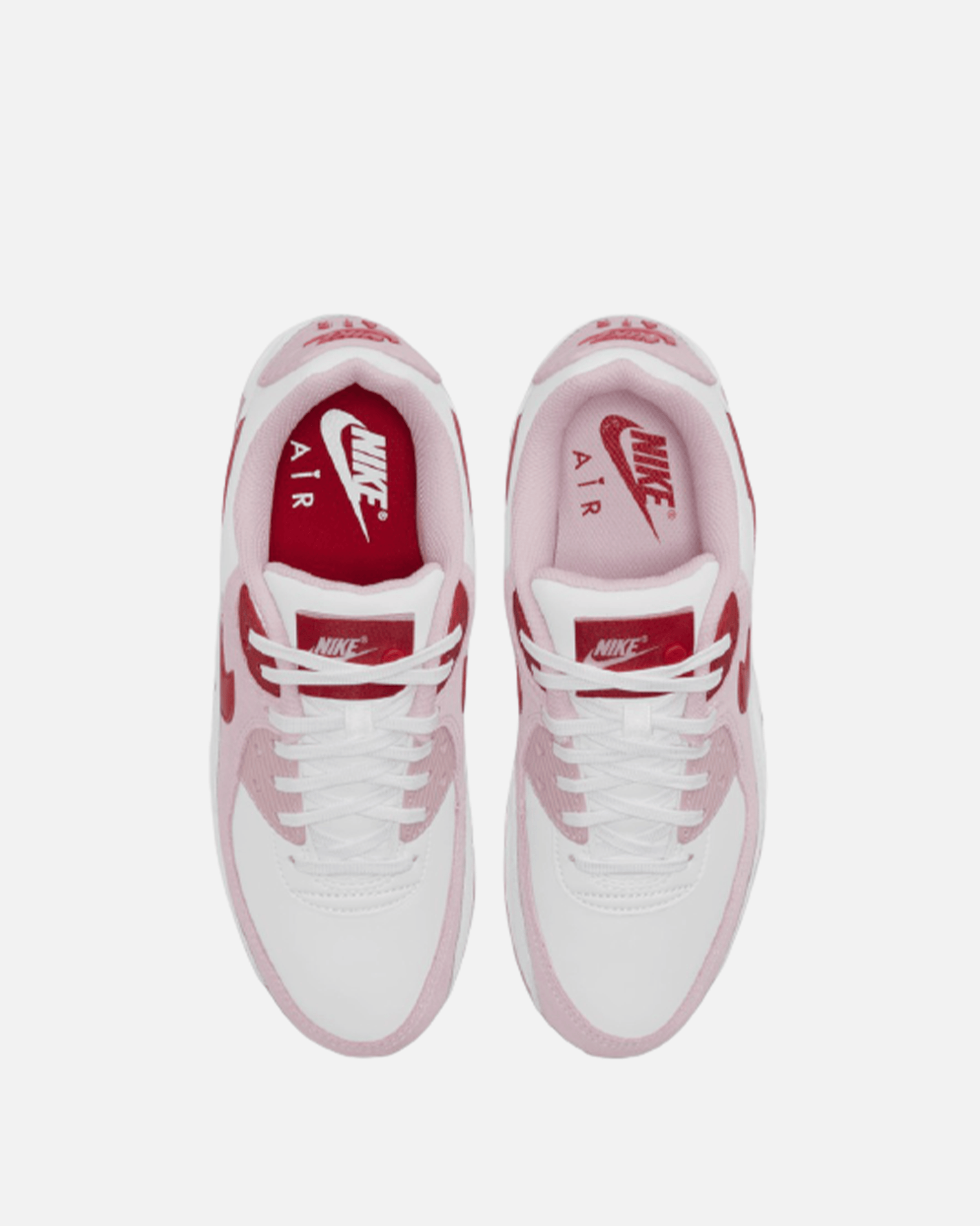 The AM90's signature elements are combined with details dedicated to the most romantic day of the year, like the heart-shaped TPU eyelets, red accents and the stitched label on the tongue that hides a special message: "ME + AM90 = TRUE LOVE".