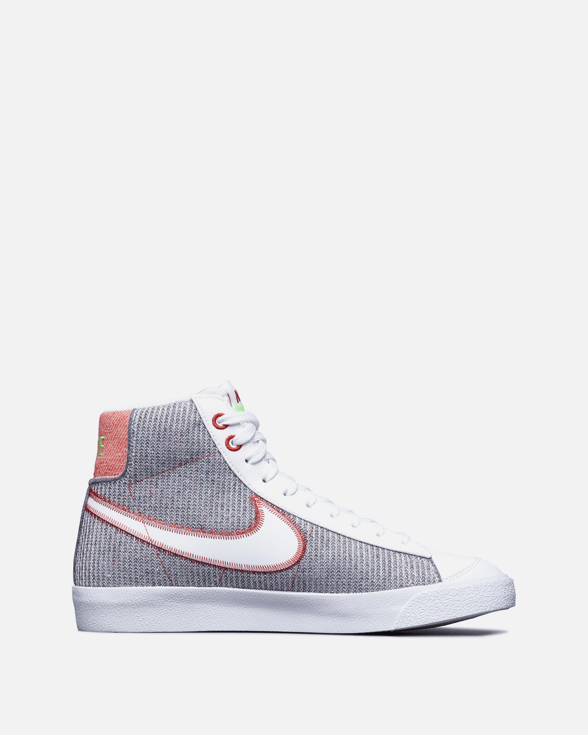 The Nike Blazer Mid '77 Vintage harnesses the old-school look of Nike basketball. Its recycled felt on the upper features an eye-catching pattern while the retro Swoosh with contrast stitching and embroidered eyelets add to the ultra-clean look. The vintage midsole finish makes it look like you've been saving them for years. Made from at least 20% recycled content.