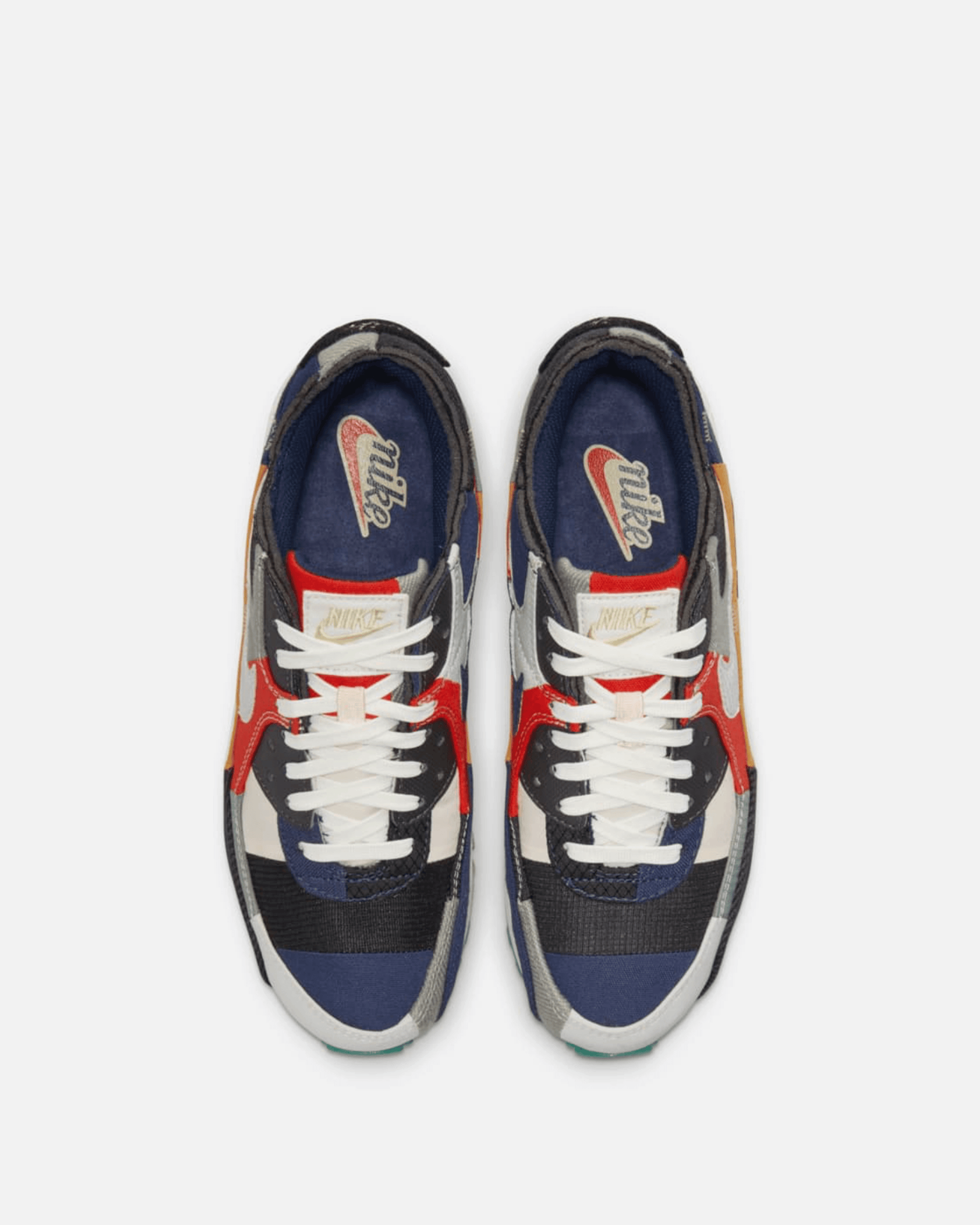Since the Air Max 1 first debuted in 1987, a community of Air Max collectors has emerged across the globe. While plenty of their pairs will be worn to scraps, some will be passed down to the next generation. With that lineage in mind, this Air Max 90 colorway employs patchwork graphics and repurposed materials to highlight sustainable design practices that look to the future.