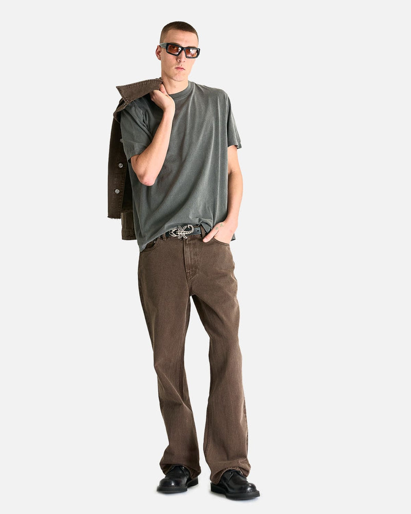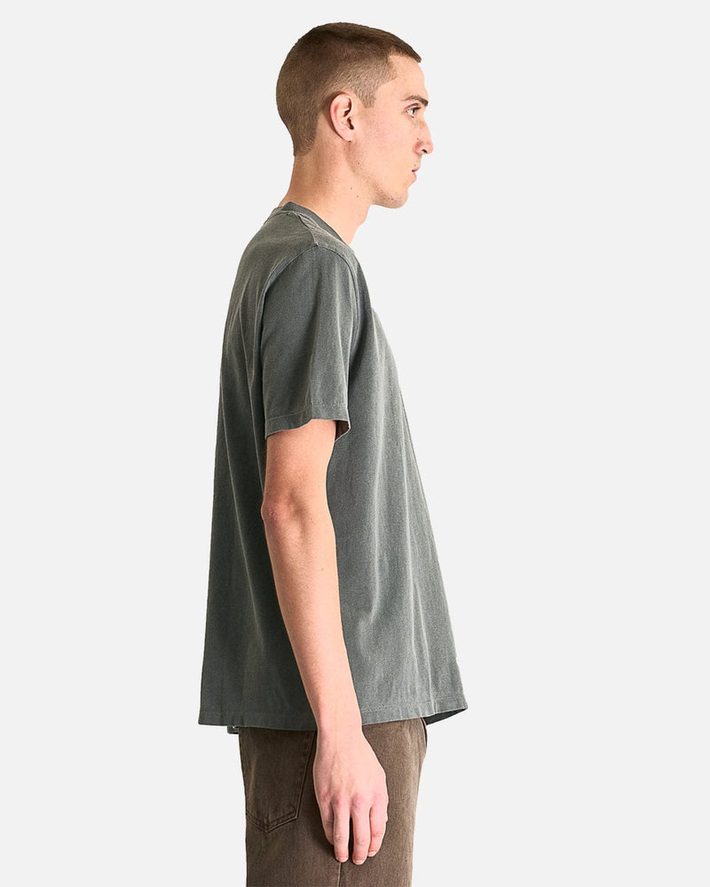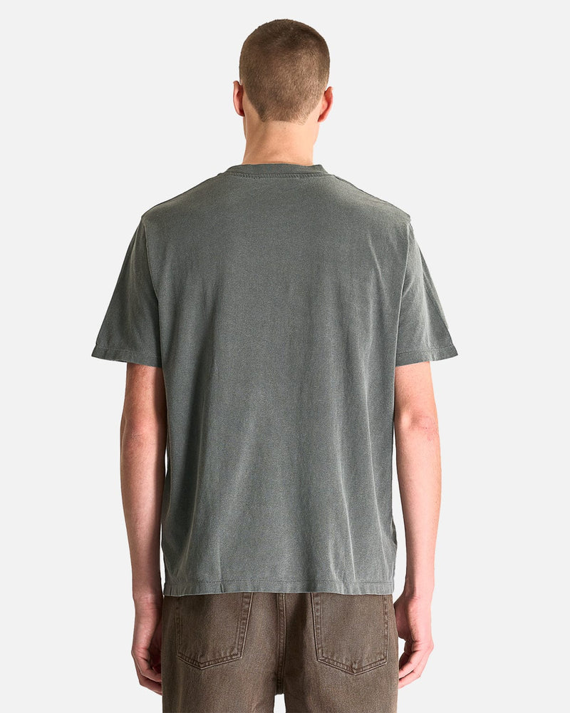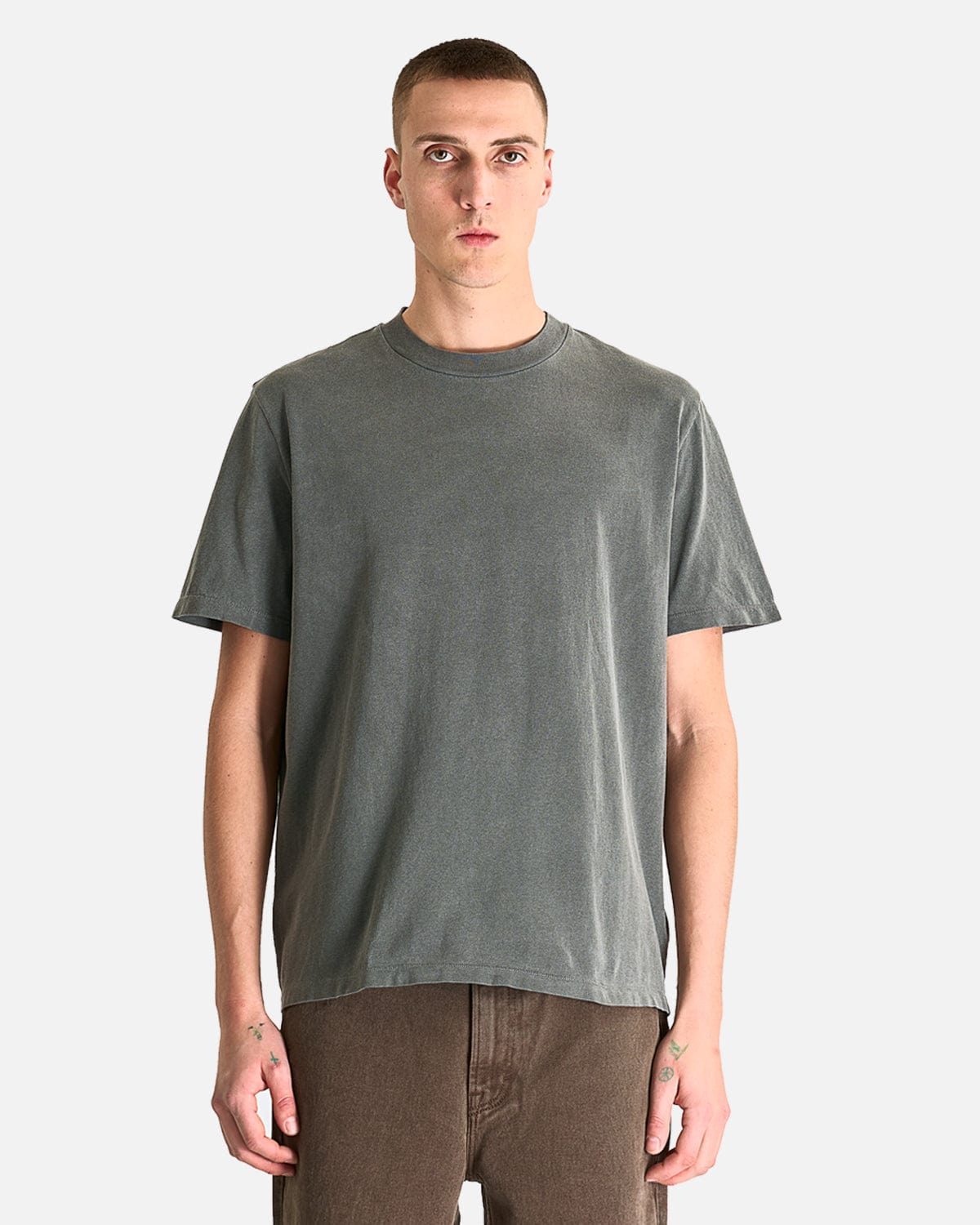 Our Legacy Box T-Shirt in Worn Black Legacy Jersey. This t-shirt is crafted from Portuguese cotton and features a fine rib collar, straight hem and a vintage wash.