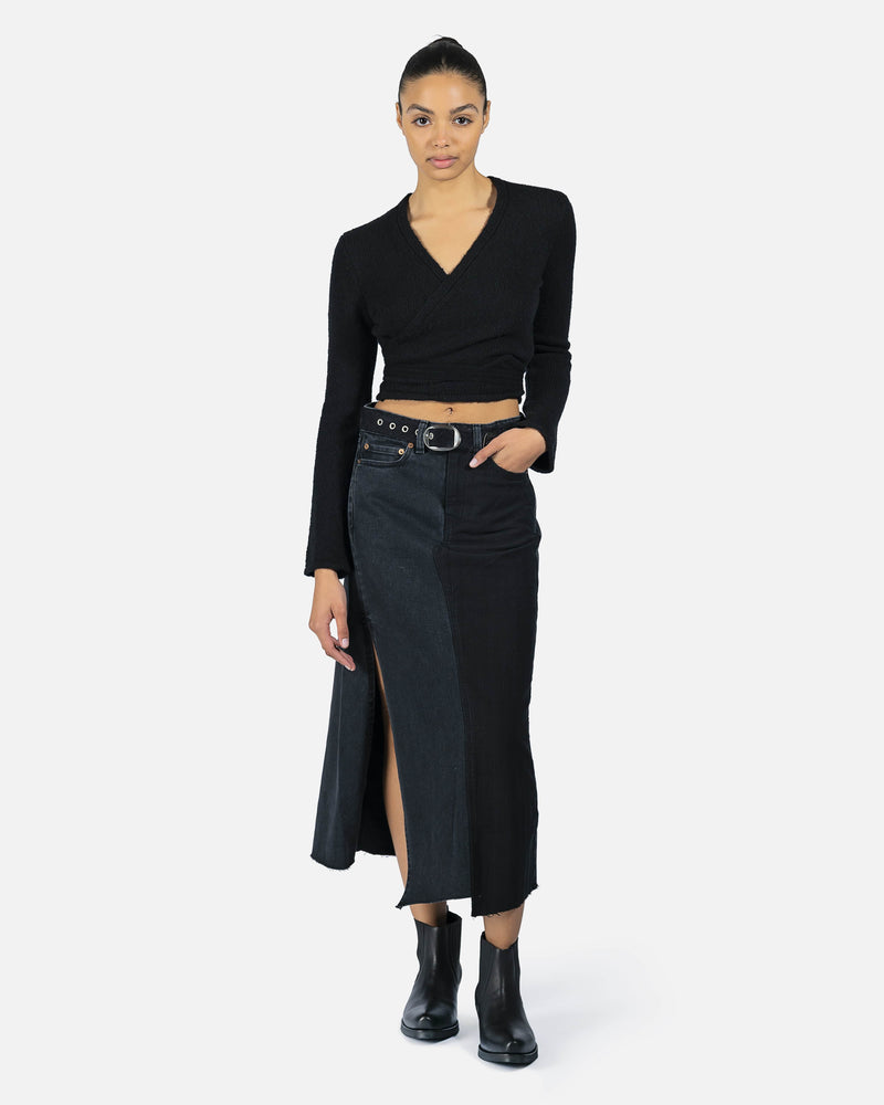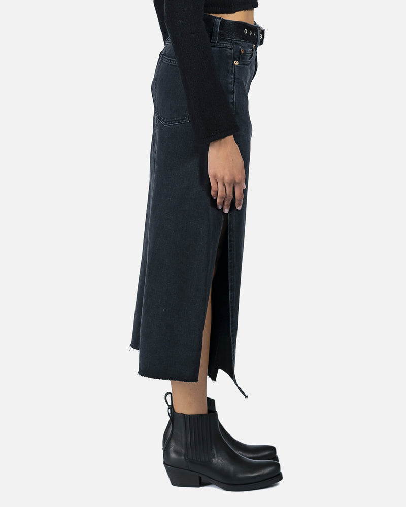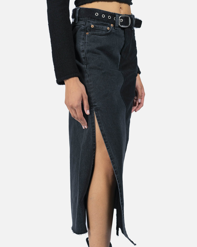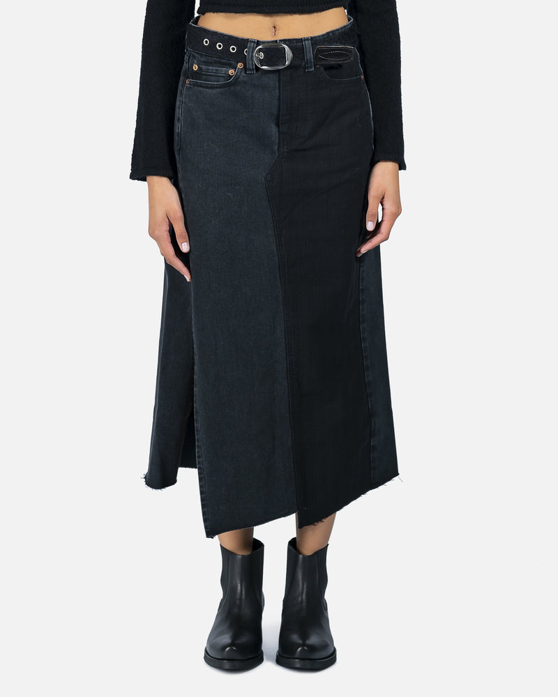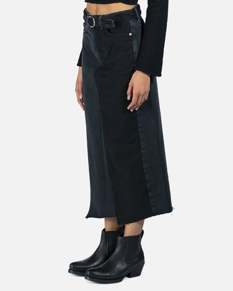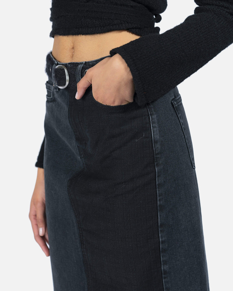 Craft Skirt in Black Stripe Patch. Produced in a washed cotton denim, the womens Craft Skirt has a regular, A line fit and features a contrast striped fabric panel, 5 pockets and a zip fly.