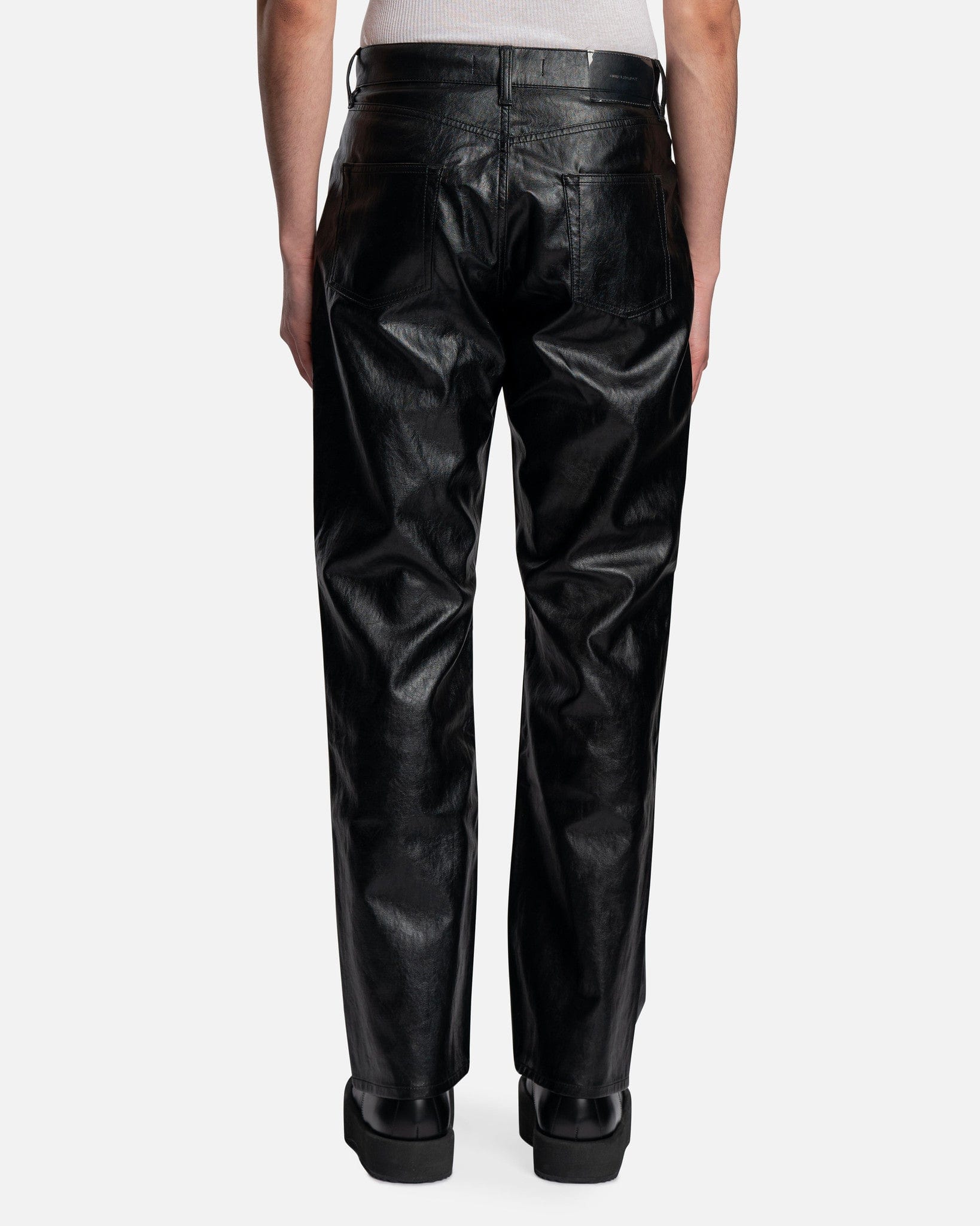 Our Legacy women's Linear Moto Cut in Cain Black Fake Leather. Sleek faux leather straight leg women's pants.
