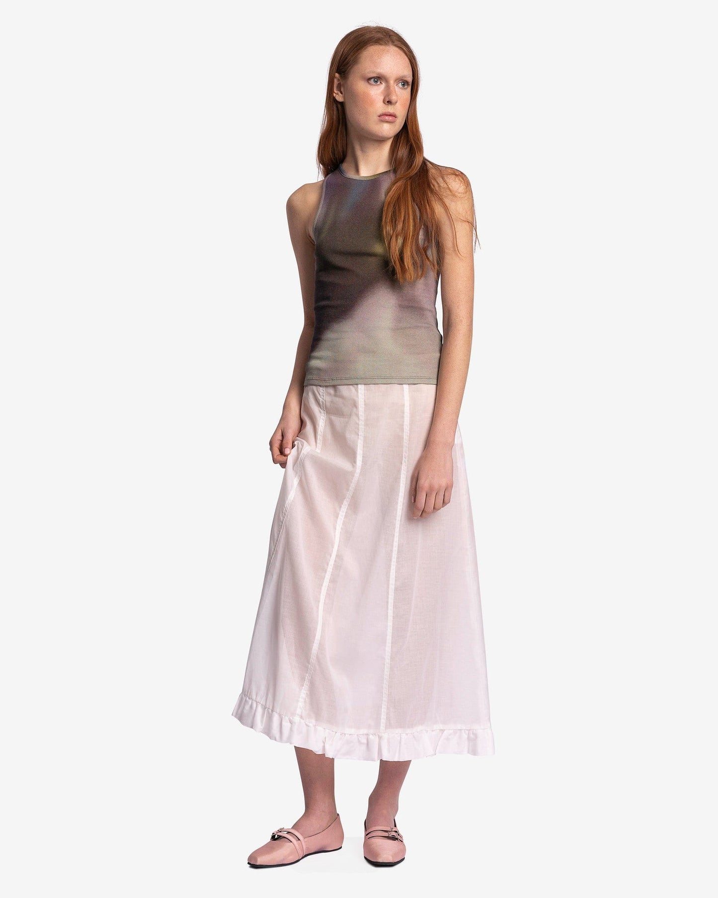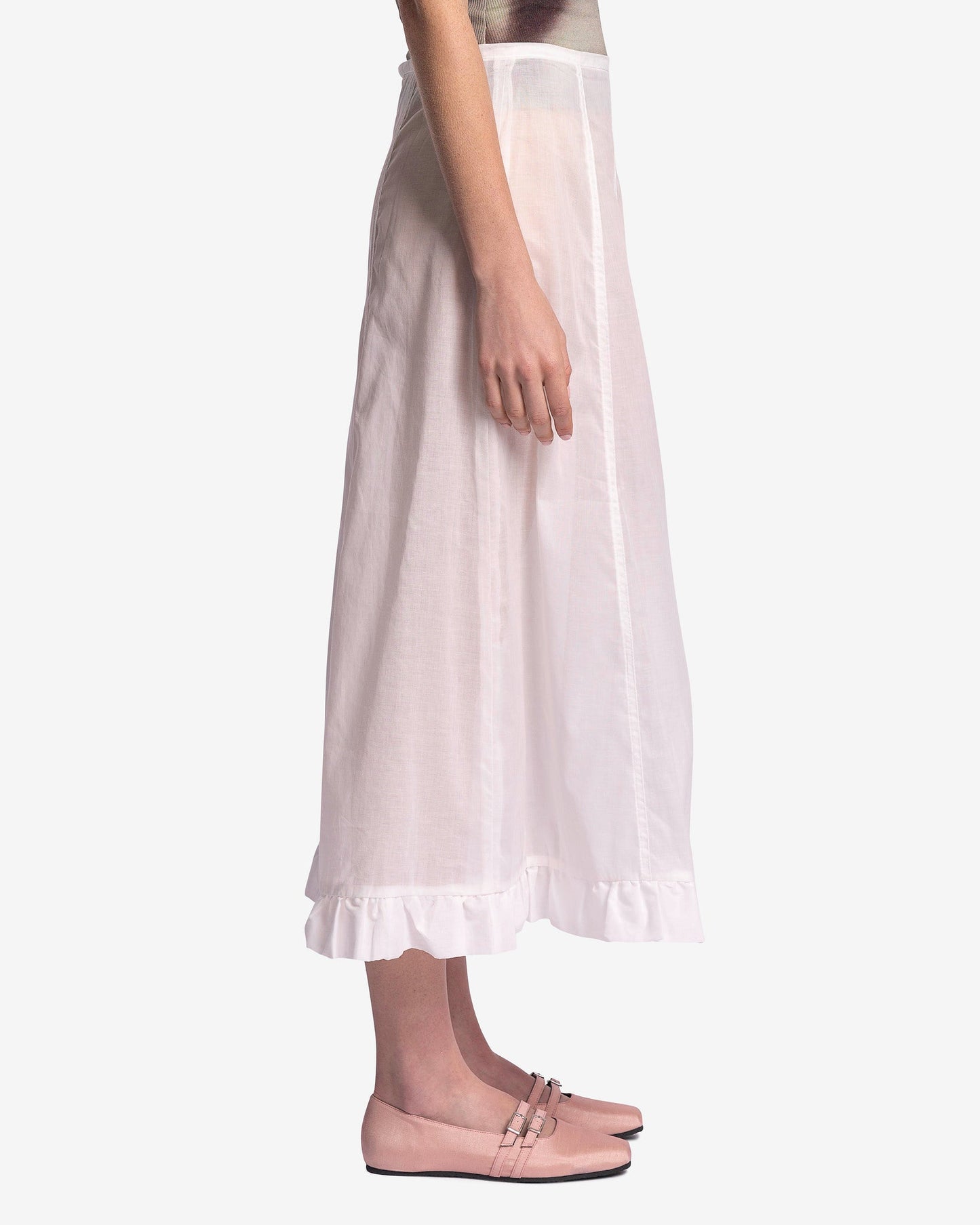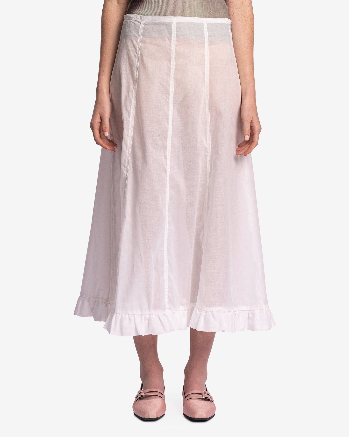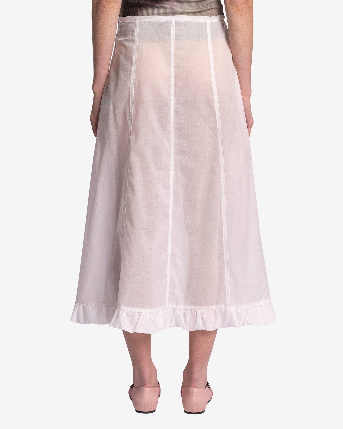 Paloma Wool women's sheer skirt in white. This skirt features a paneled design with a ruffled hem.