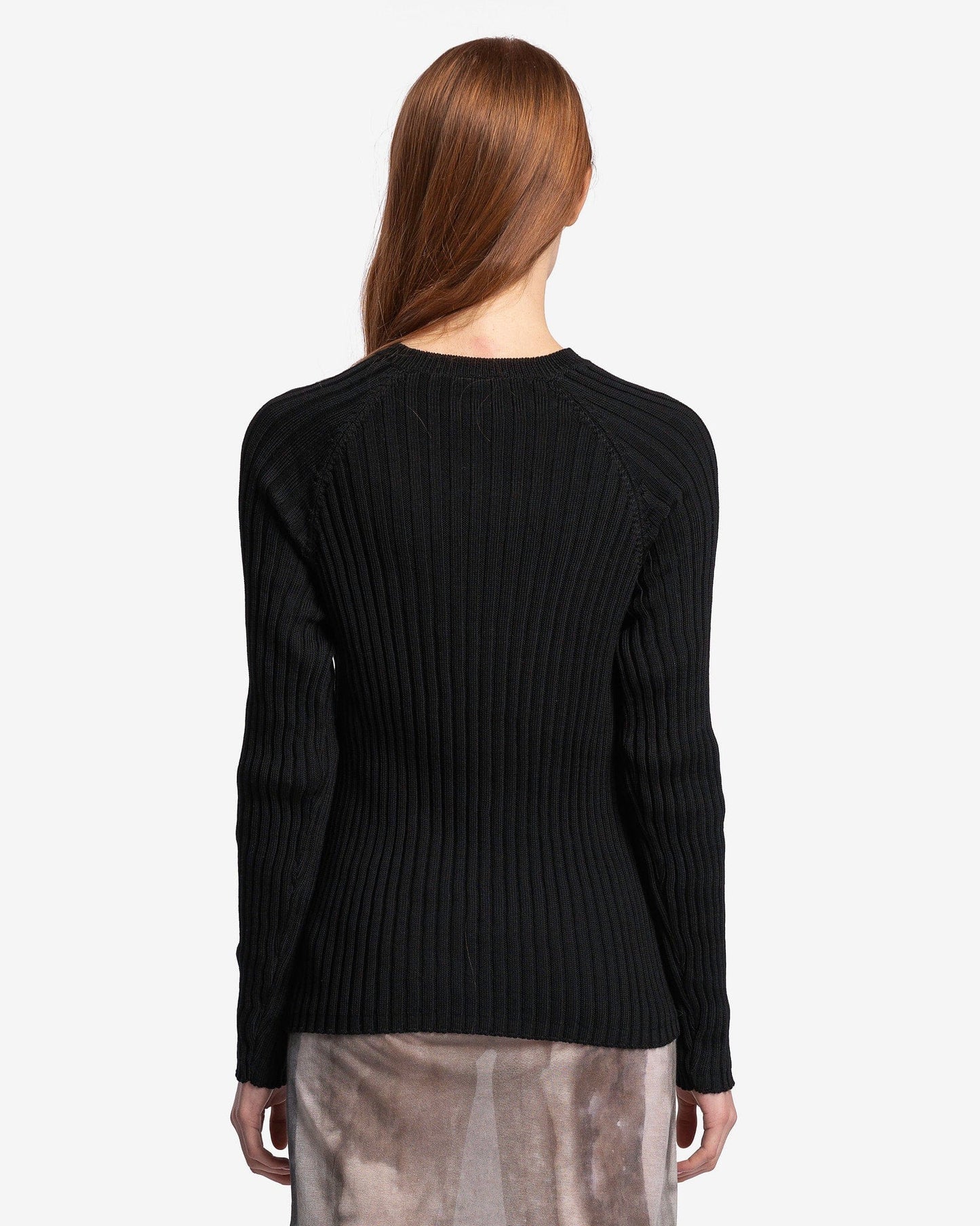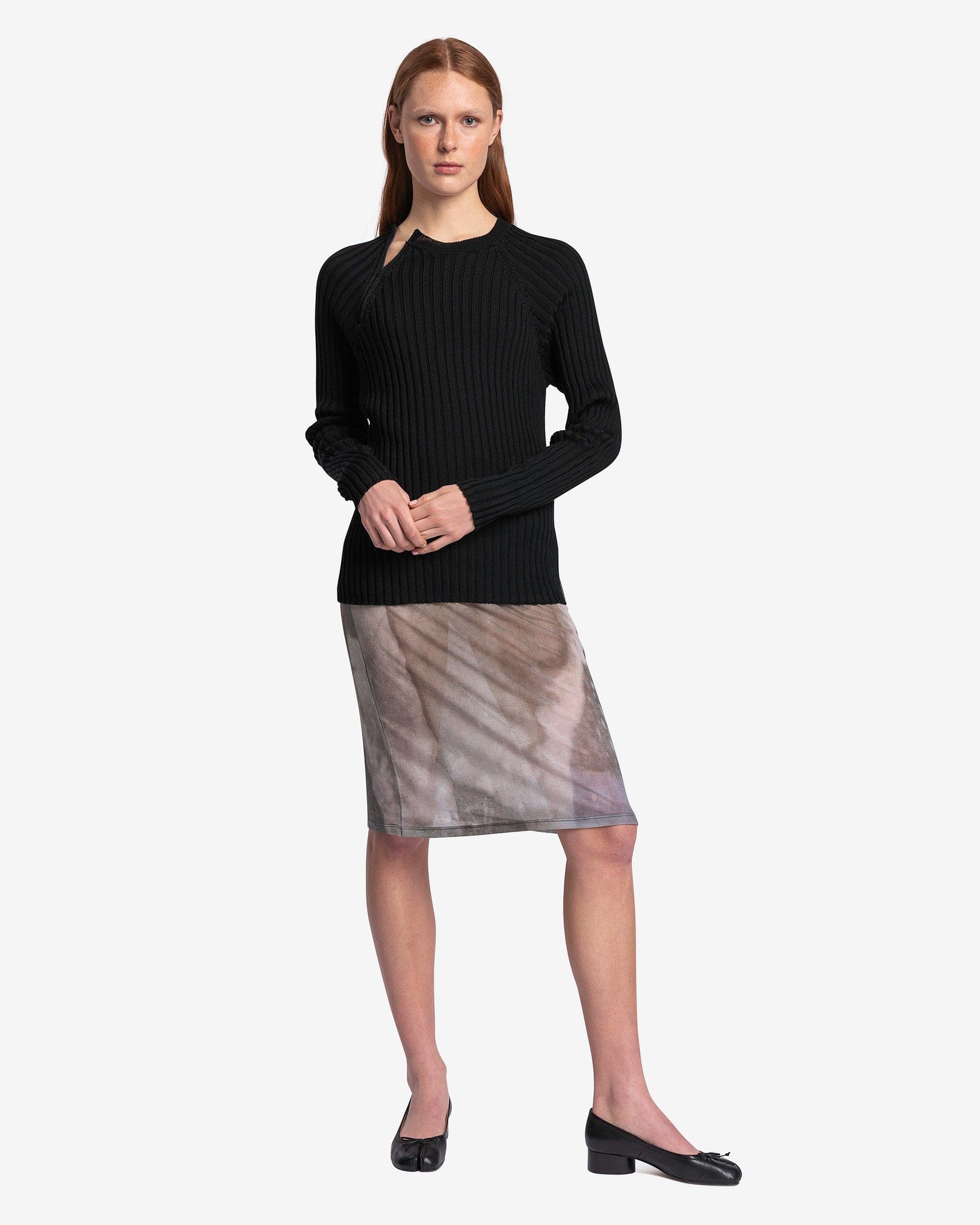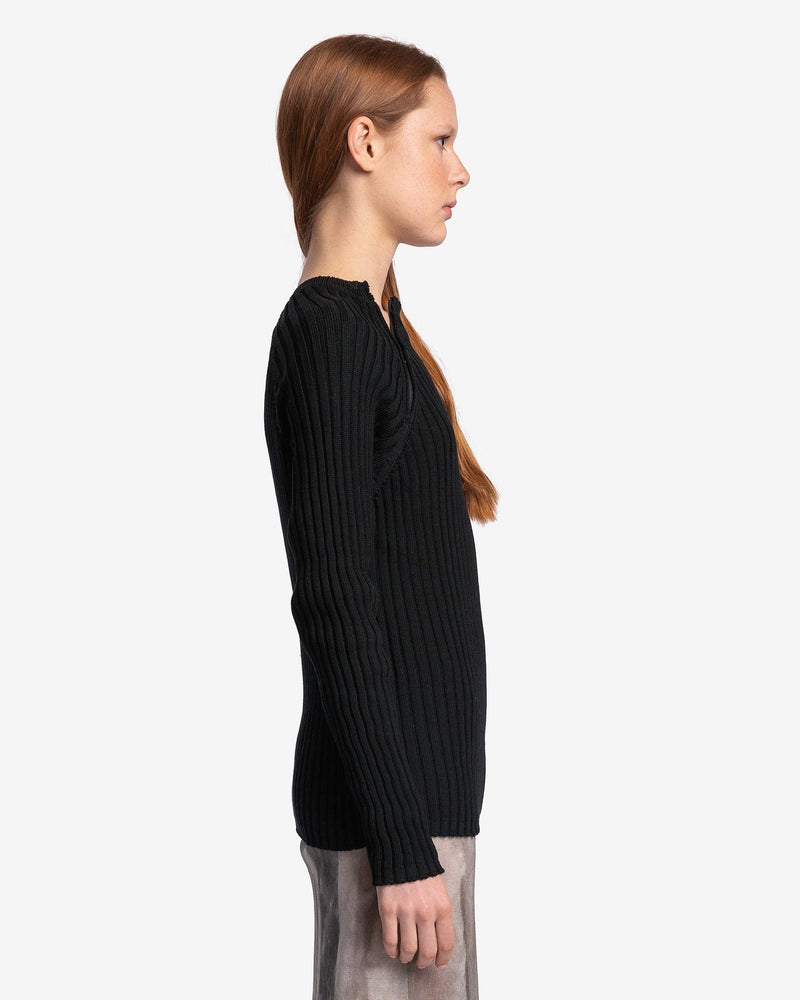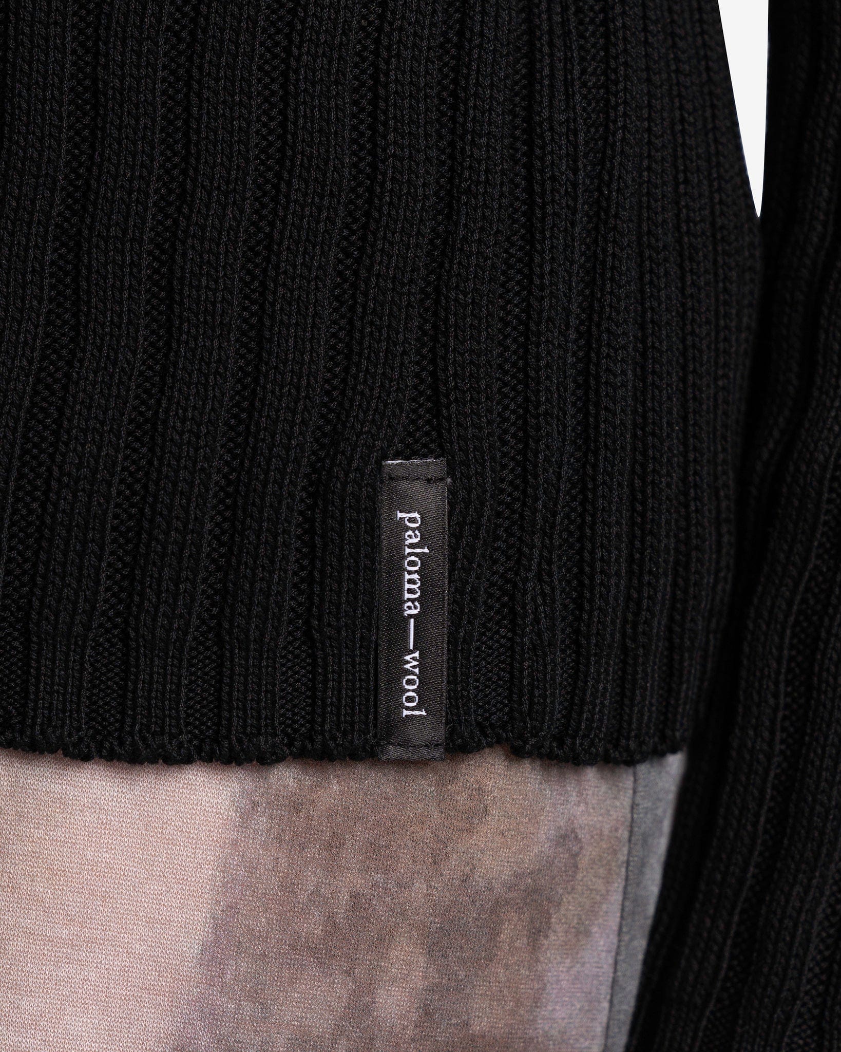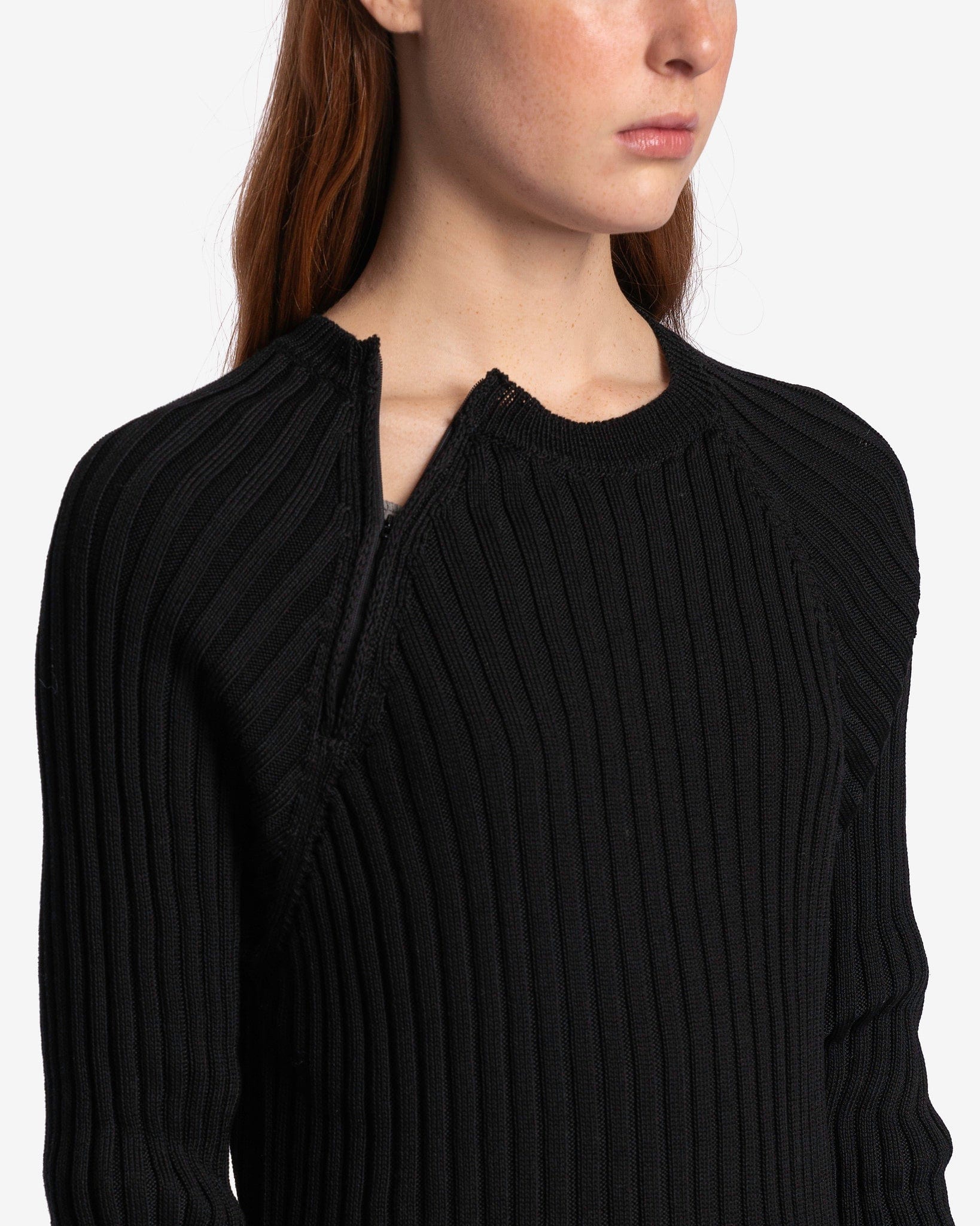 Paloma Wool women's zip detail sweater in black. This top is ribbed throughout the body and has a zip detail at the right shoulder.