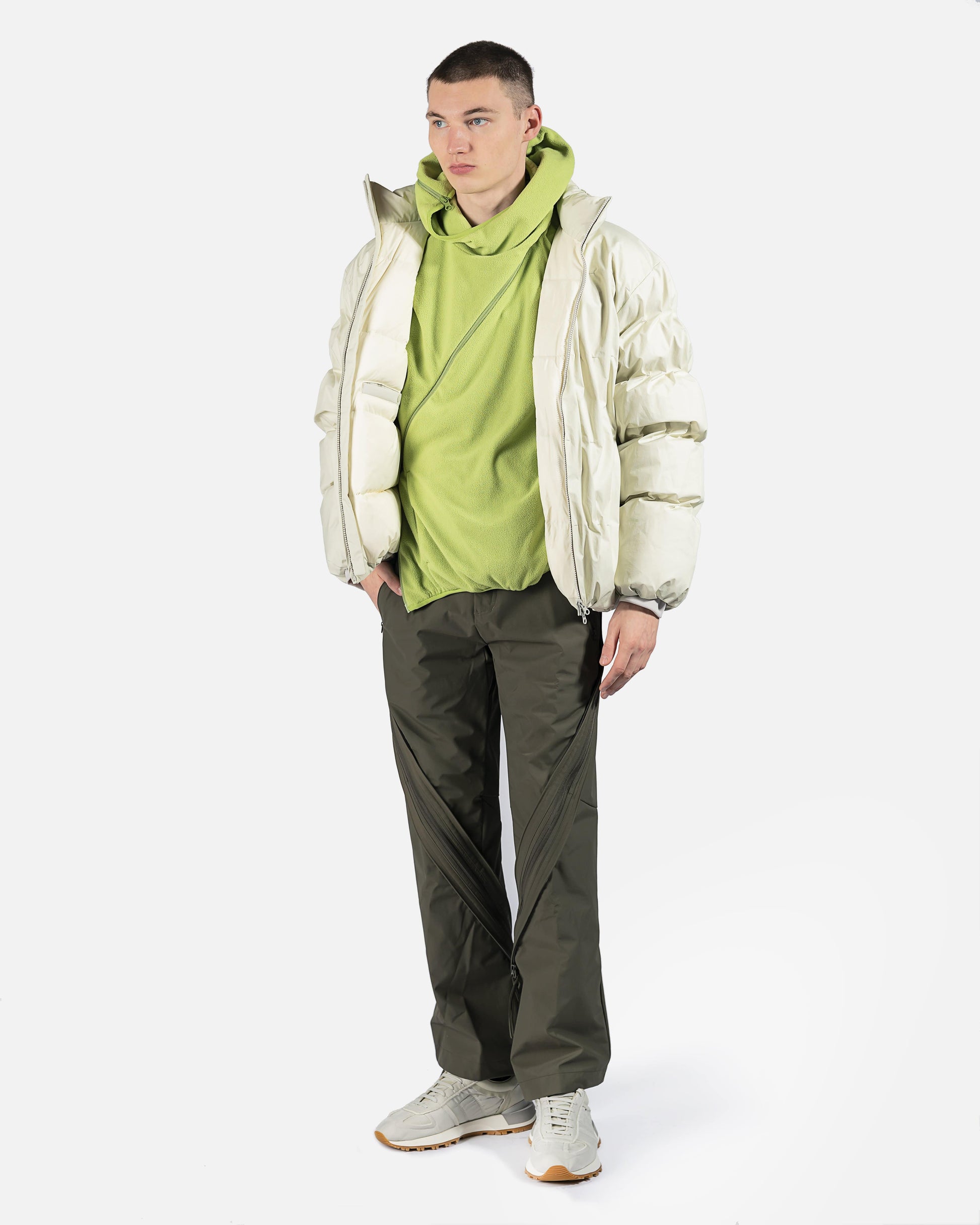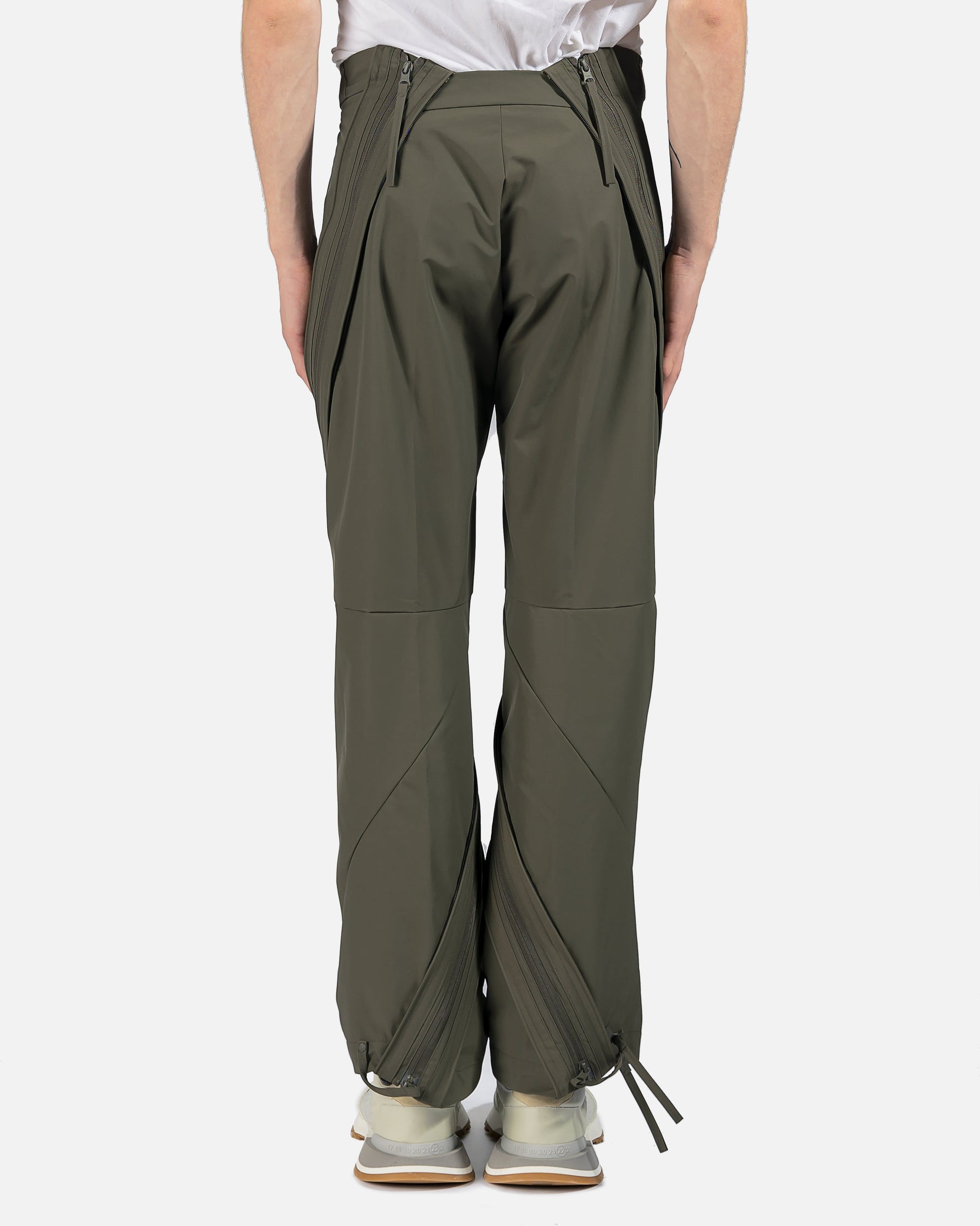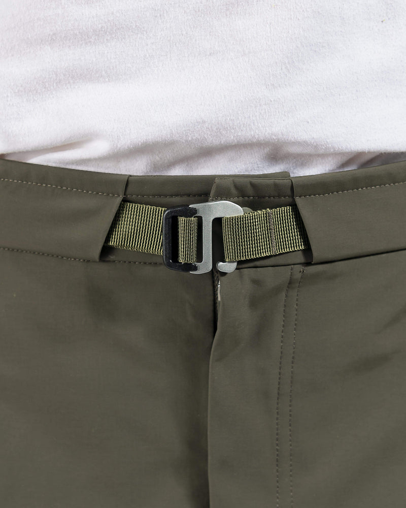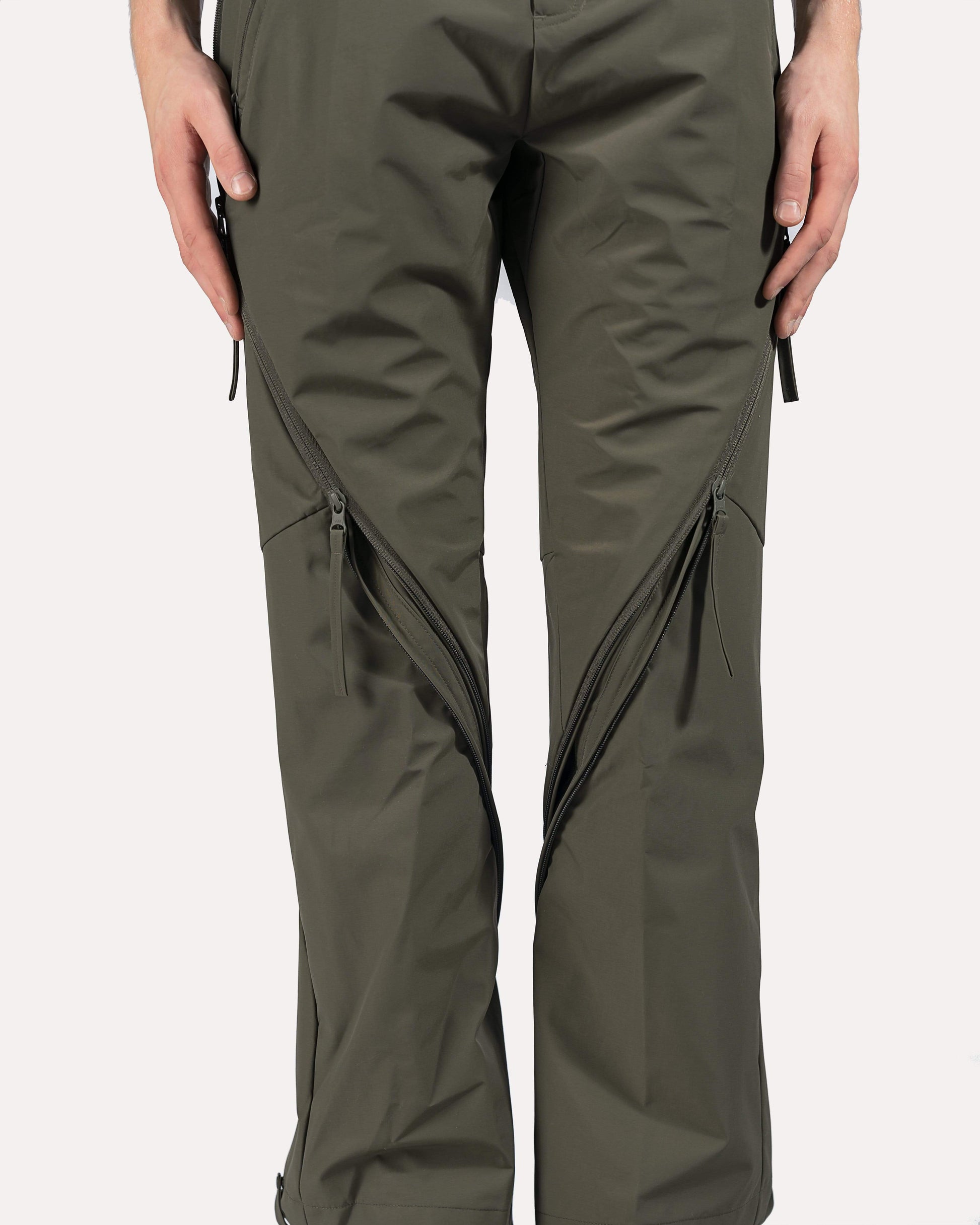 Water resistant and breathable taslan 3-layer fabric with convertible and fittable YKK 2-way zipper detailing throughout the whole pants with spiral shape. Press-stud and adjustable webbing belt with G hook buckle and 2 zippered pockets at front.
