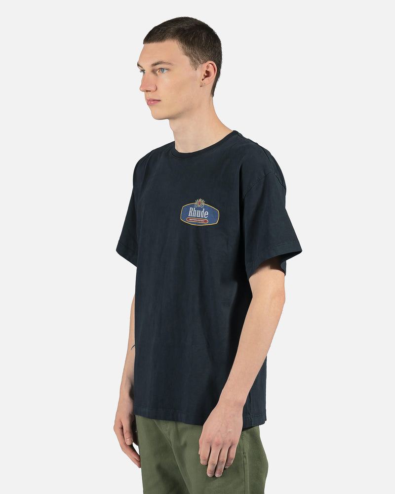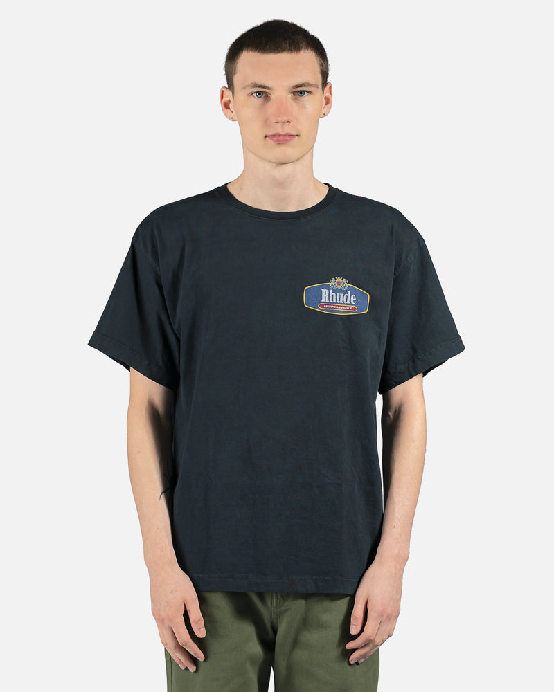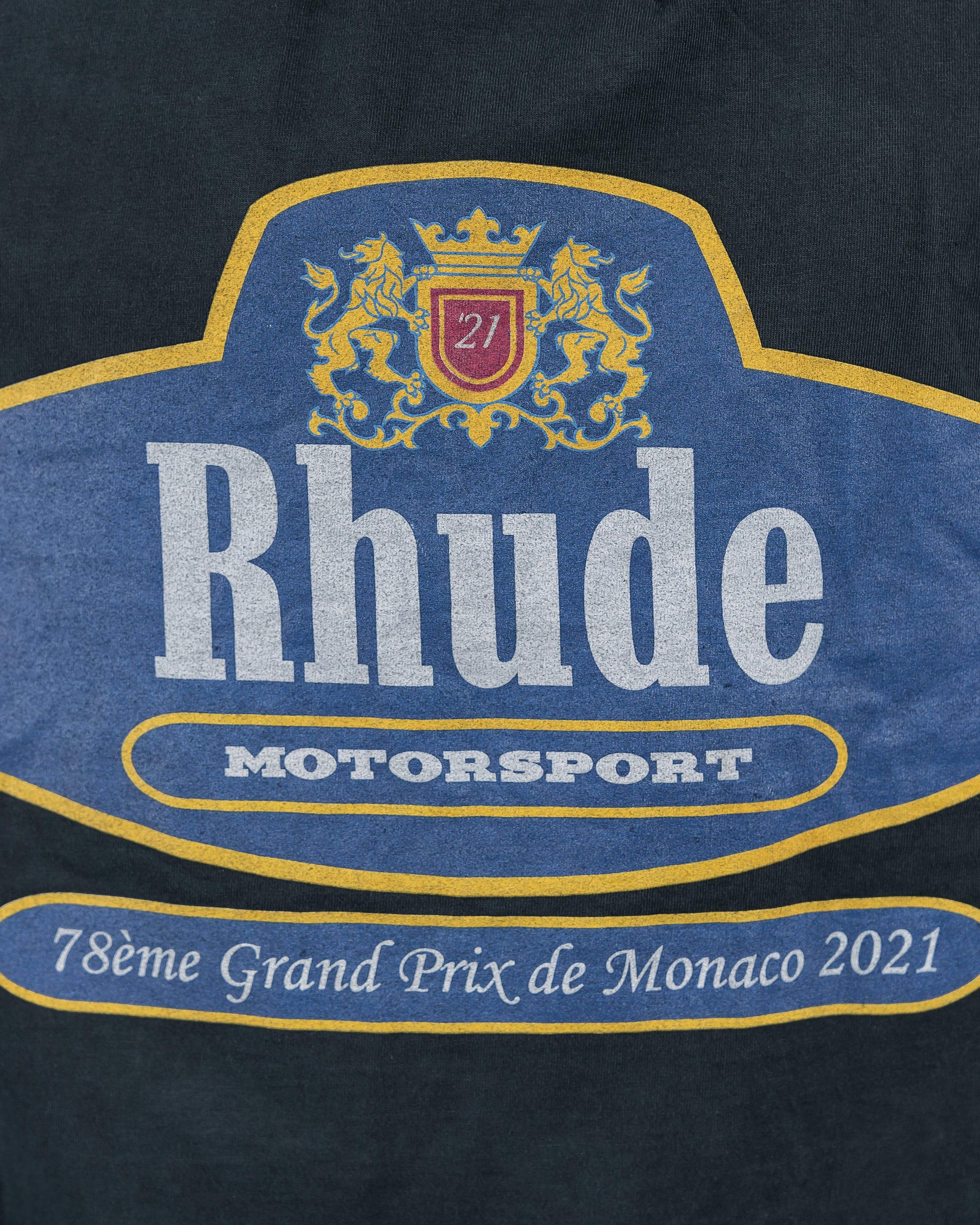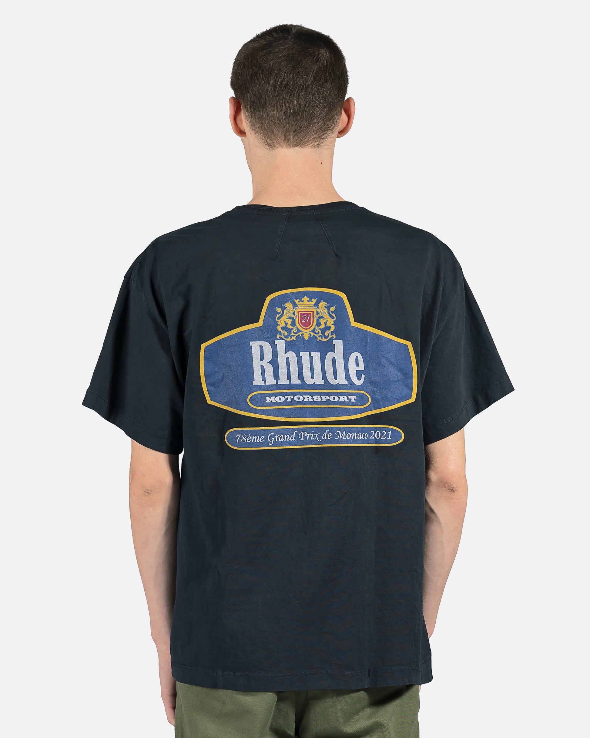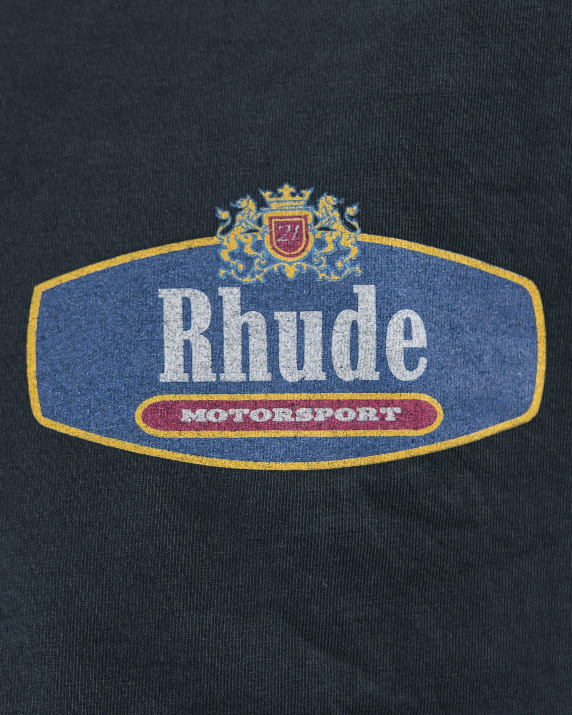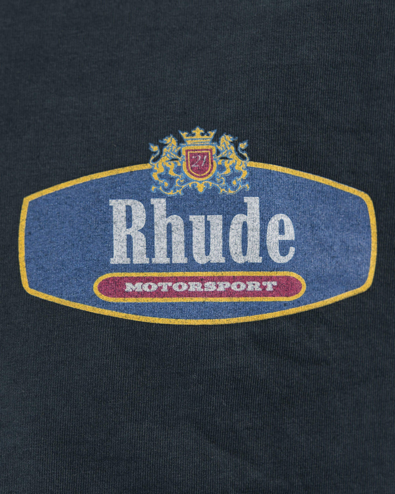 Rhuigi Villasenor continues to express his love for American motorsport culture with this Rhude Racing Crest T-Shirt. A custom-fit piece, this style features a vintage wash and printed graphic art.