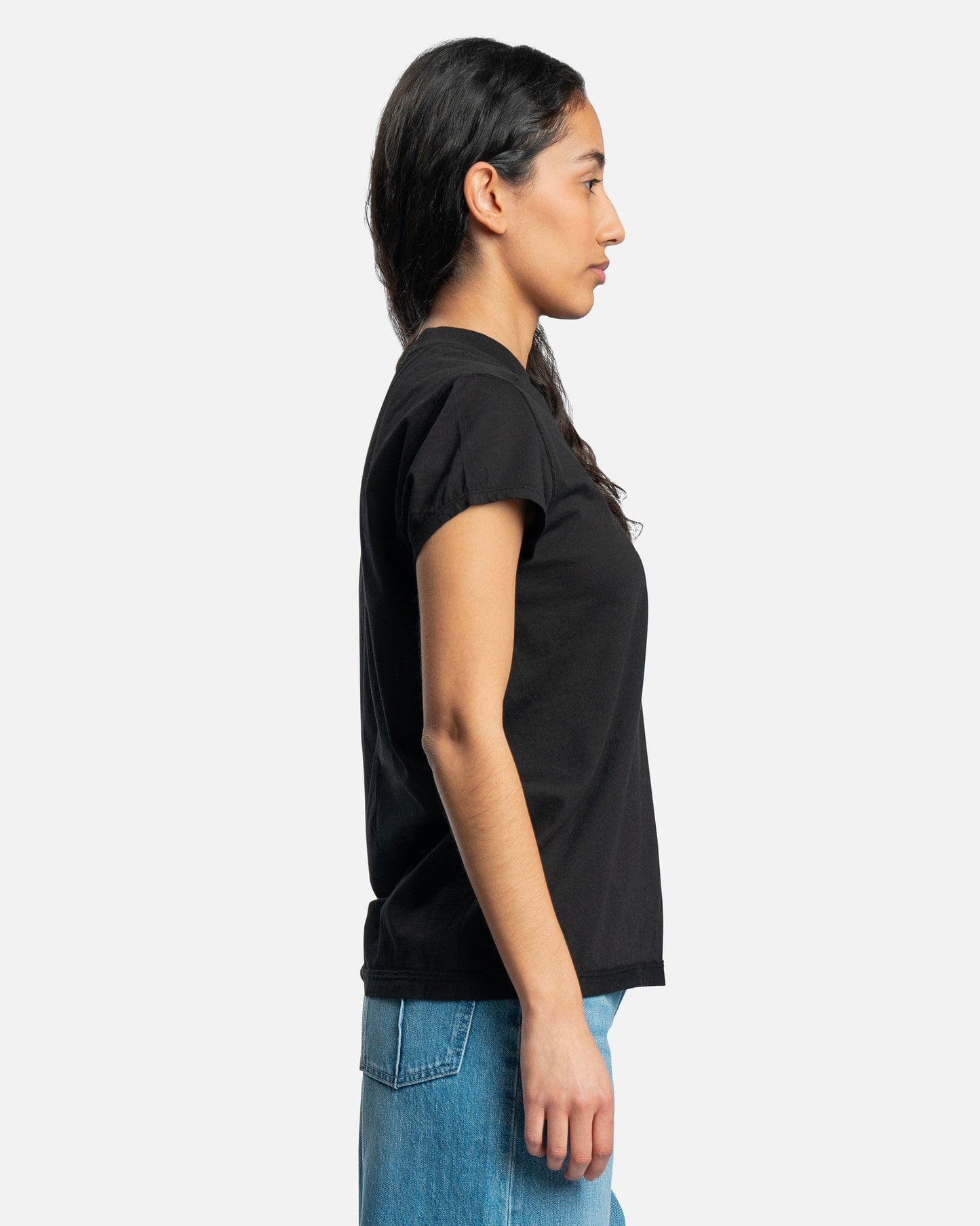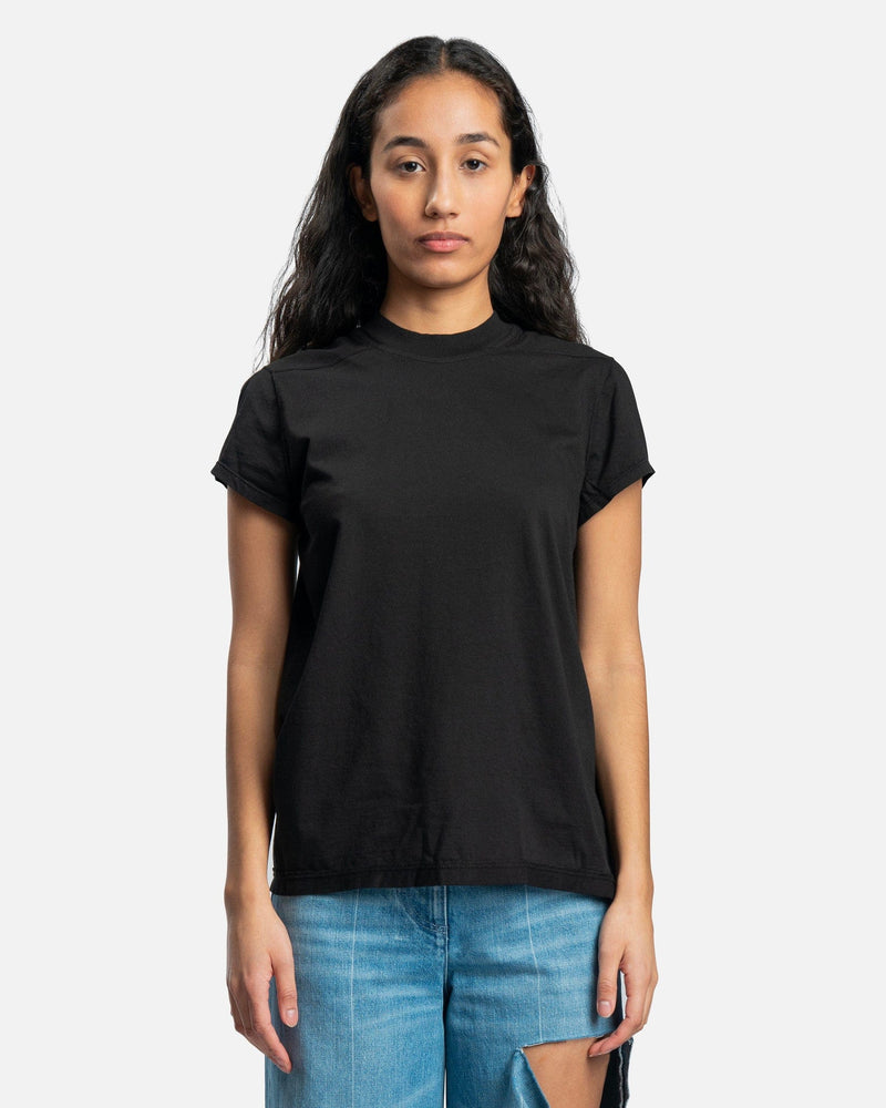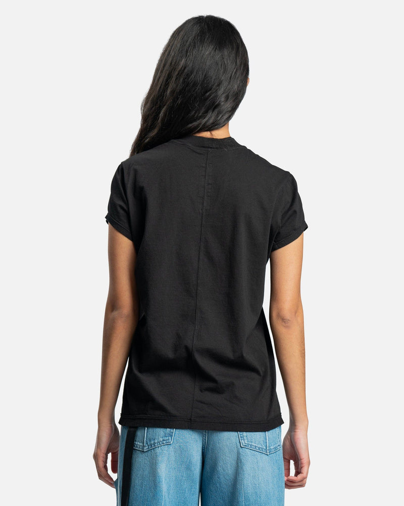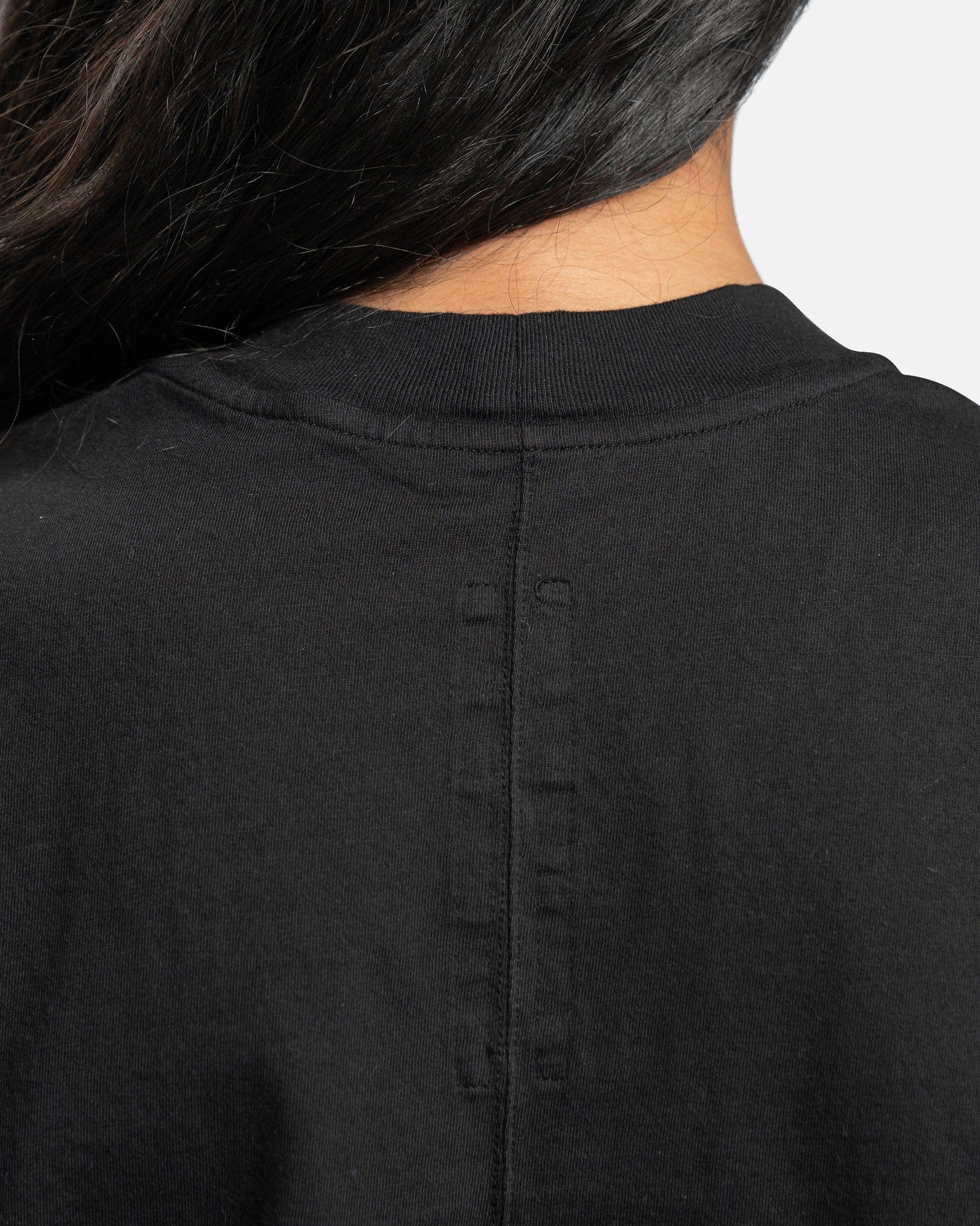 Rick Owens DRKSHDW women’s level t-shirt in black. This short sleeved shirt features a crew neckline and center seam down the back.
