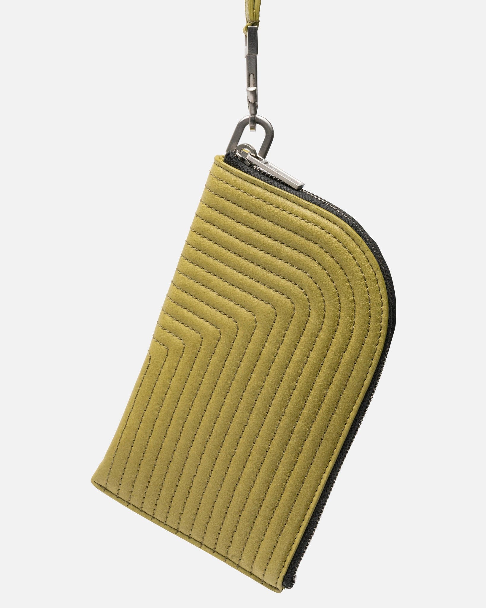 Rick Owens stitch detail neck wallet in acid. This leather wallet features a detachable neck strap.