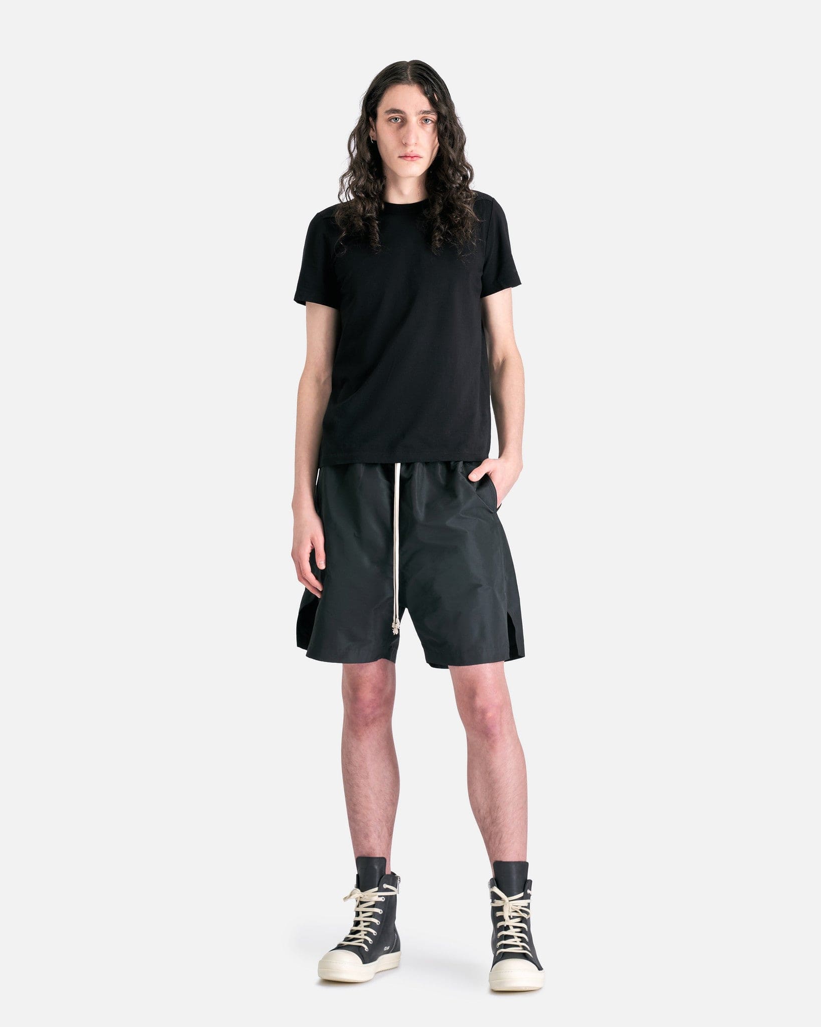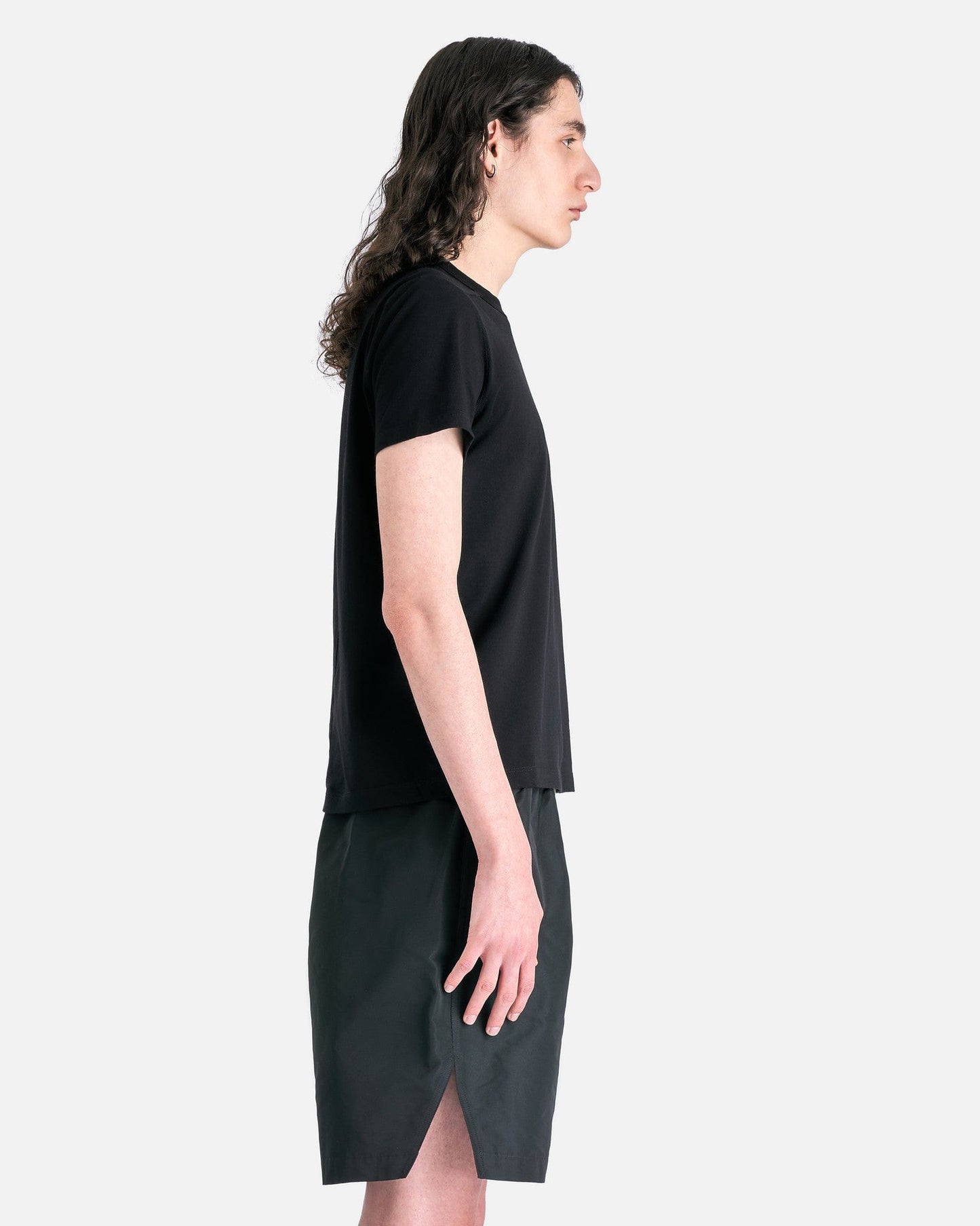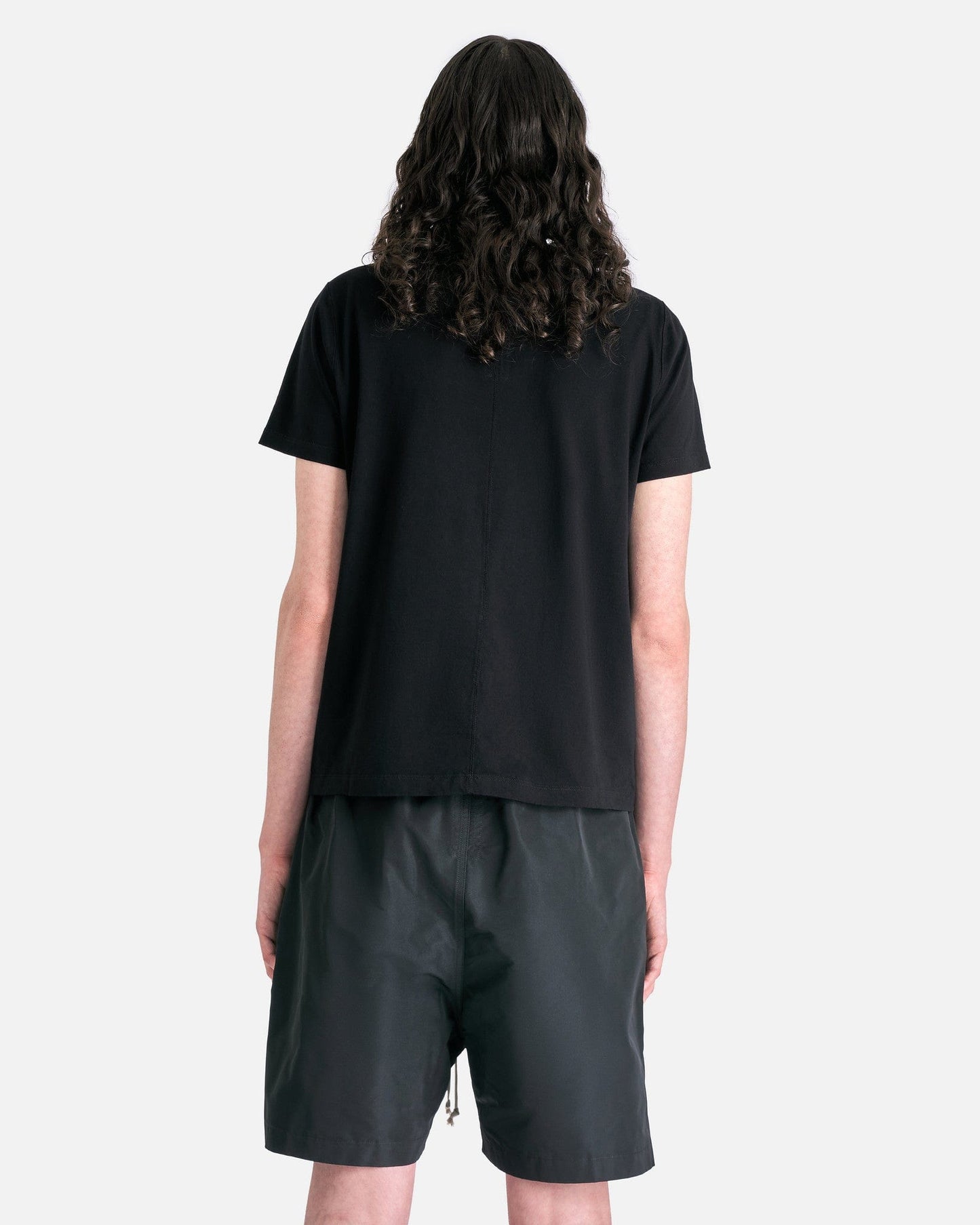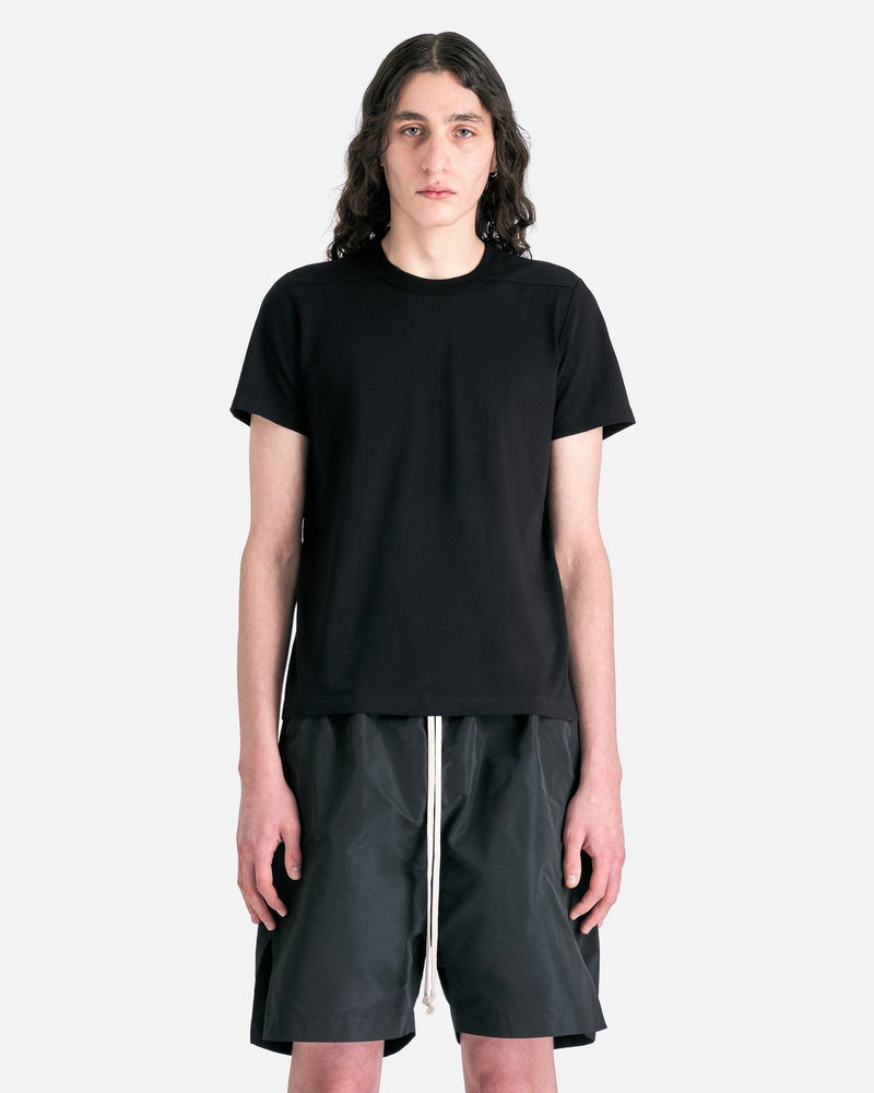 Rick Owens SS24 Lido men's short sleeve t-shirt in black. This shirt features a hip-length cut, level seam details on the shoulders and single seam on the back.