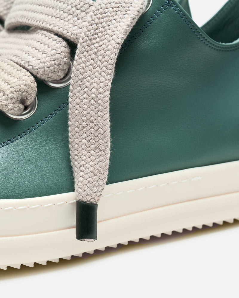 Rick Owens SVRN Exclusive Jumbo Lace Low Sneaks in Mouthwash. These sneakers are created in collaboration with Rick Owens x SVRN. The full grain calf leather color way is a nod to the interiors patina of SVRN's San Fransisco location. These sneakers feature a jumbo lace-up closure, toe cap, leather lining and shark-toothed bumper soles.