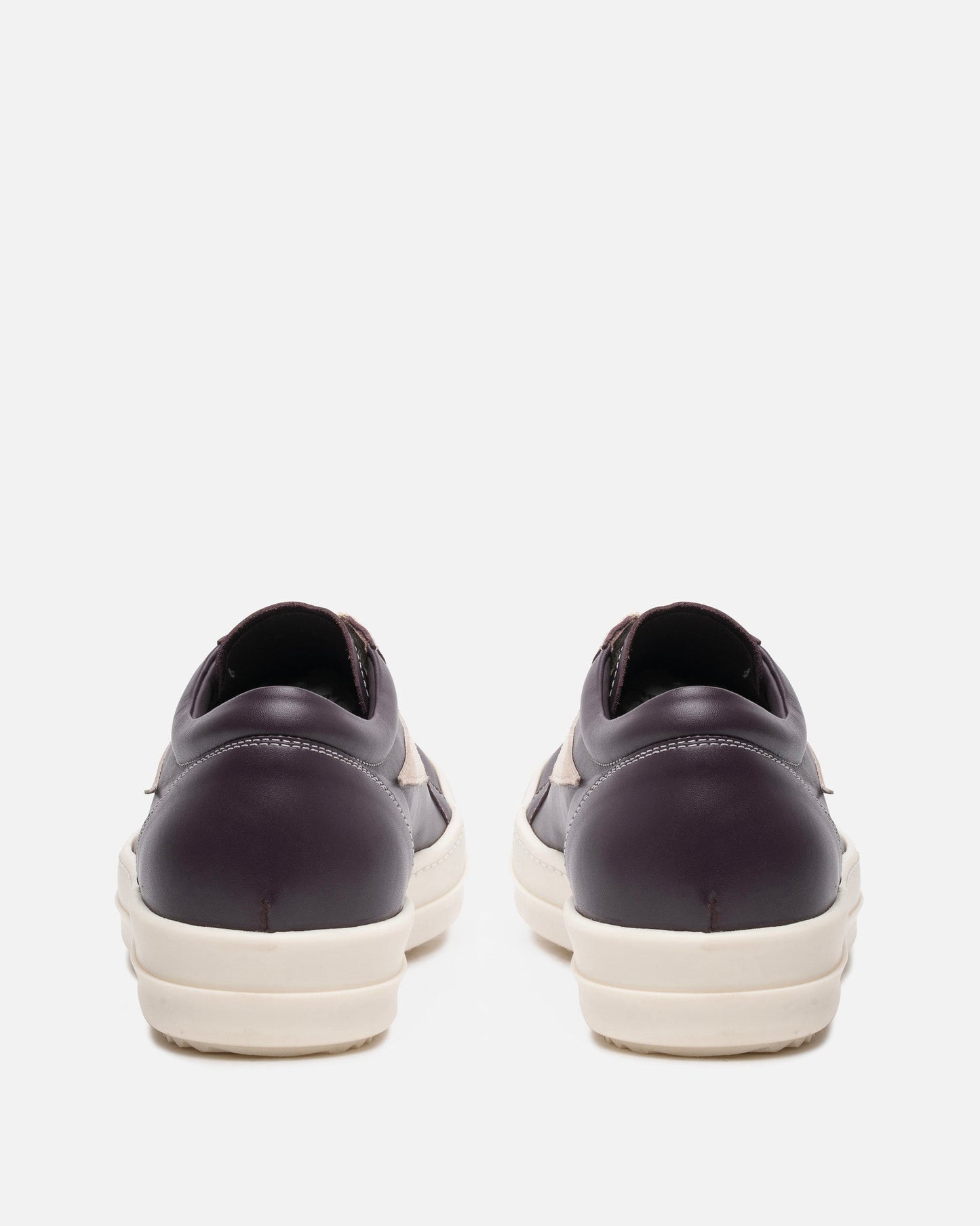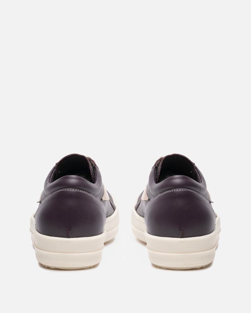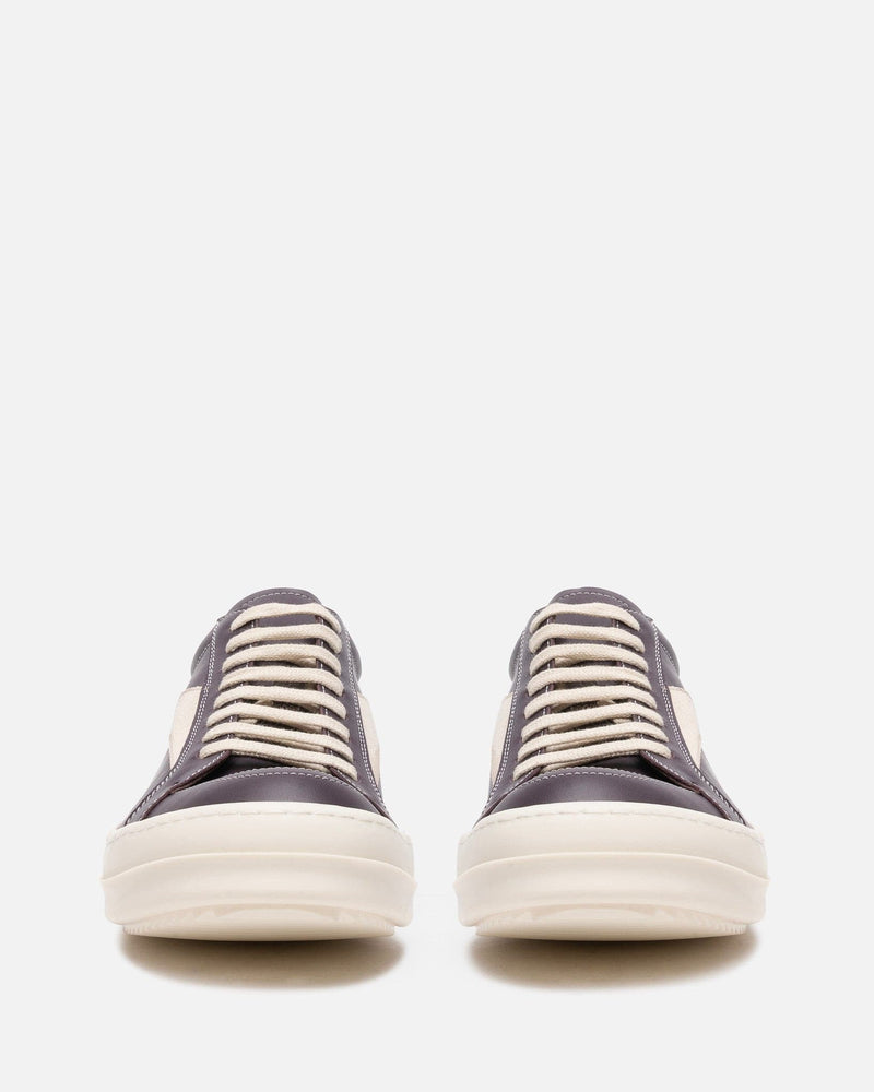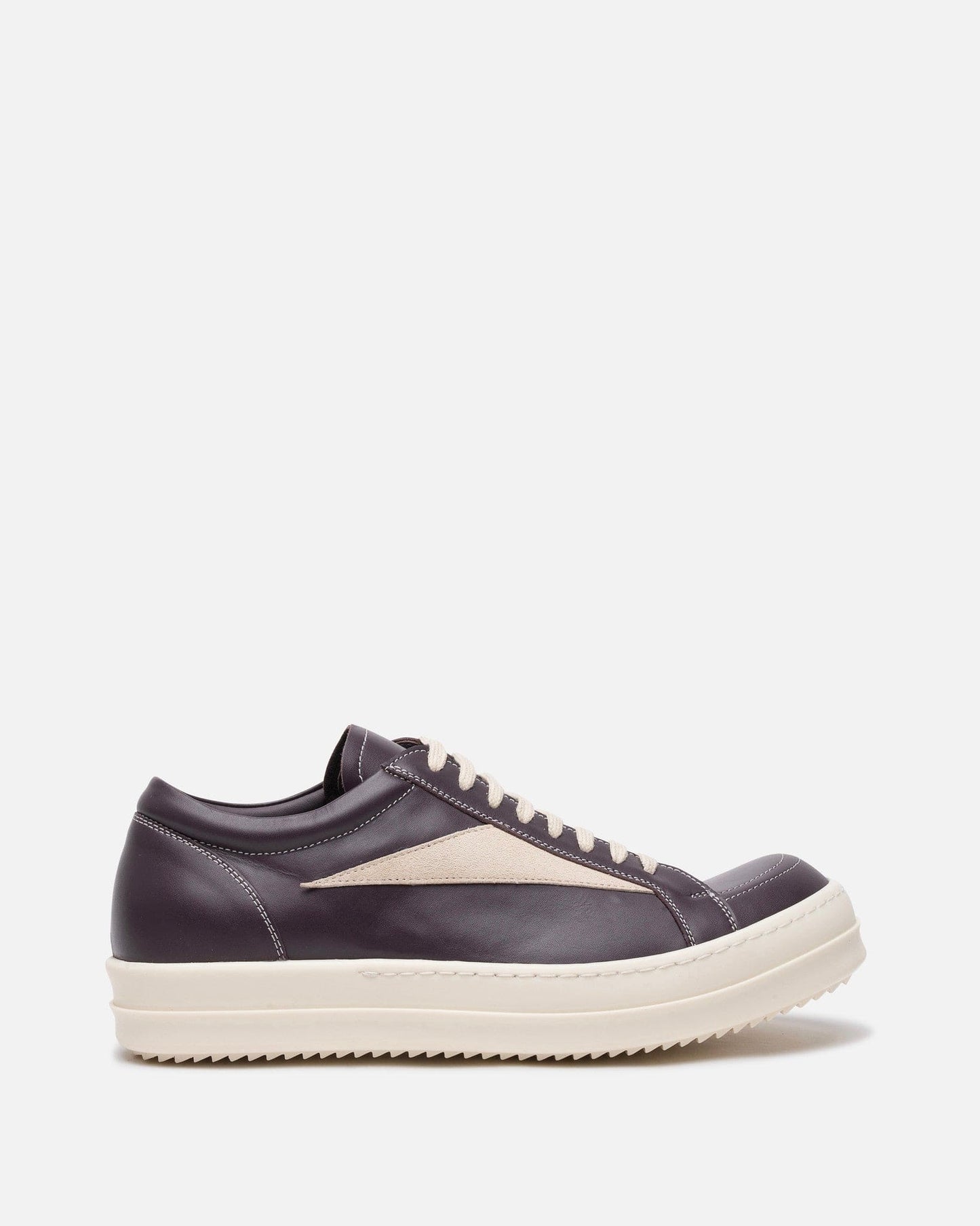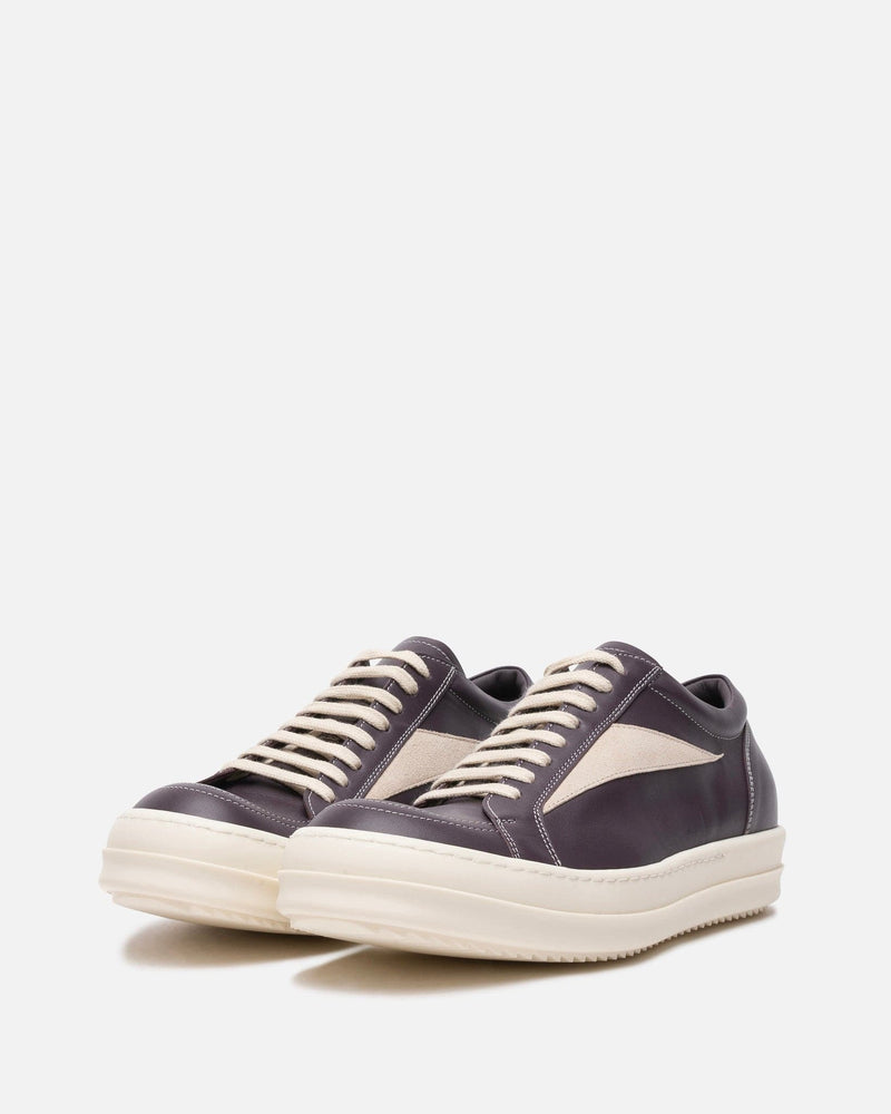 Rick Owens FW23 Luxor men's vintage sneakers in purple and milk. These sneakers feature a leather upper with front lace closure in milk.