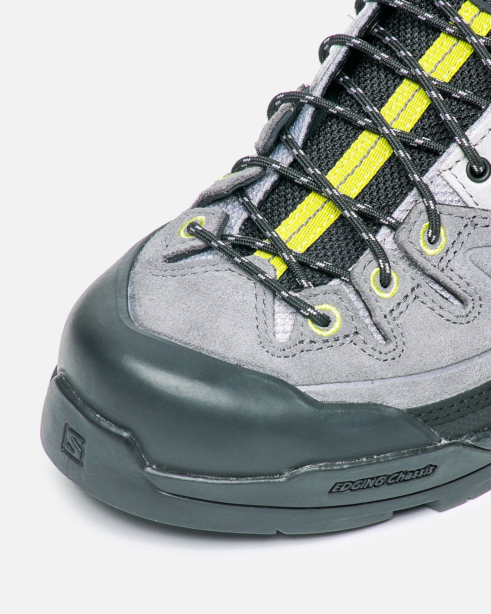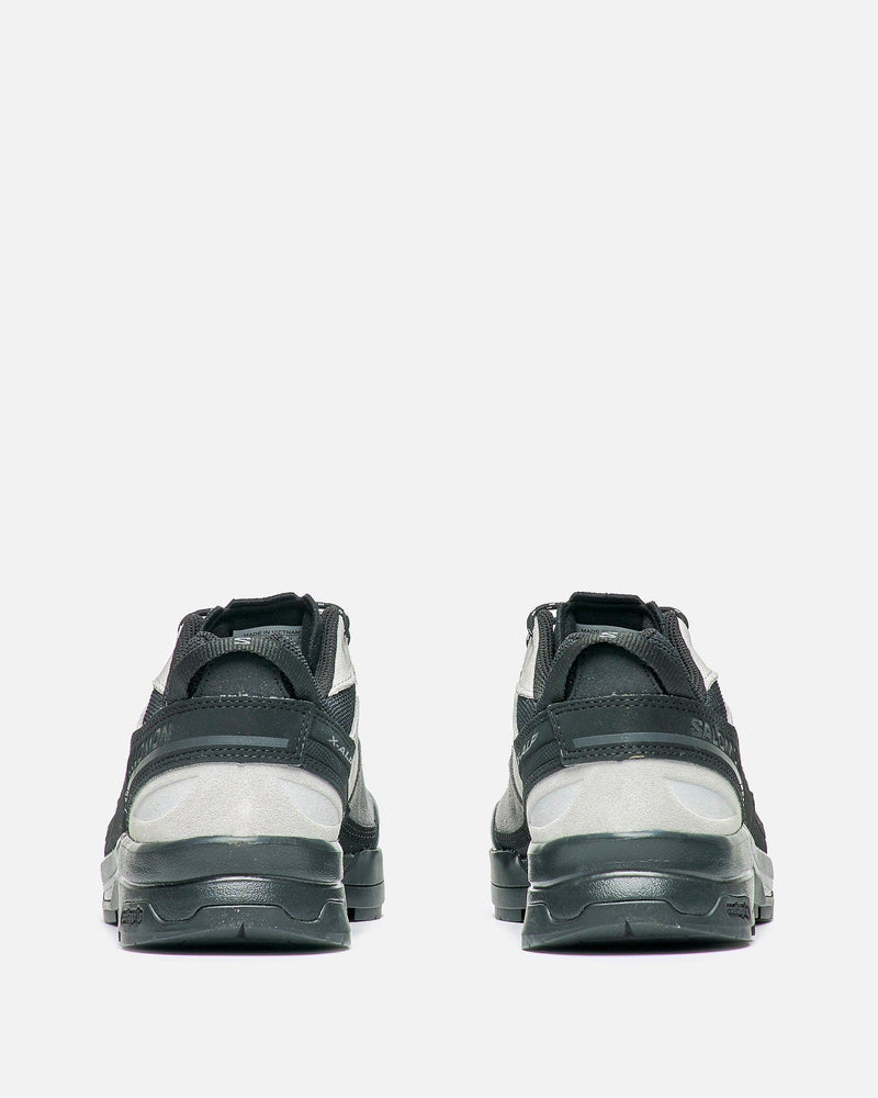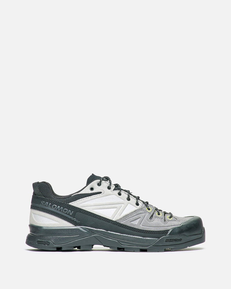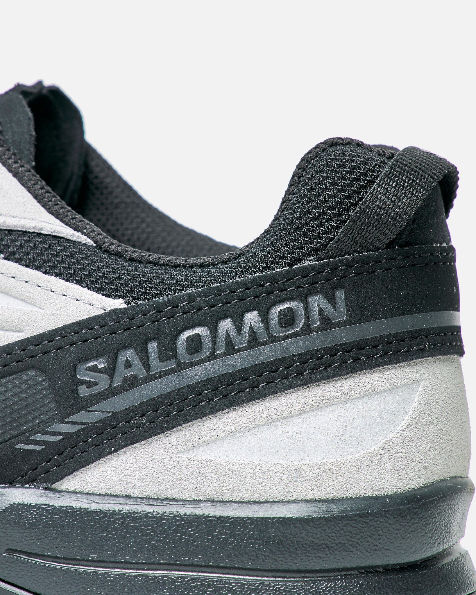 Salomon X-ALP Low LTR in Black/Castle Rock. These shoes feature a suede and canvas upper, rubberized toe box, a stitched lateral power band, 3D Edging Chassis™ for lateral stability and a treaded sole.