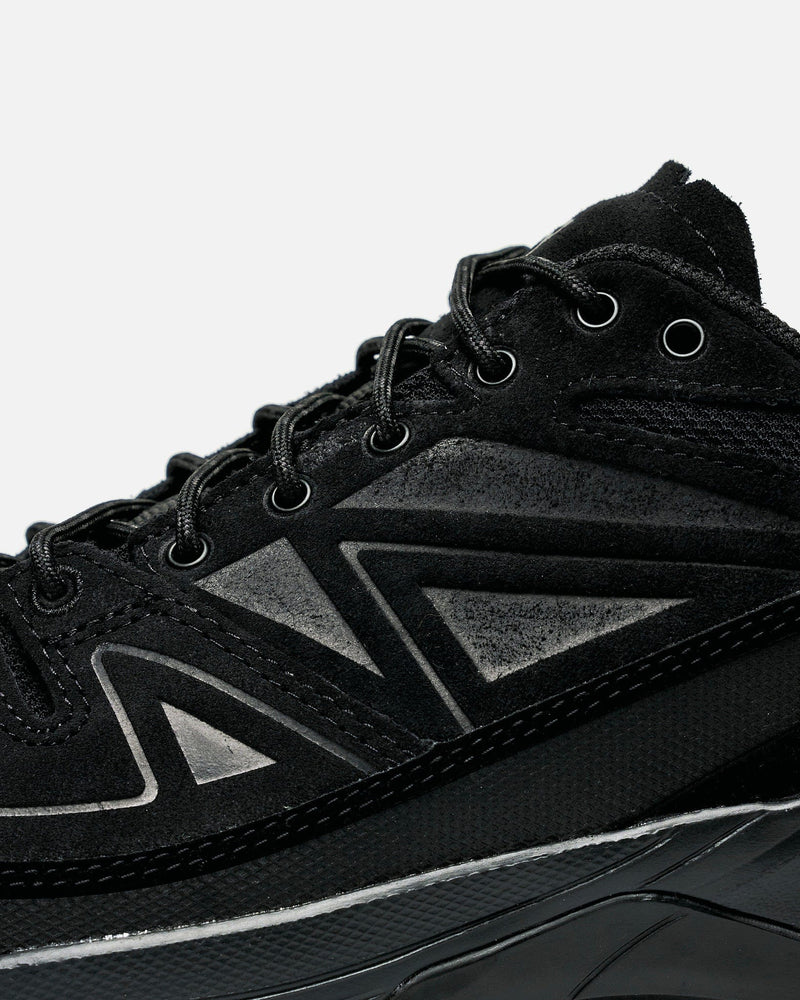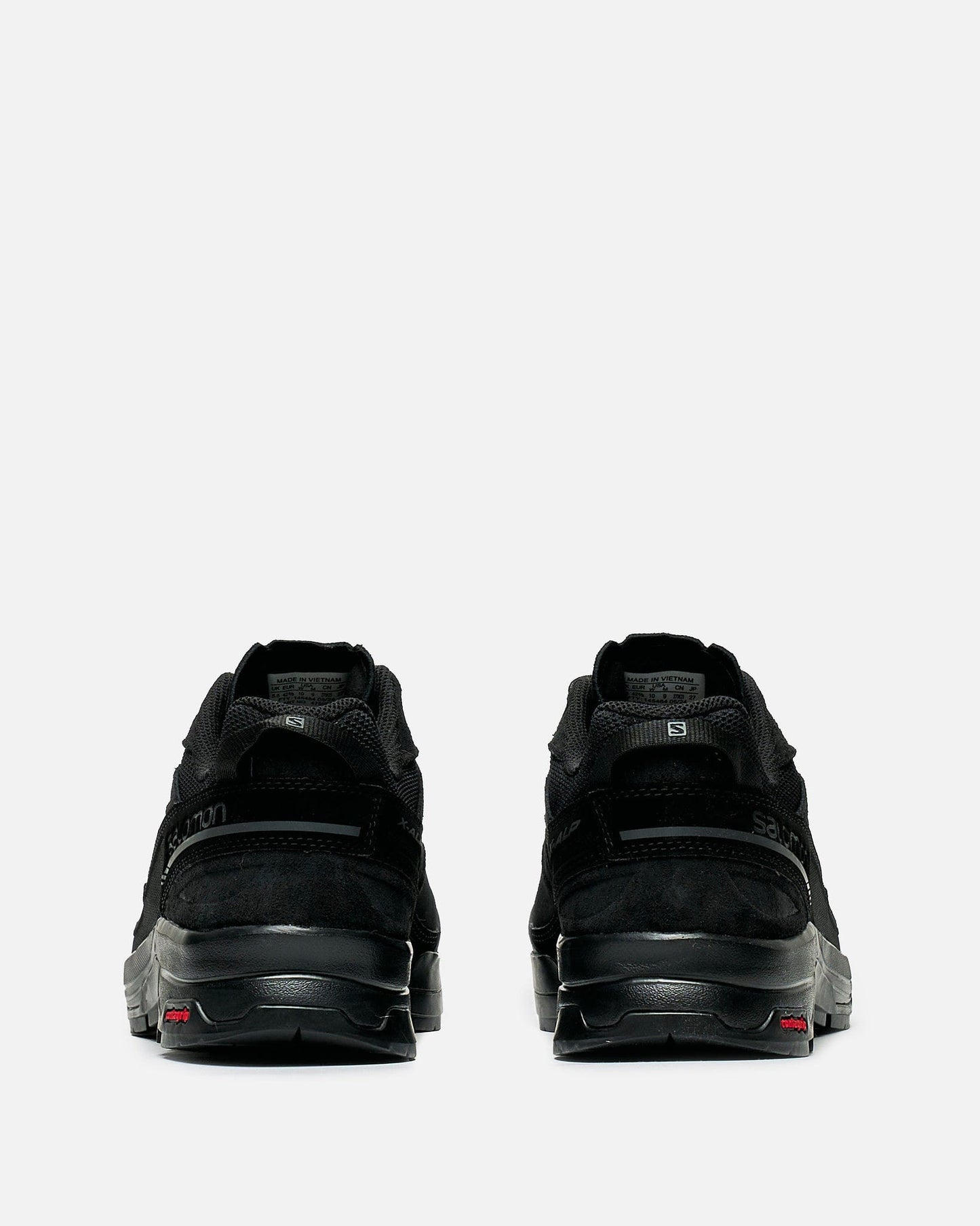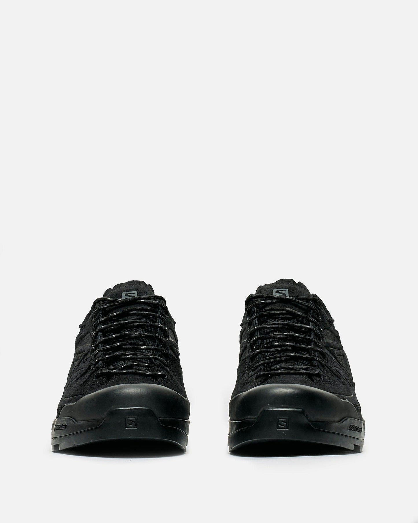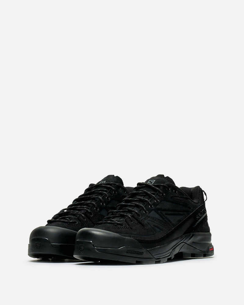 Salomon X-ALP LTR in Black/Asphalt. These shoes feature a suede and canvas upper, rubberized toe box, a stitched lateral power band, 3D Edging Chassis™ for lateral stability and a treaded sole.