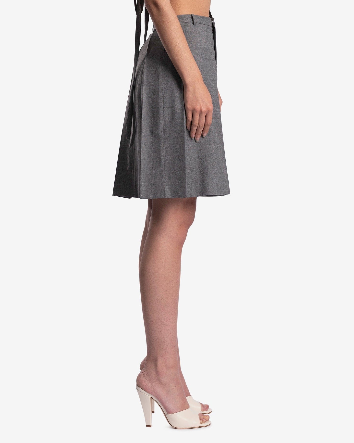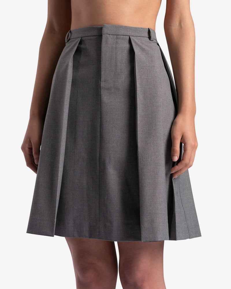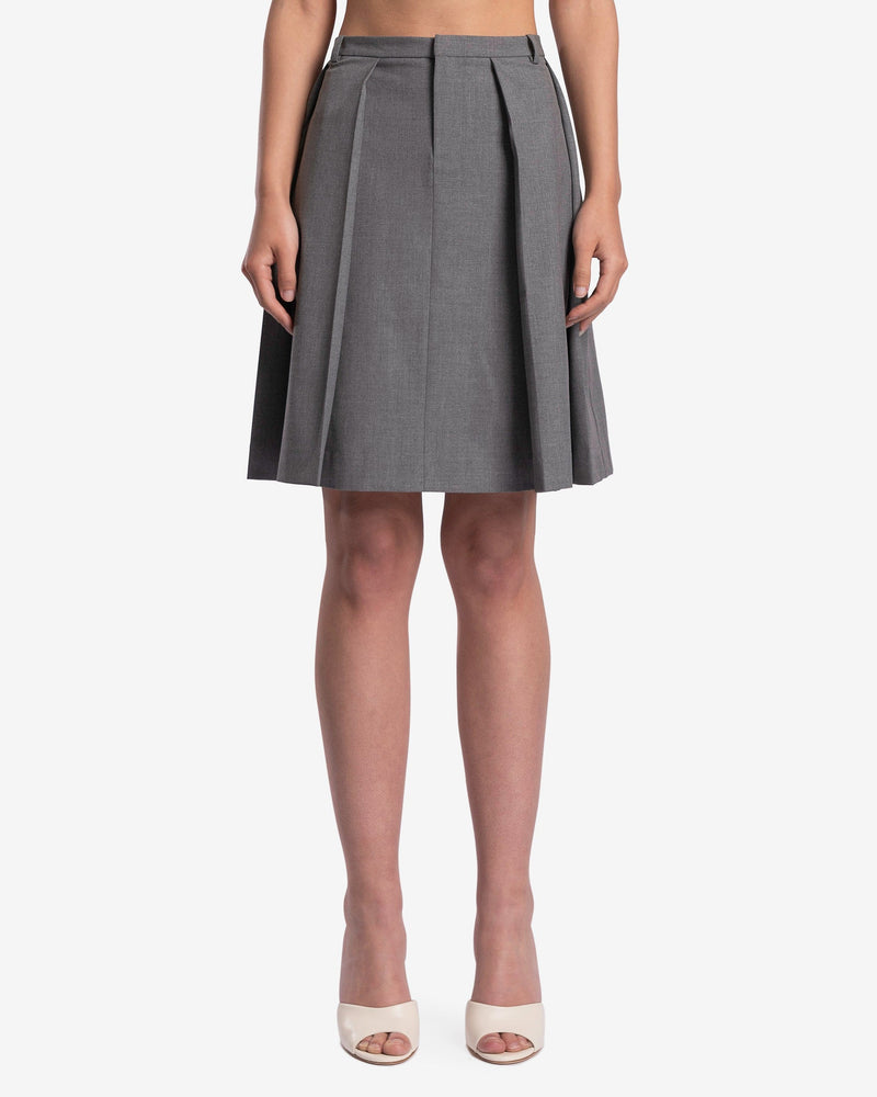 Sandy Liang knee-length midi skirt in grey melange with pleated construction throughout.