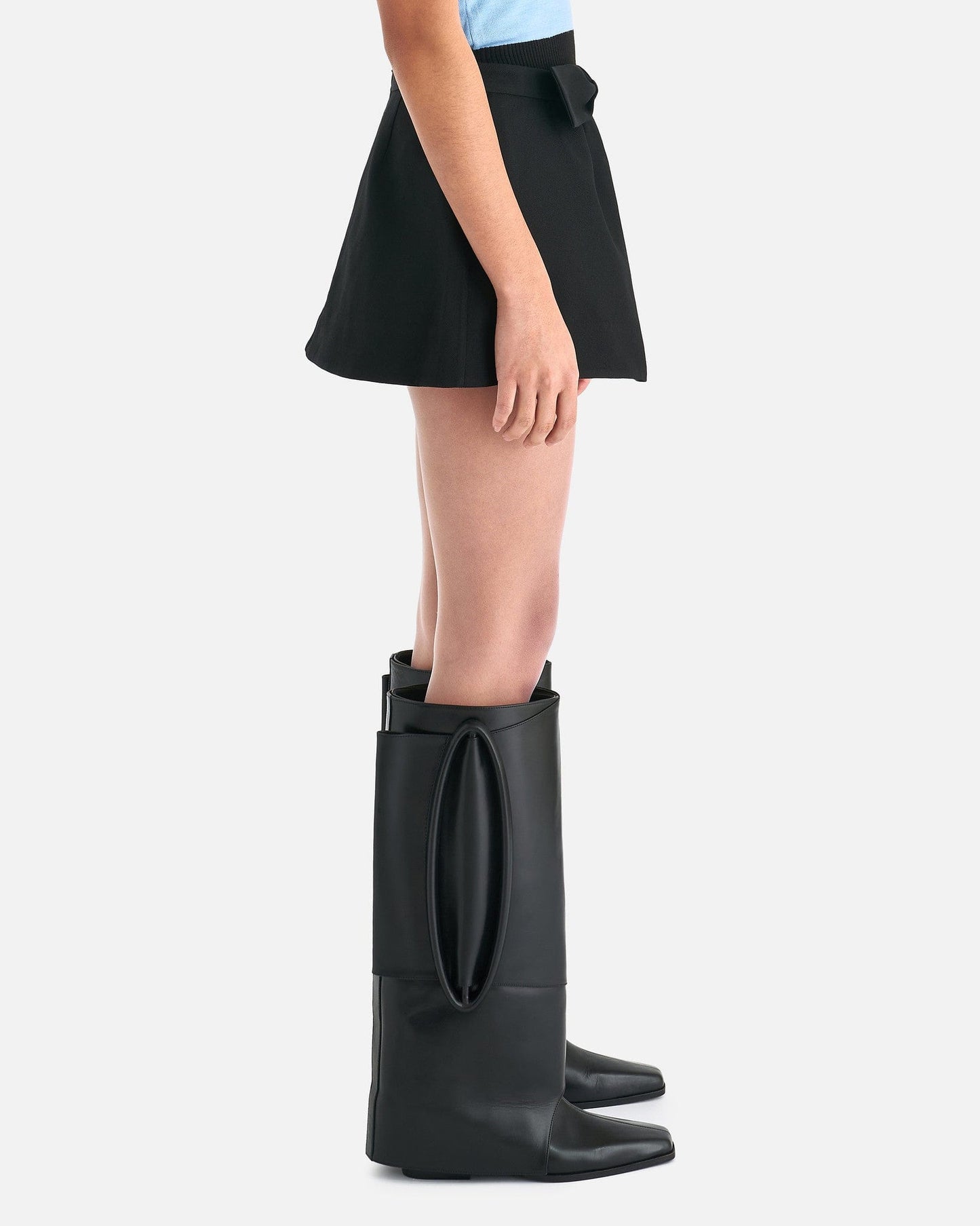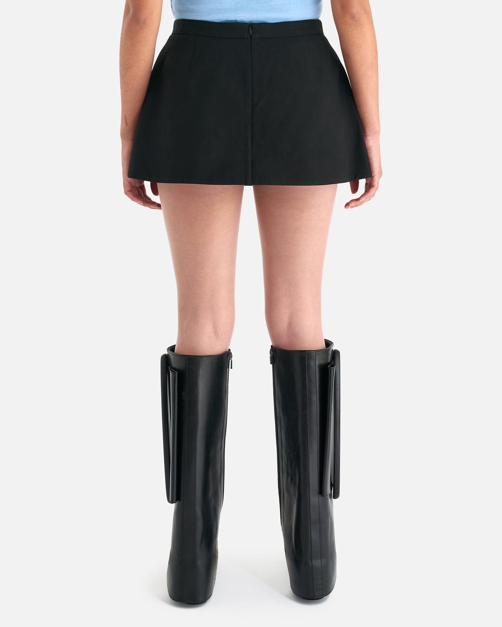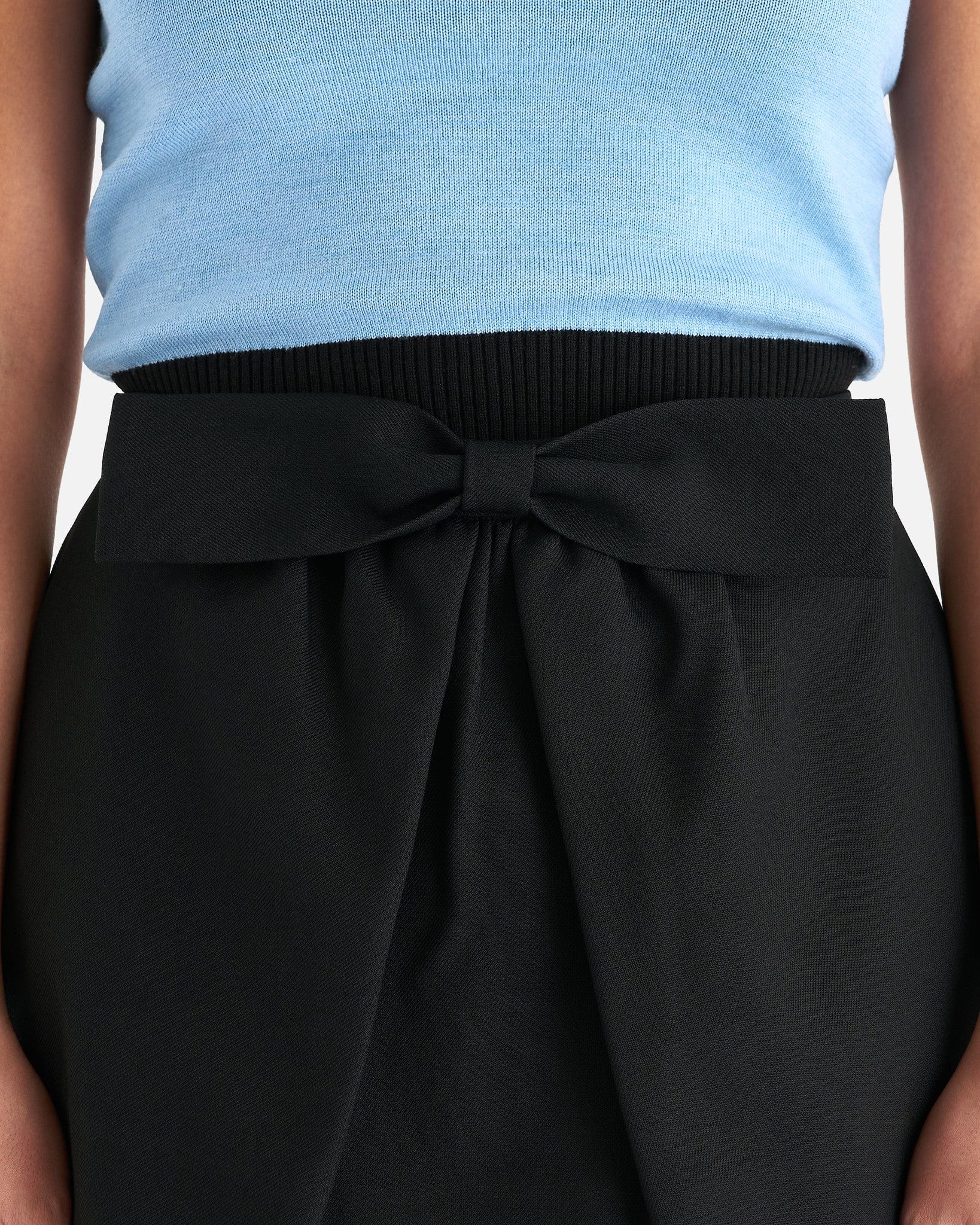 ShuShu/Tong women's bow detailed skirt in black. This mini skirt features a a bow at the waist and pleats along the front.