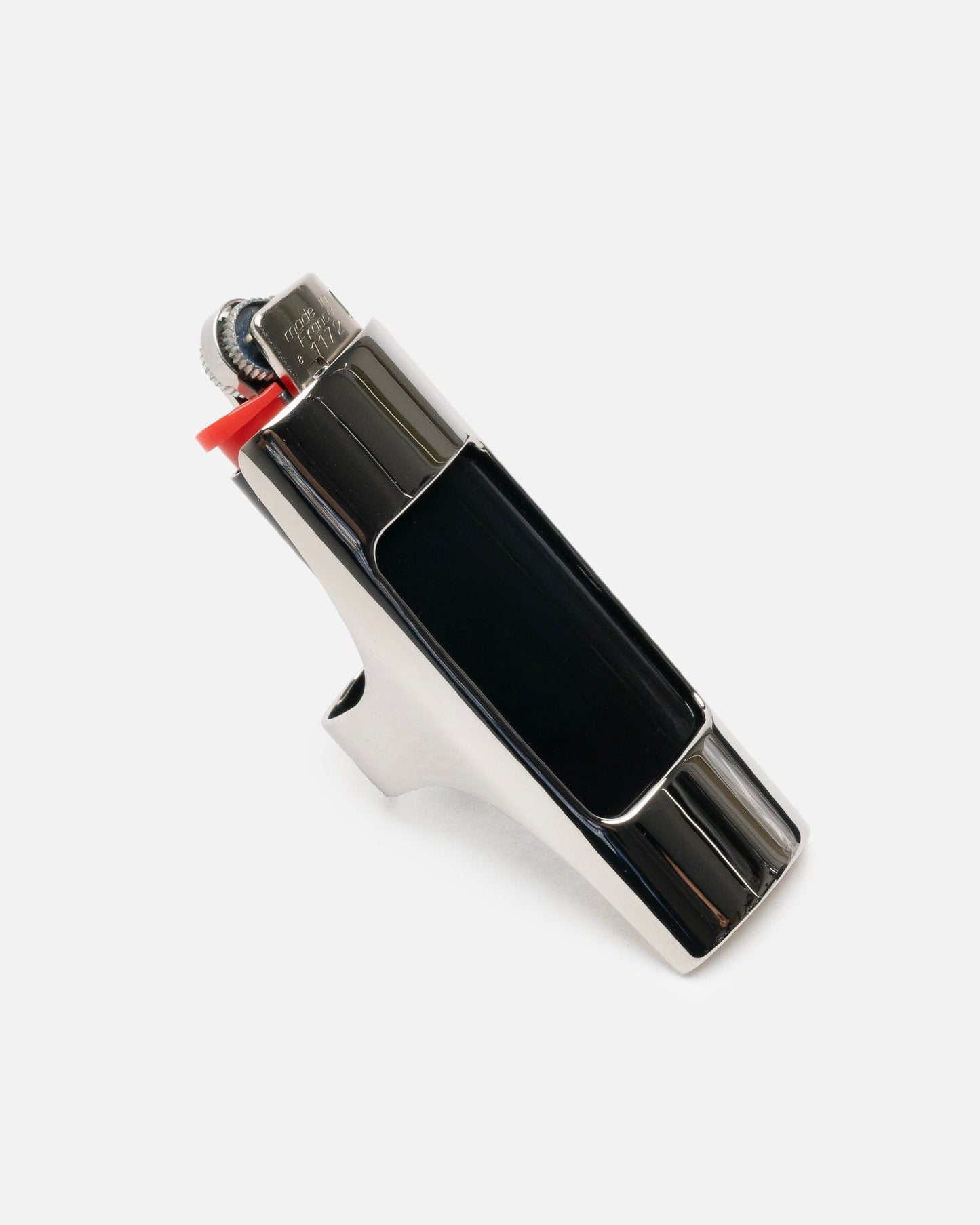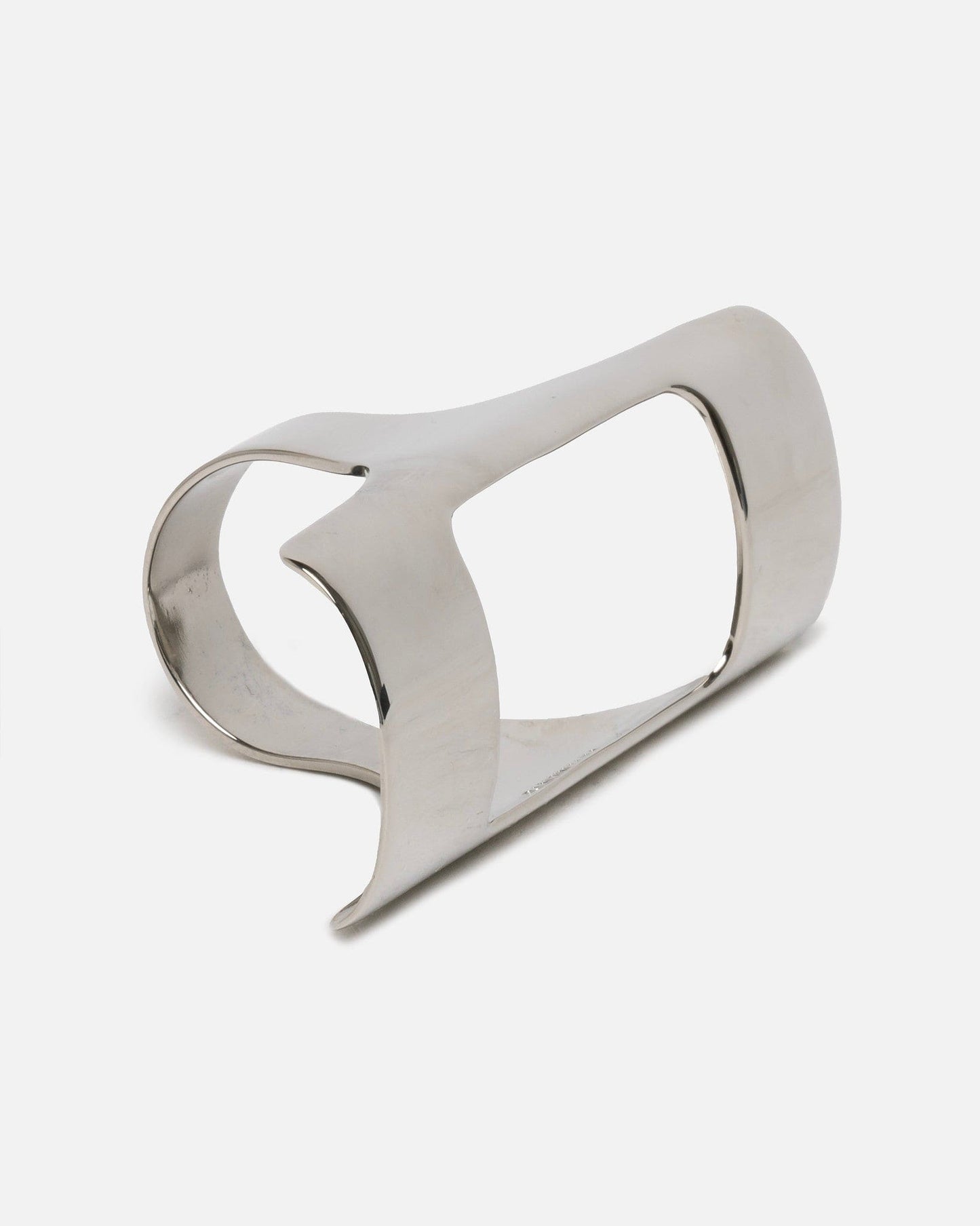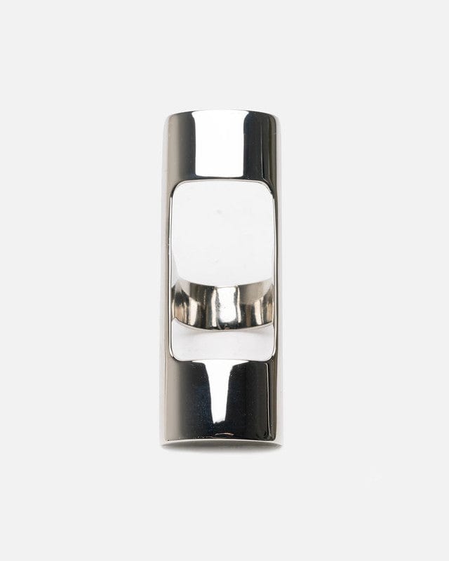 VETEMENTS lighter holder ring in silver. This ring has a cutout at the face for a lighter to fit into.