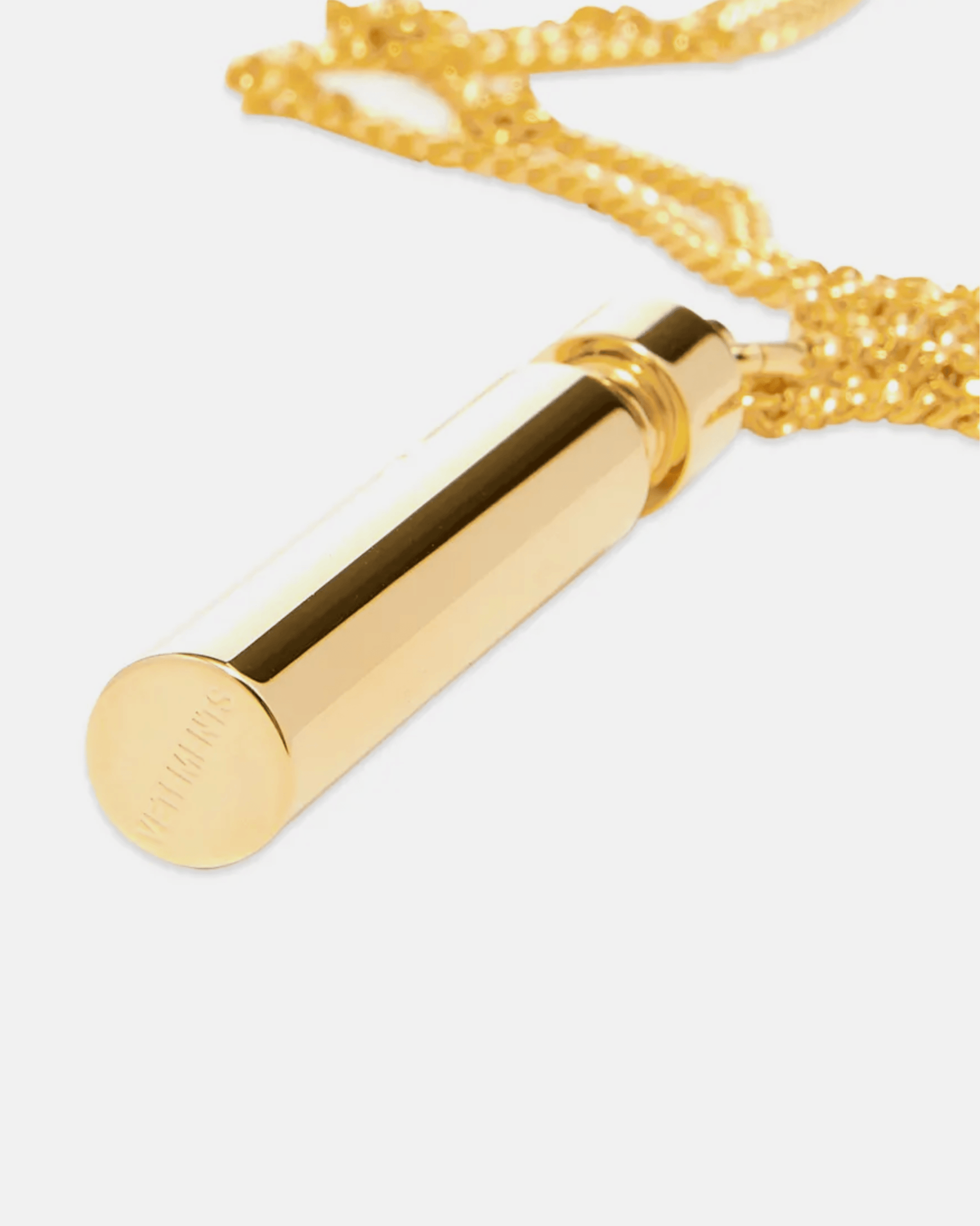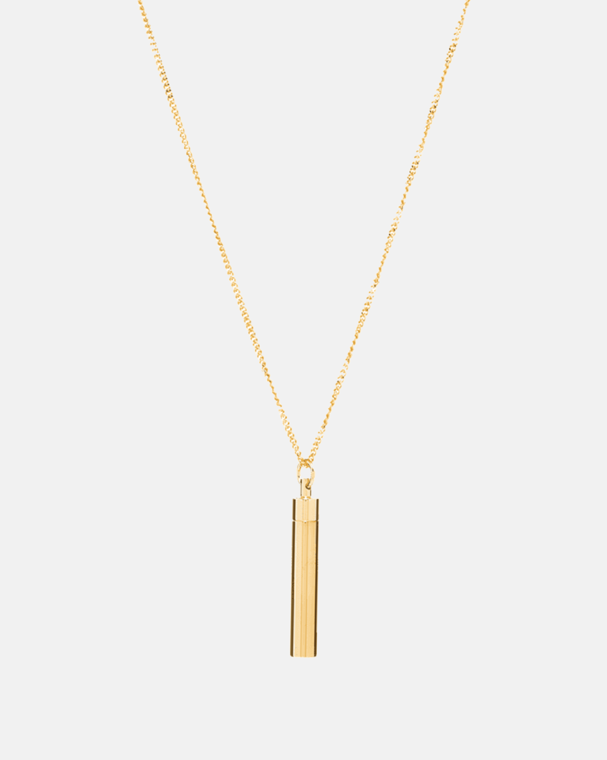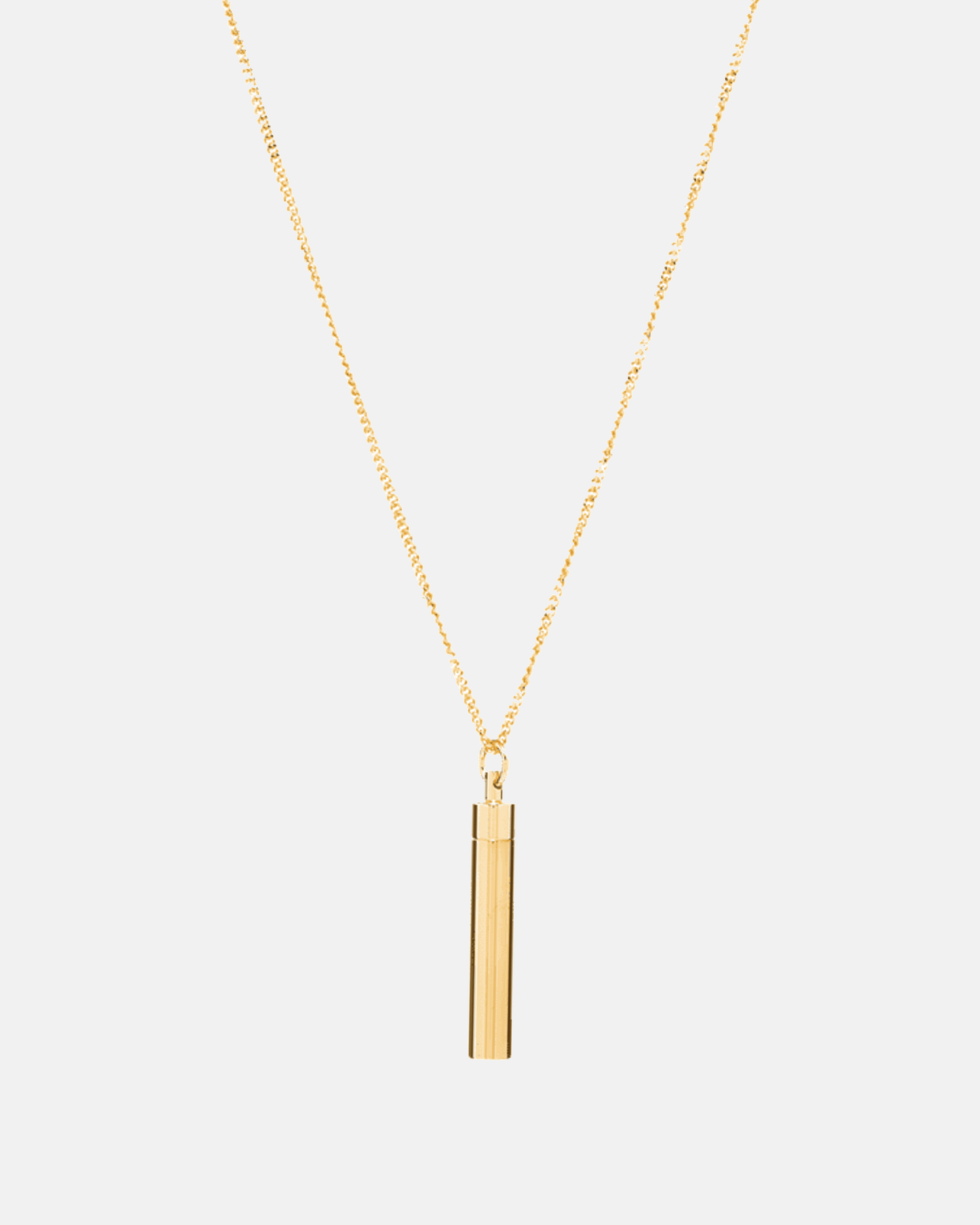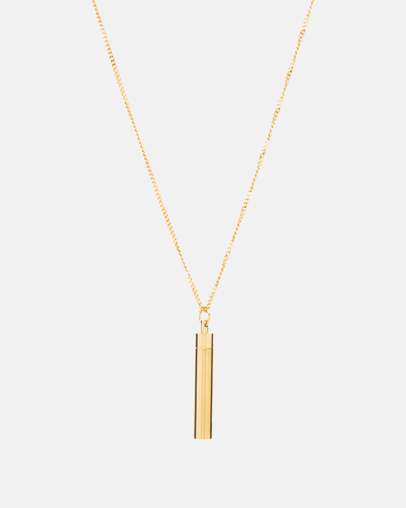 Curb chain necklace in gold-tone brass. Pendant at drop featuring concealed sculptural spoon hardware with screw-back fastening. Spring-ring fastening. Approx. 28" full length.