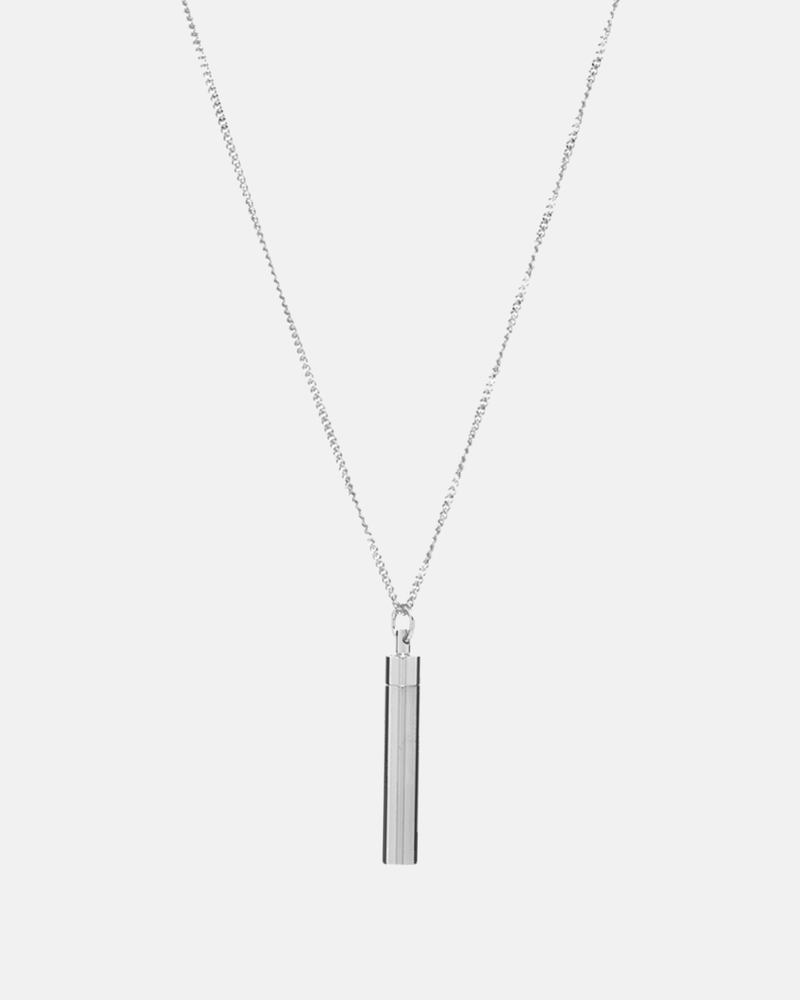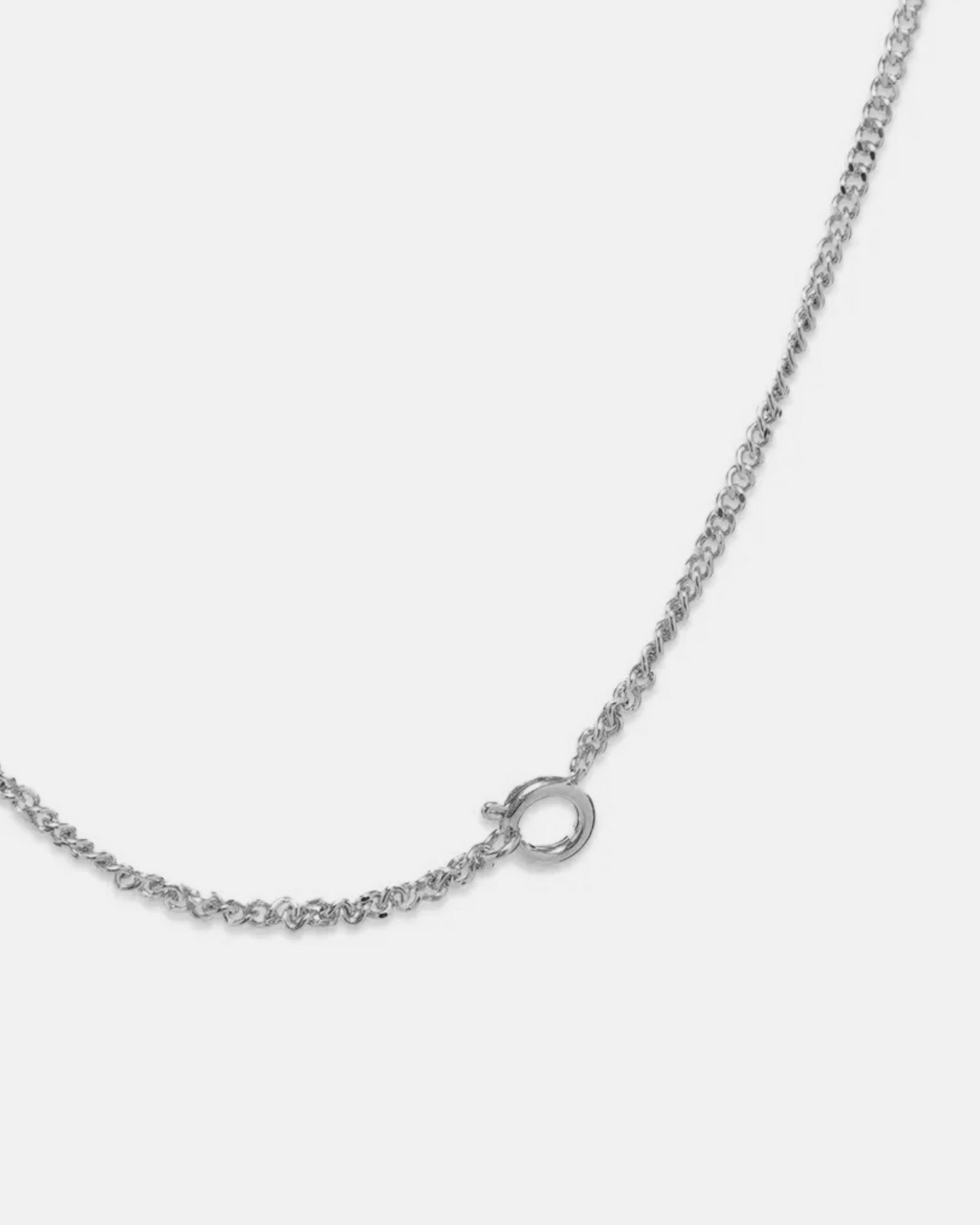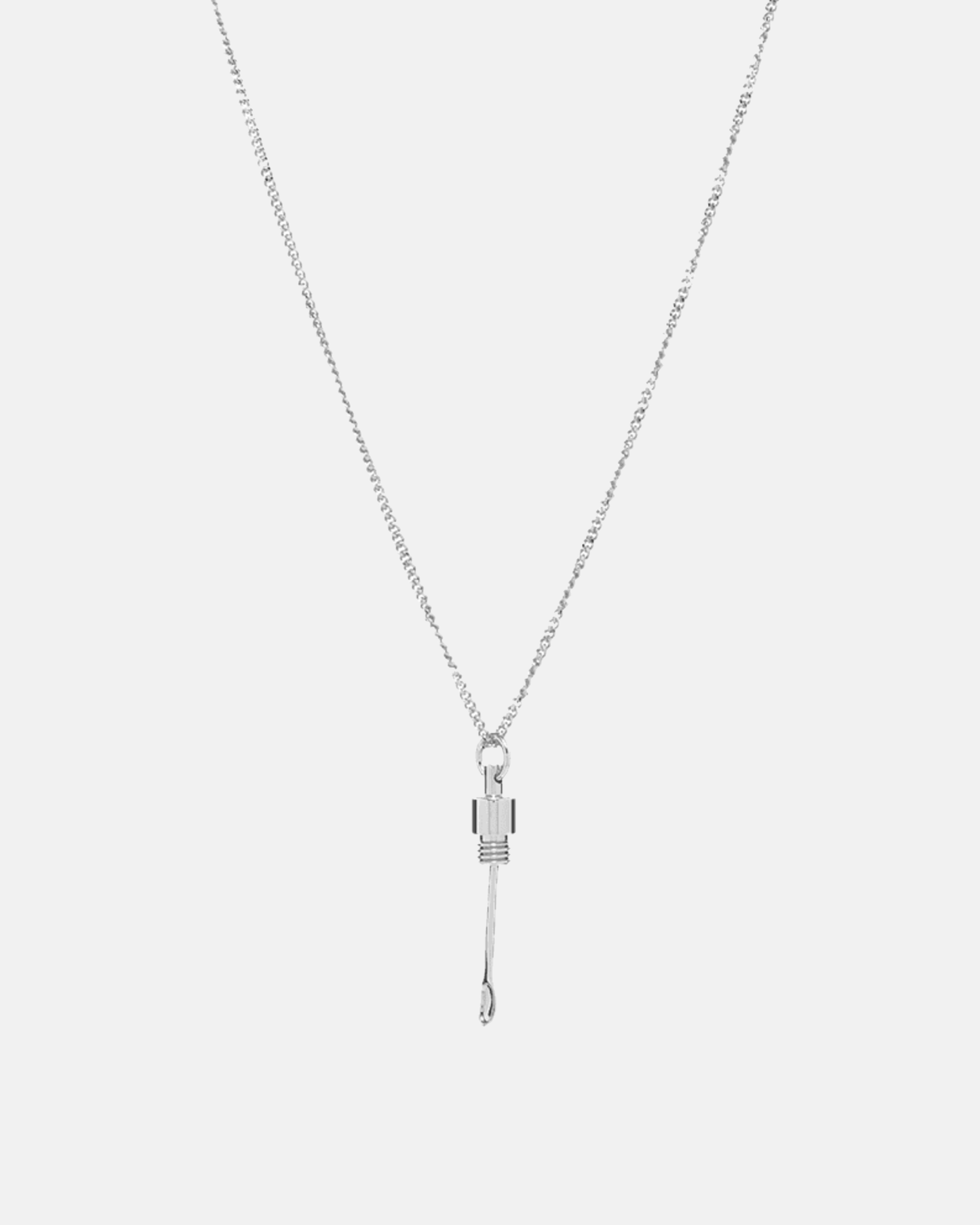 Curb chain necklace in silver-tone brass. Pendant at drop featuring concealed sculptural spoon hardware with screw-back fastening. Spring-ring fastening. Approx. 28" full length.