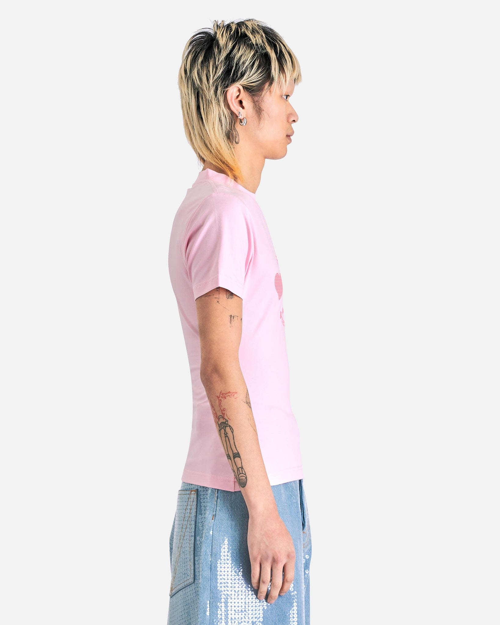 This shirt features a graphic at the front, embroidered logo at the back collar, ribbed crewneck, and a straight hem.