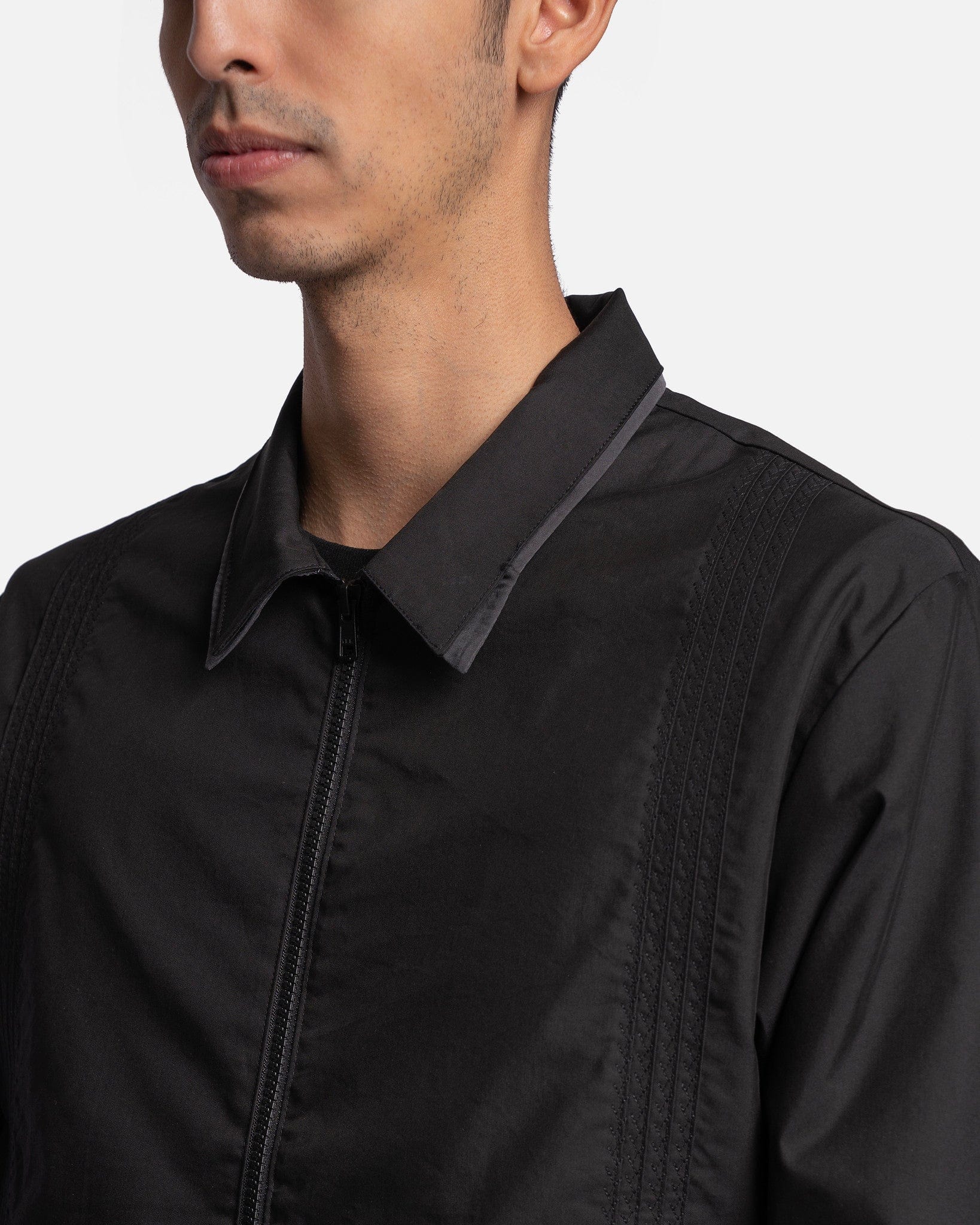 XLIM men's zip up shirt in burgundy. This shirt features a classic collar with a trim and front button closure. There is an embroidered stitch detail on each side of the chest chest.