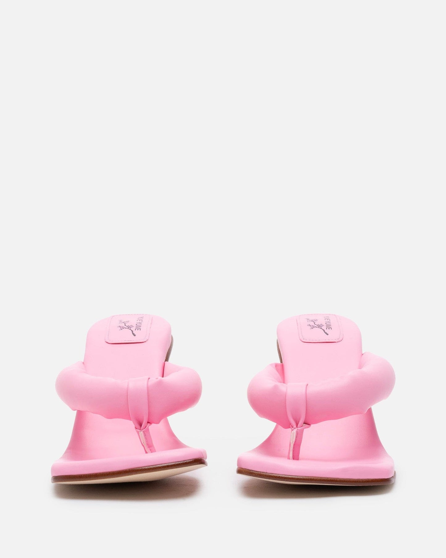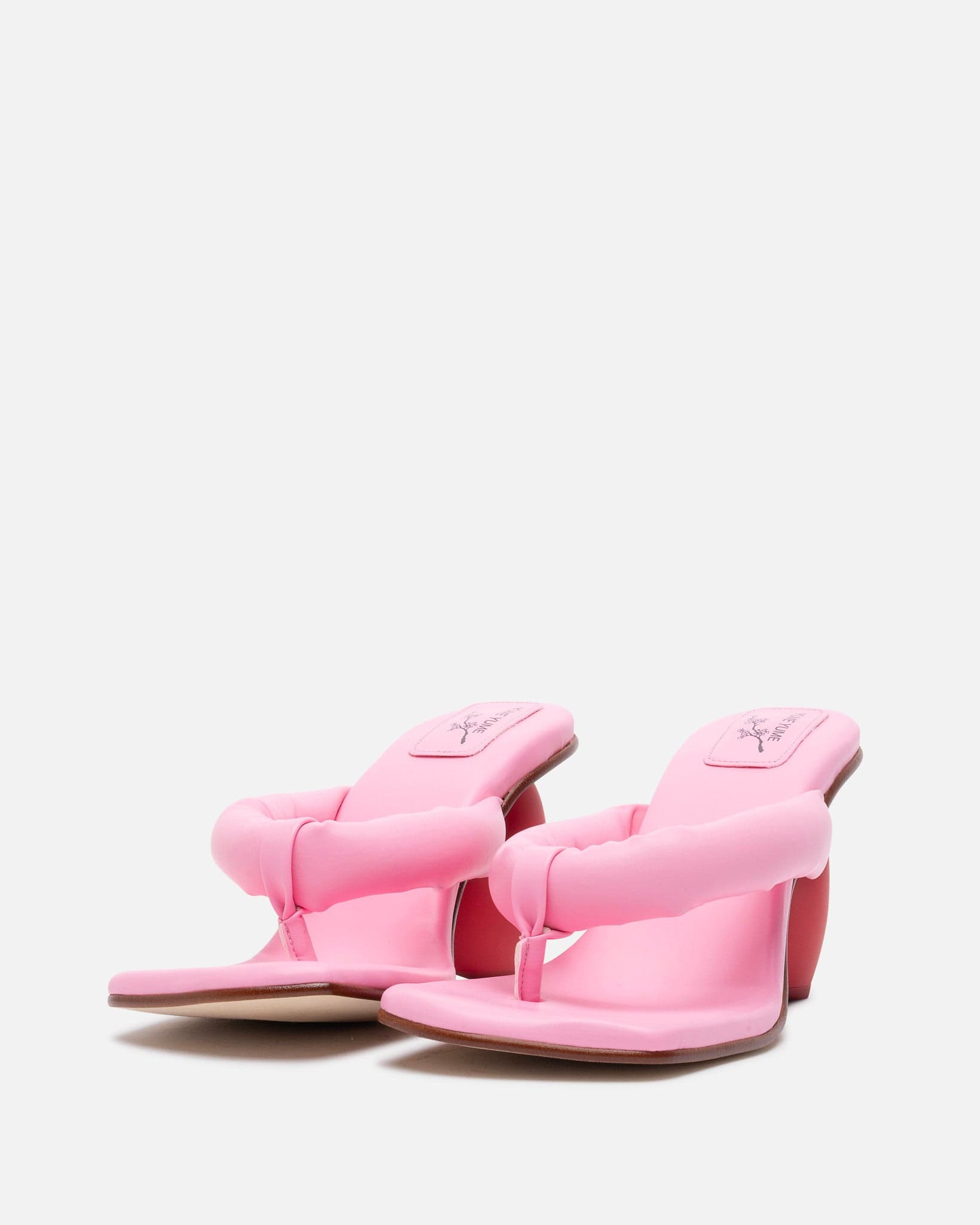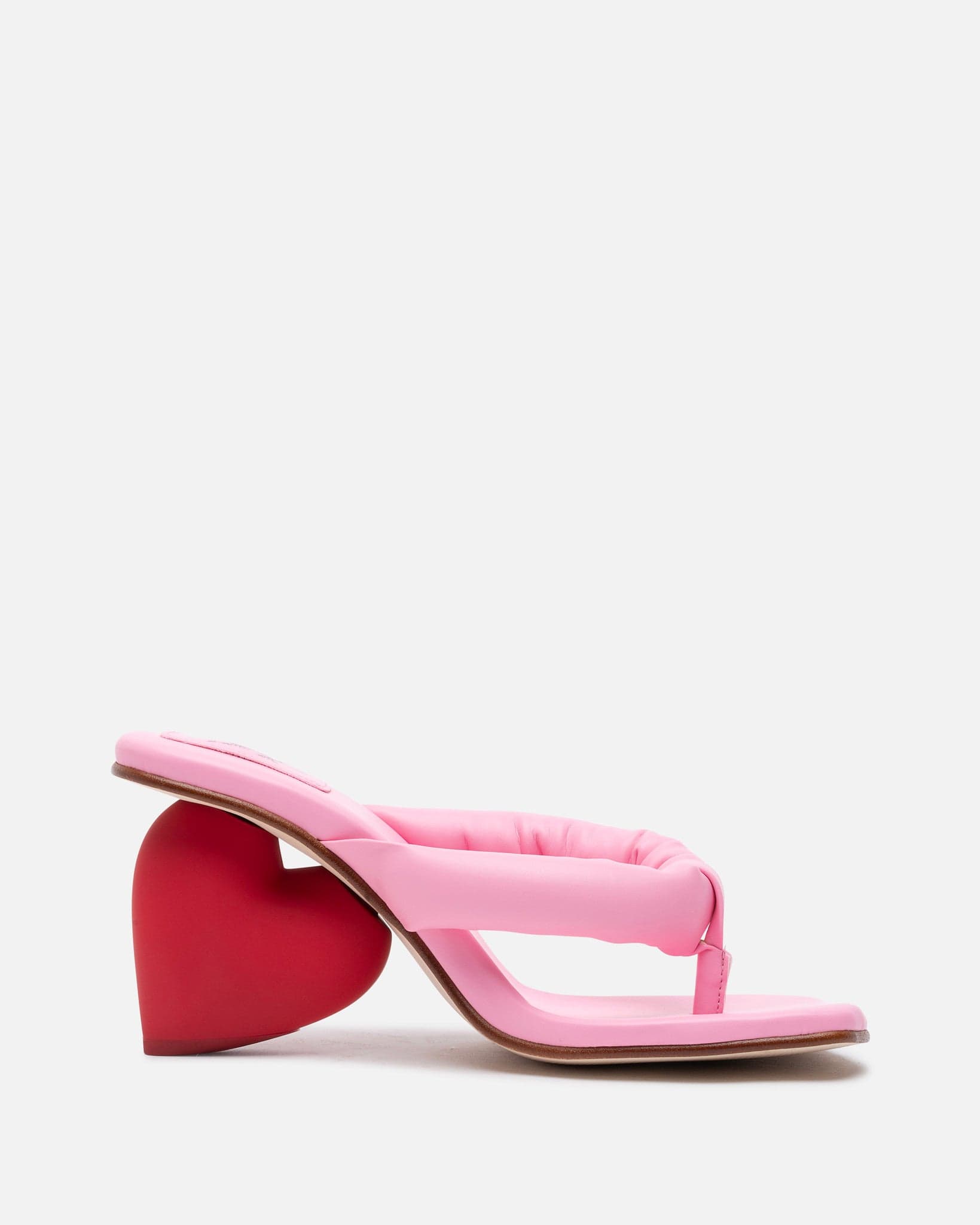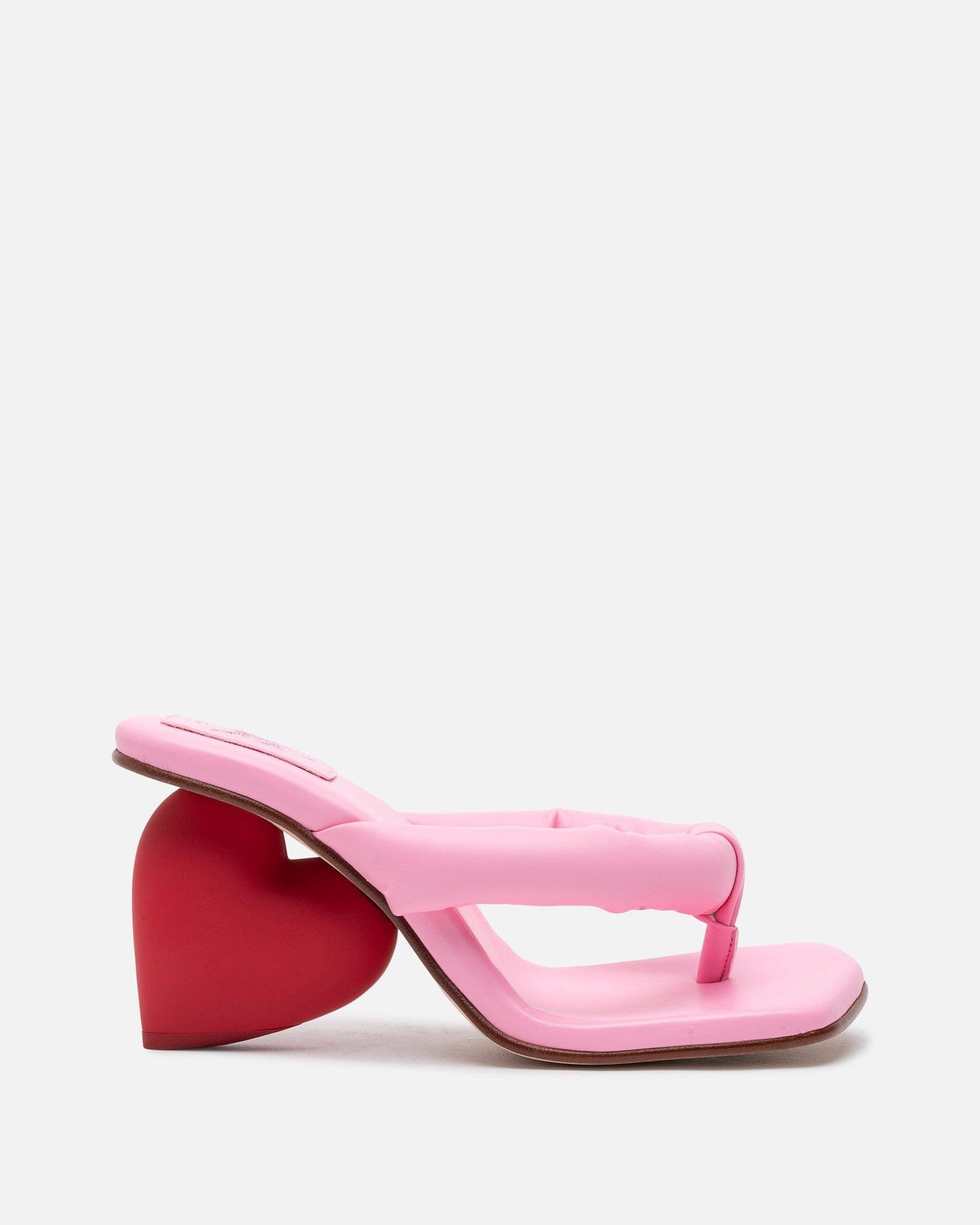 Yume Yume women's heart shaped heel in pink and red. The Love Heel features a padded thong strap at the toe and a padded heel strap to hold the foot in.
