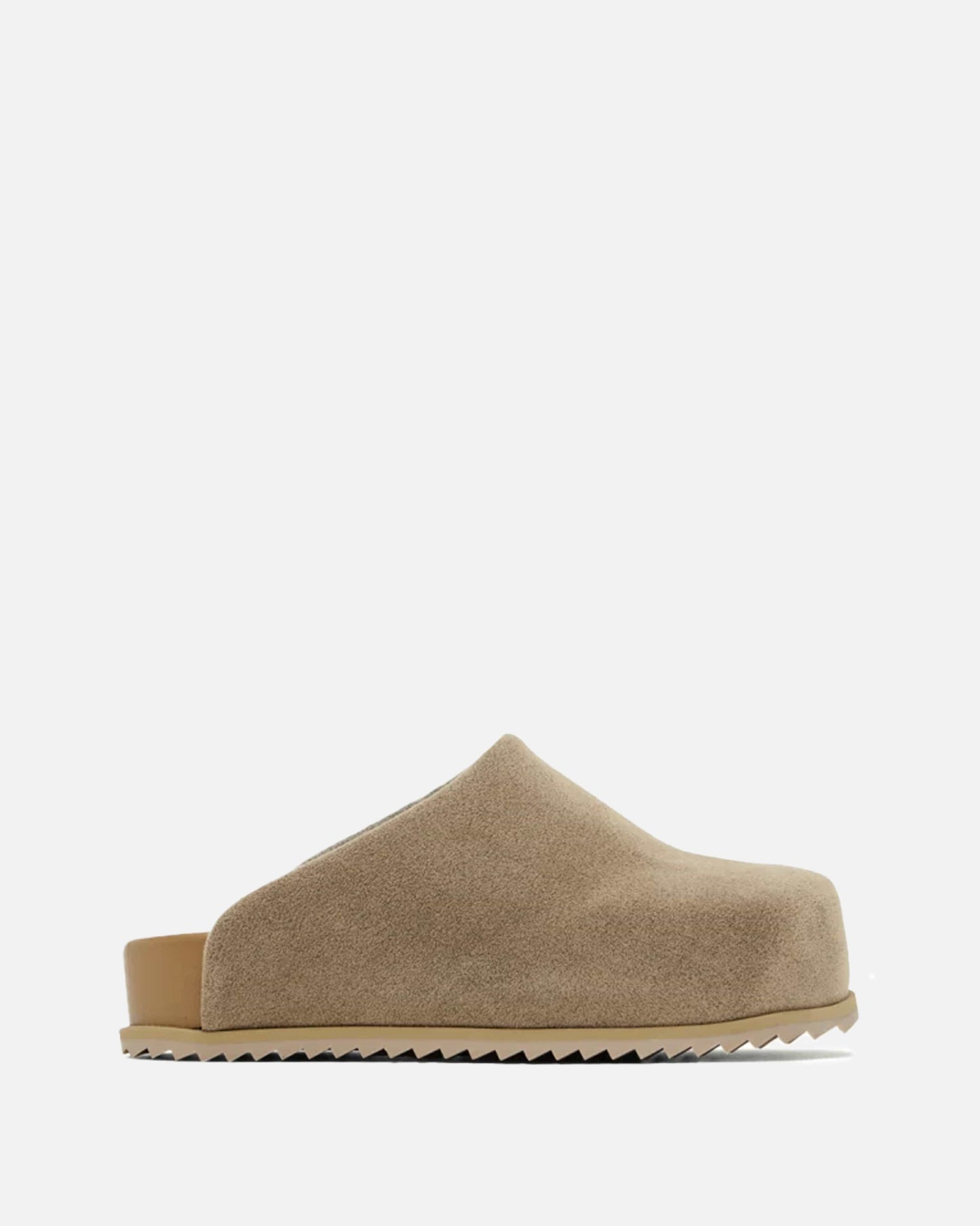 Yume Yume clogs in beige/grey. These clogs have an easy slip-on design, with a square outsole.