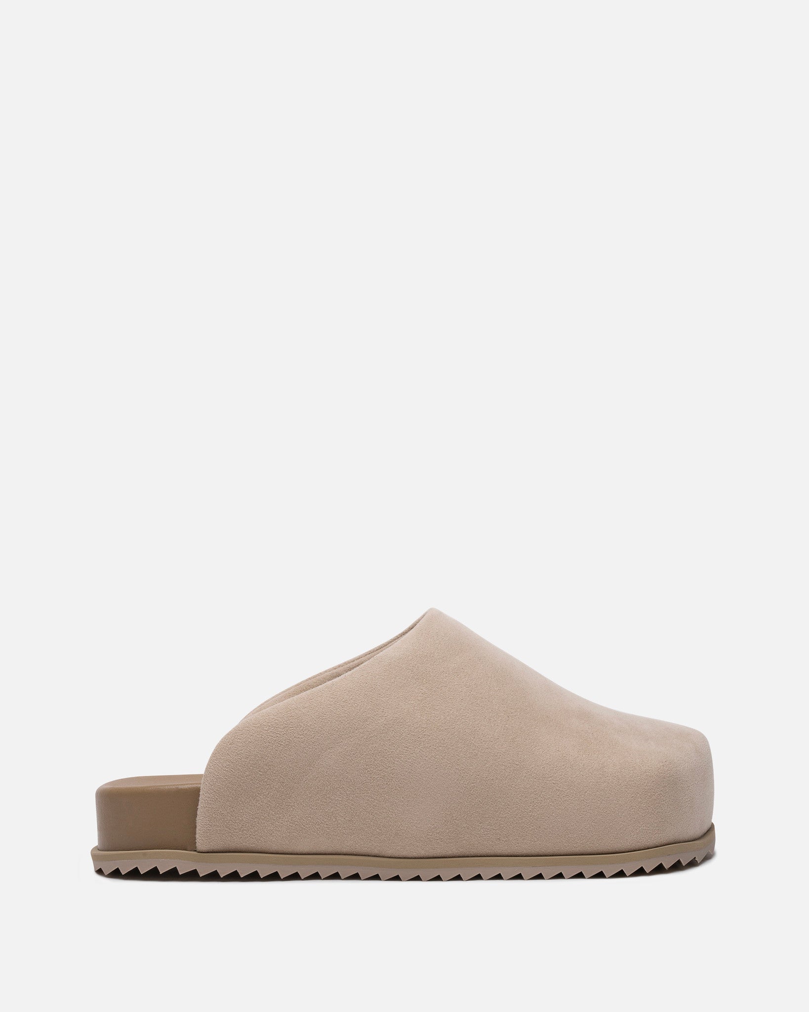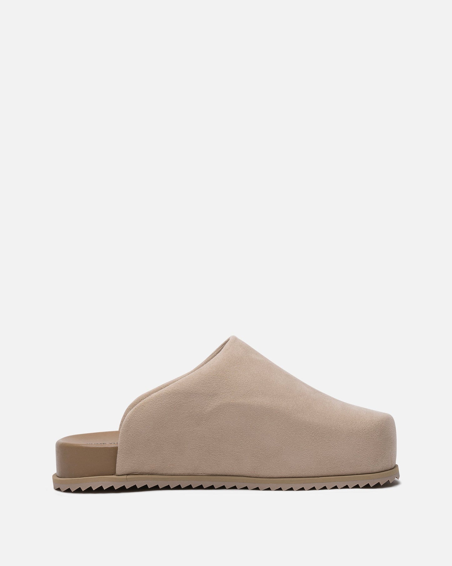 Yume Yume clogs in beige/grey. These clogs have an easy slip-on design, with a square outsole.